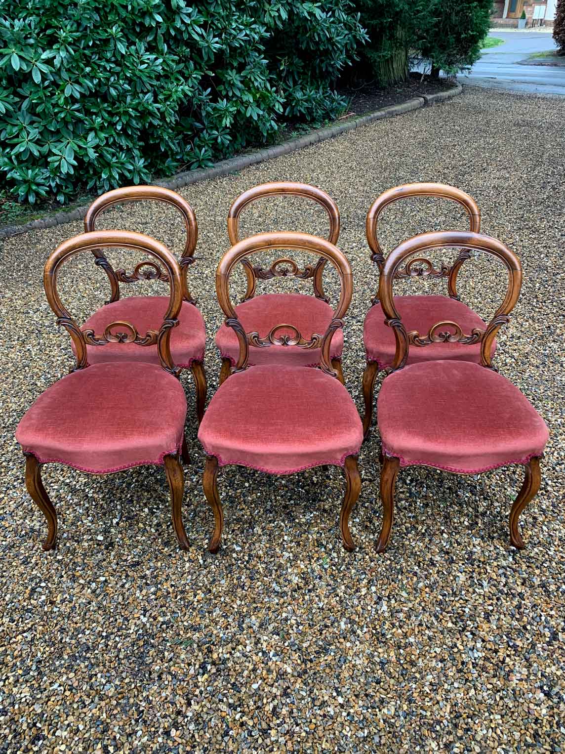 Set of 6 – 19th Century William IV Rosewood Balloon Back Dining Chairs with carved decoration, upholstered drop in seats on turned legs. Circa: 1830 – 1835 Dimensions: Height to Top:  32.5 inches –  83 cms Height to Seat:   18.5 inches –  47 cms Width:   18.5 inches –  47 cms Reference: CH2004 POA