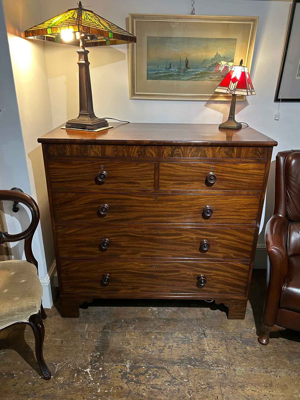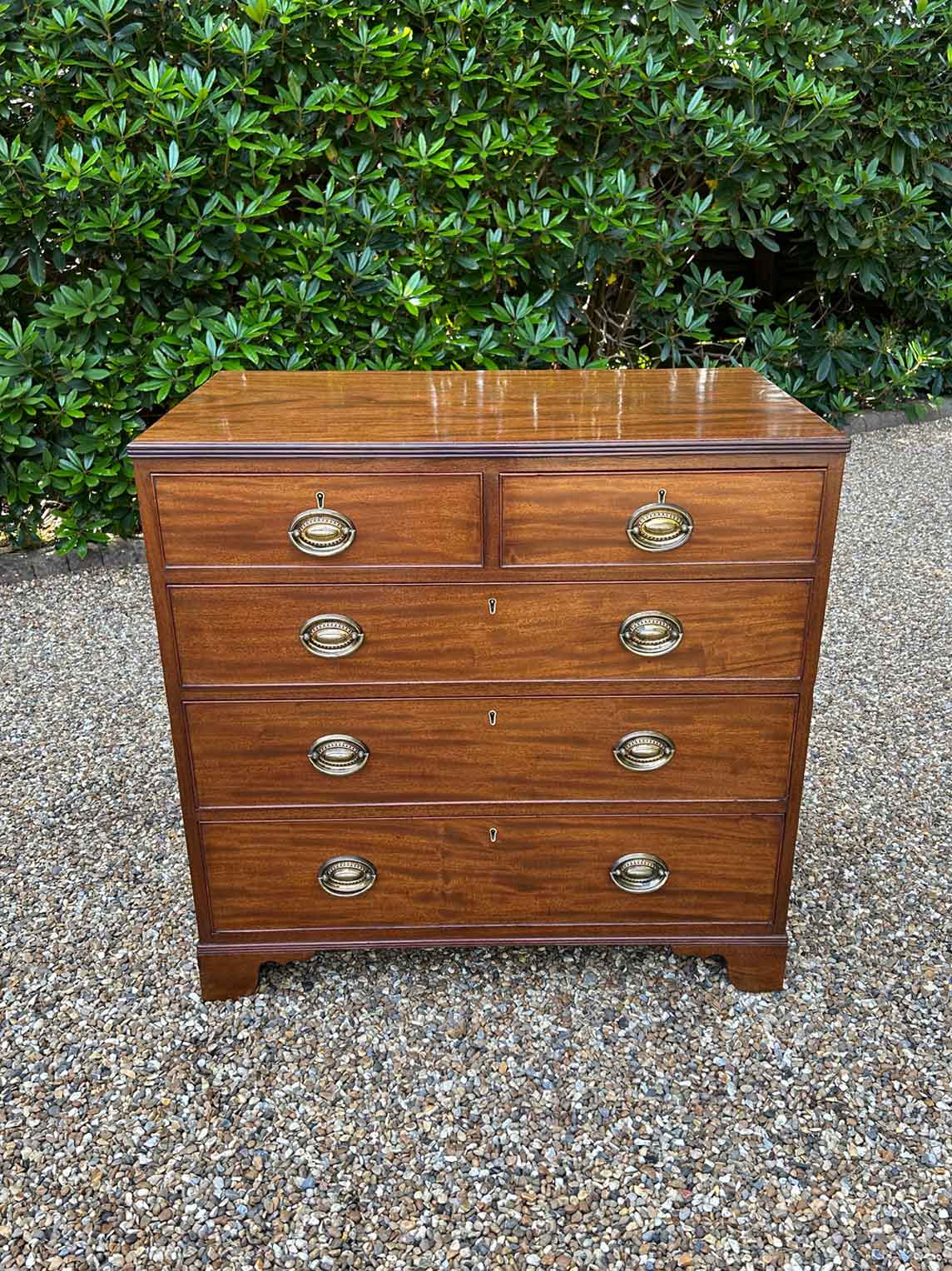 19th Century George III Mahogany Chest Of Drawers with two short and three long graduated drawers, original brass swan neck handles, on bracket feet. Circa: 1820 Video: If you require video. Please just let us know by filling out the enquiry form. Dimensions: Height: 31.5 inches – 80 cms Width:  27.5 inches – 70 cms Depth: …