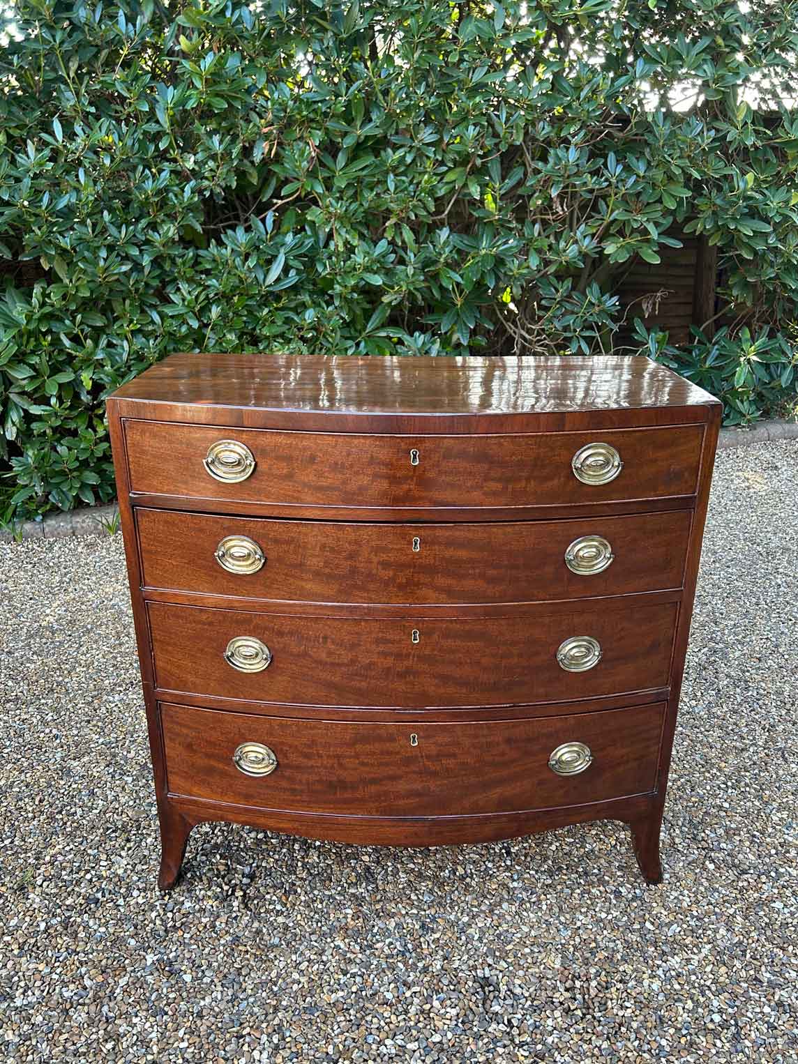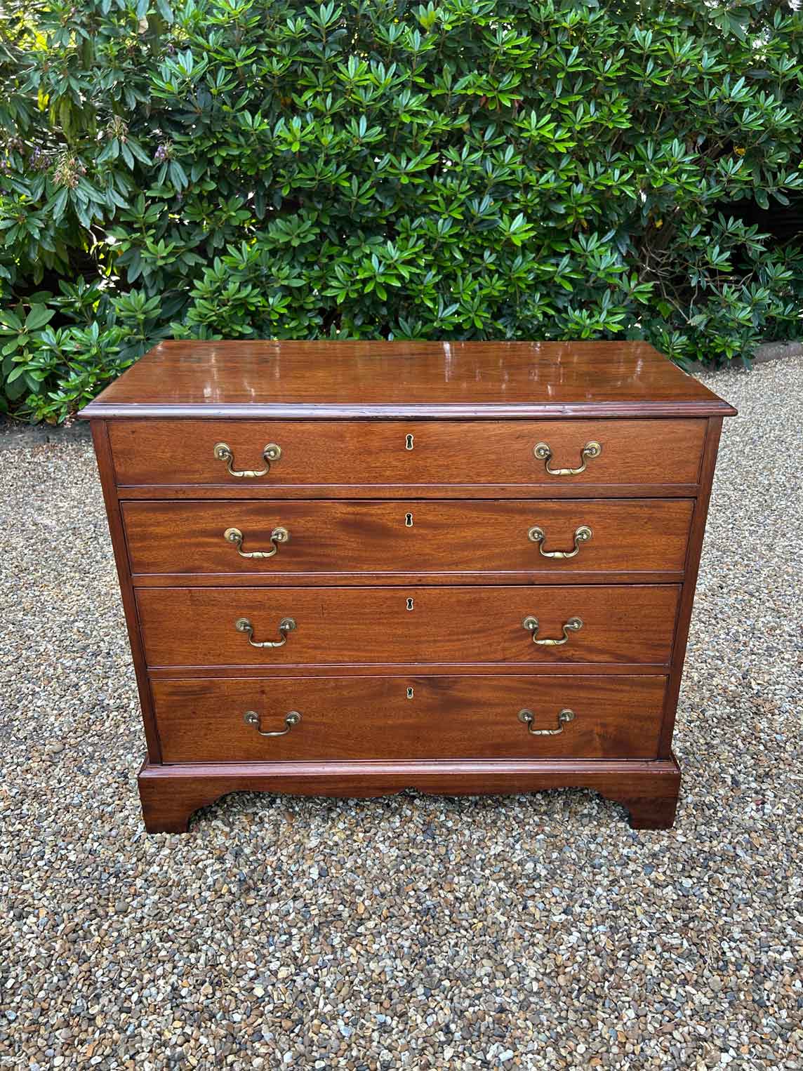 19th Century George III Mahogany Chest Of Drawers with four long graduated drawers, original brass swan neck handles, on bracket feet. Circa: 1820 Video: If you require video. Please just let us know by filling out the enquiry form. Dimensions: Height: 31.5 inches – 80 cms Width:  27.5 inches – 70 cms Depth:  17.5 inches –…