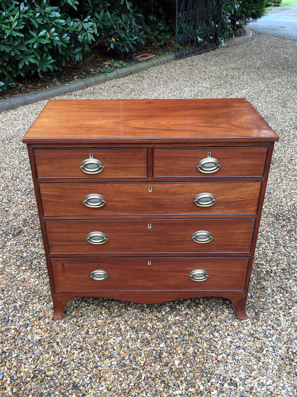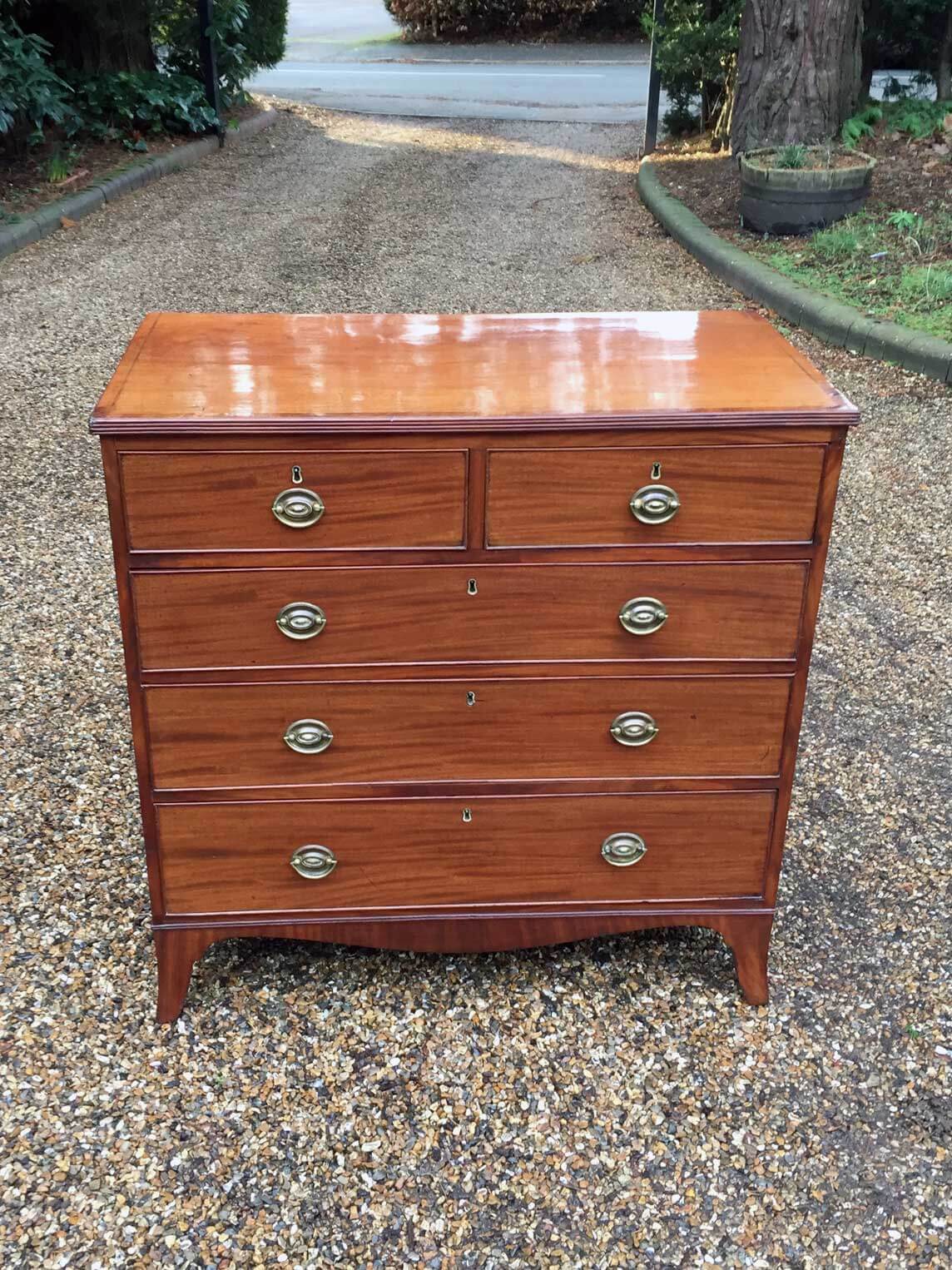 Late 18th Century George III Mahogany Chest Of Drawers with three long solid mahogany drawers, brass oval handles and splayed feet. Circa: 1790 – 1800 Dimensions: Width: 34.5 inches – 88 cms Depth: 18 inches – 46 cms Height: 33 inches – 84 cms Reference: C1806 POA