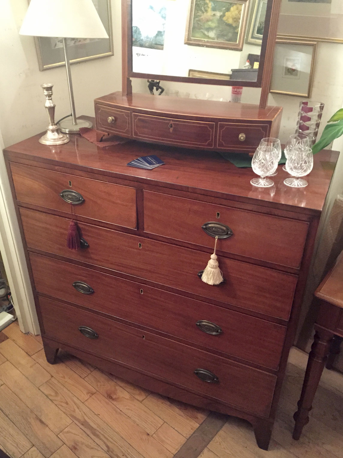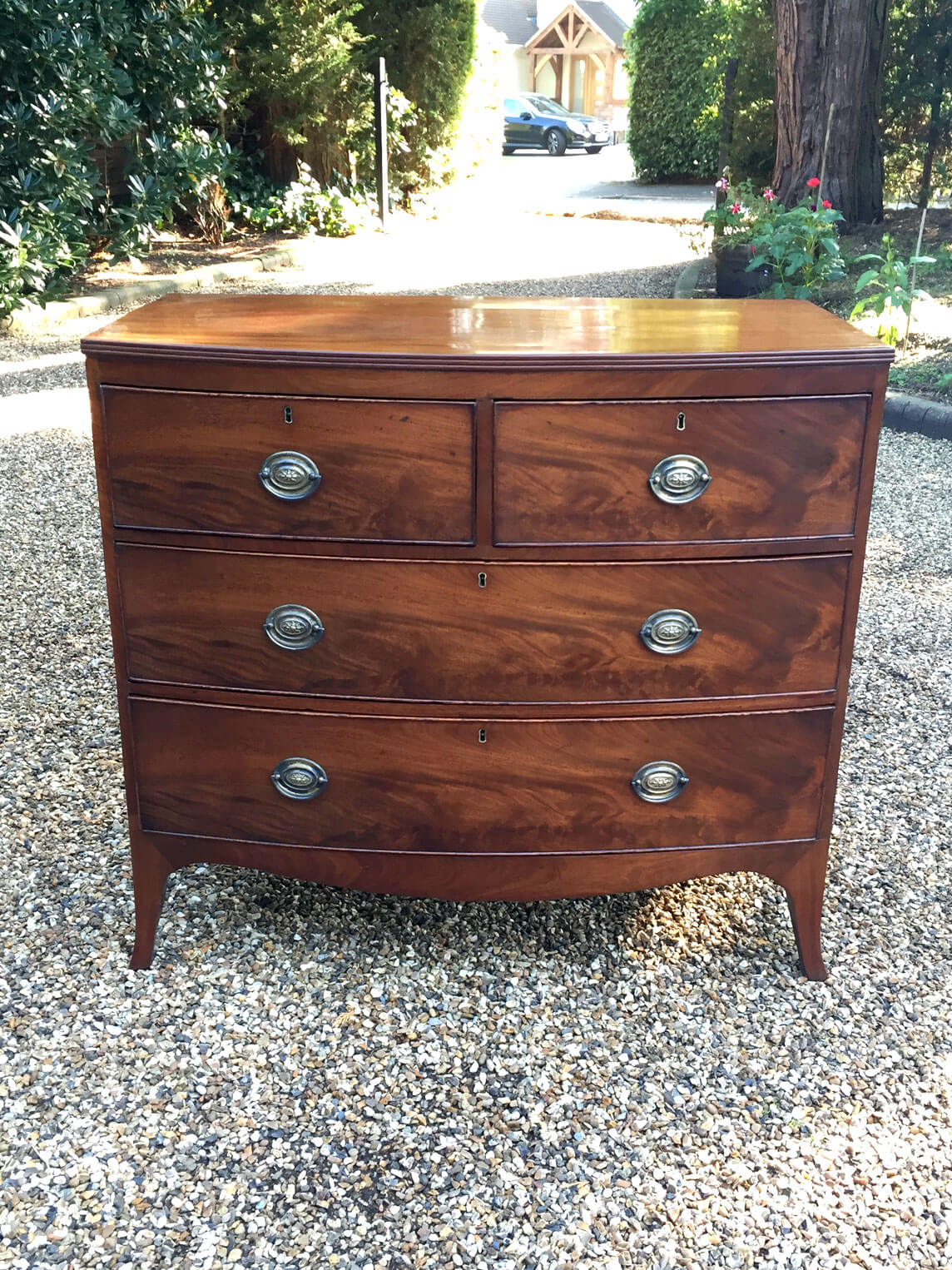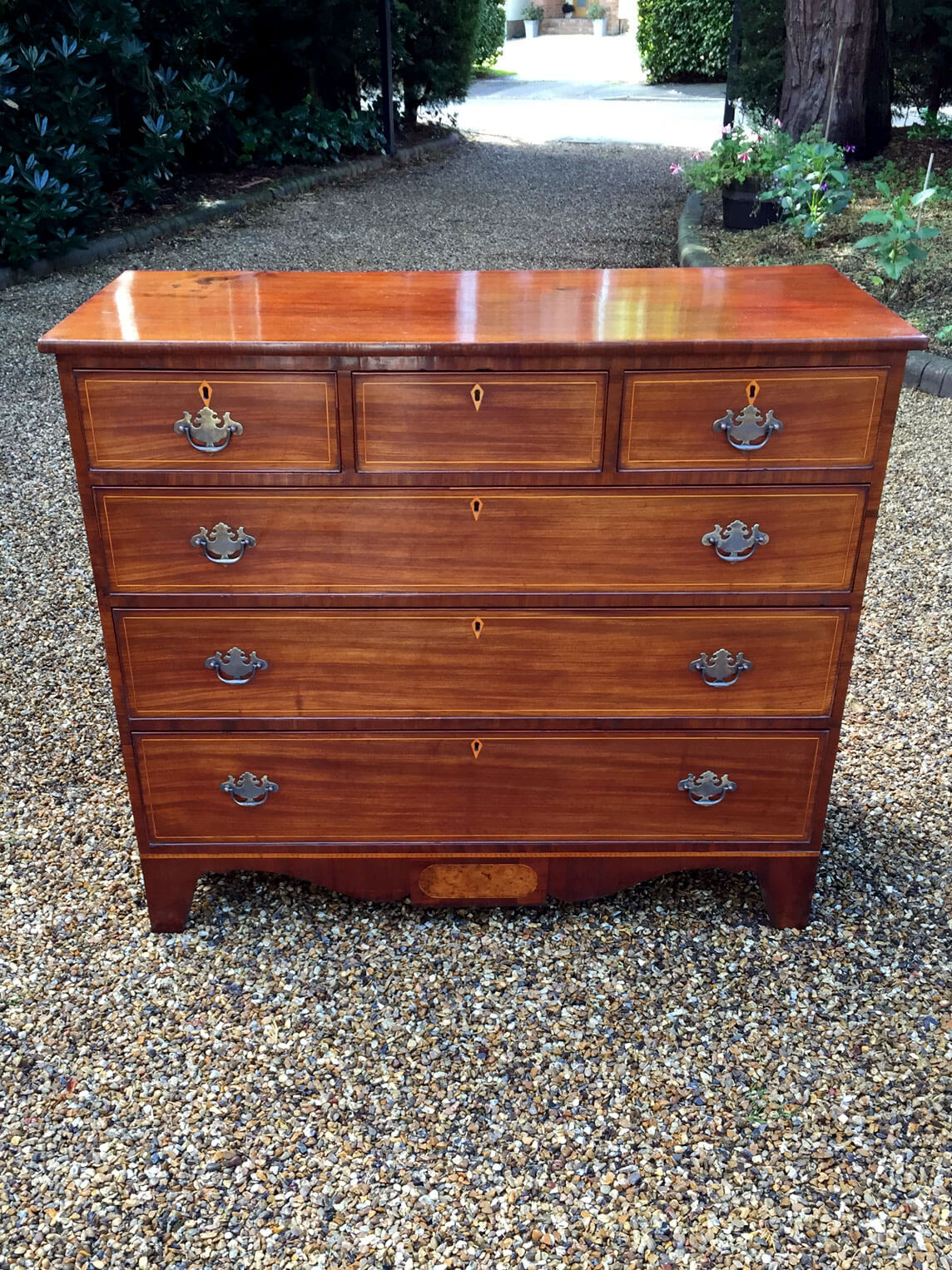 Georgian Mahogany Chest Of Drawers with crossbanding top. Two short and three long drawers with brass handles and original splayed feet. Circa: 1820 – 1840 Dimensions: Width: 36 inches – 92 cms Height: 37 inches – 94 cms Depth: 19.5 inches – 50 cms Reference: C1606 POA