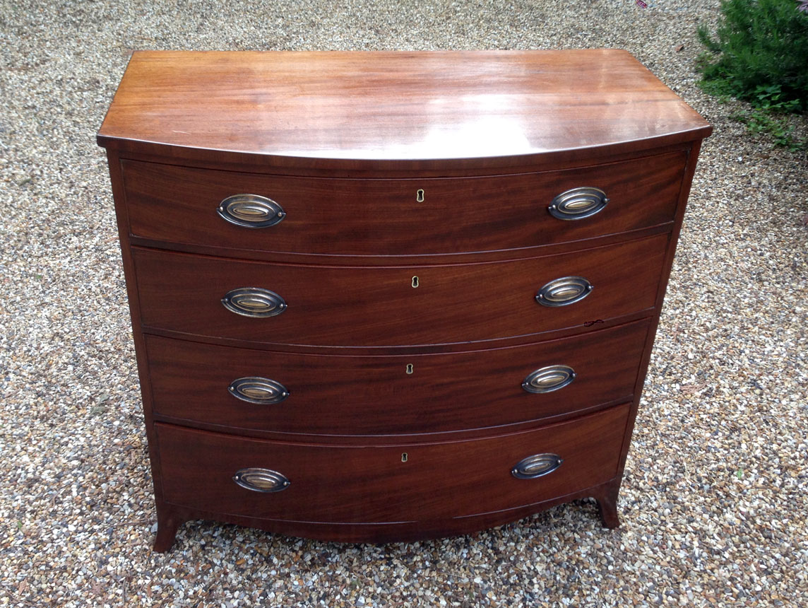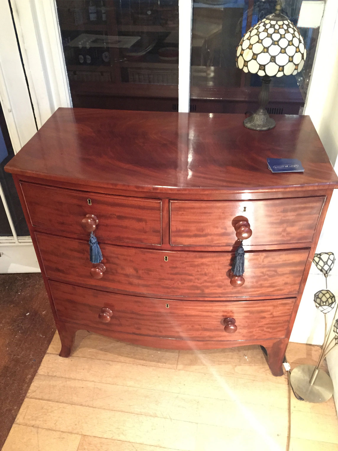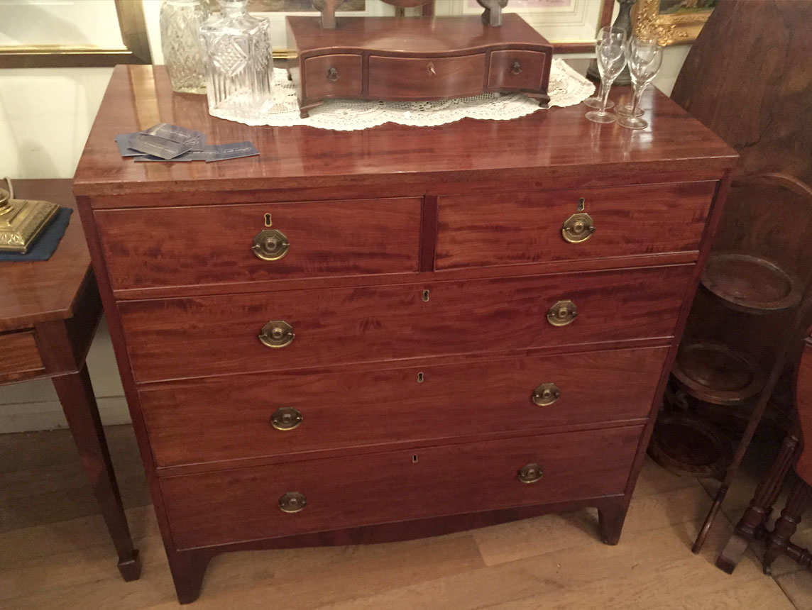 Georgian Mahogany Chest Of Drawers with crossbanding top. Two short and three long drawers with brass handles and original splayed feet. Circa: 1820 – 1840 Dimensions: Width: 36 inches – 92 cms Height: 37 inches – 94 cms Depth: 19.5 inches – 50 cms Reference: C1606 POA