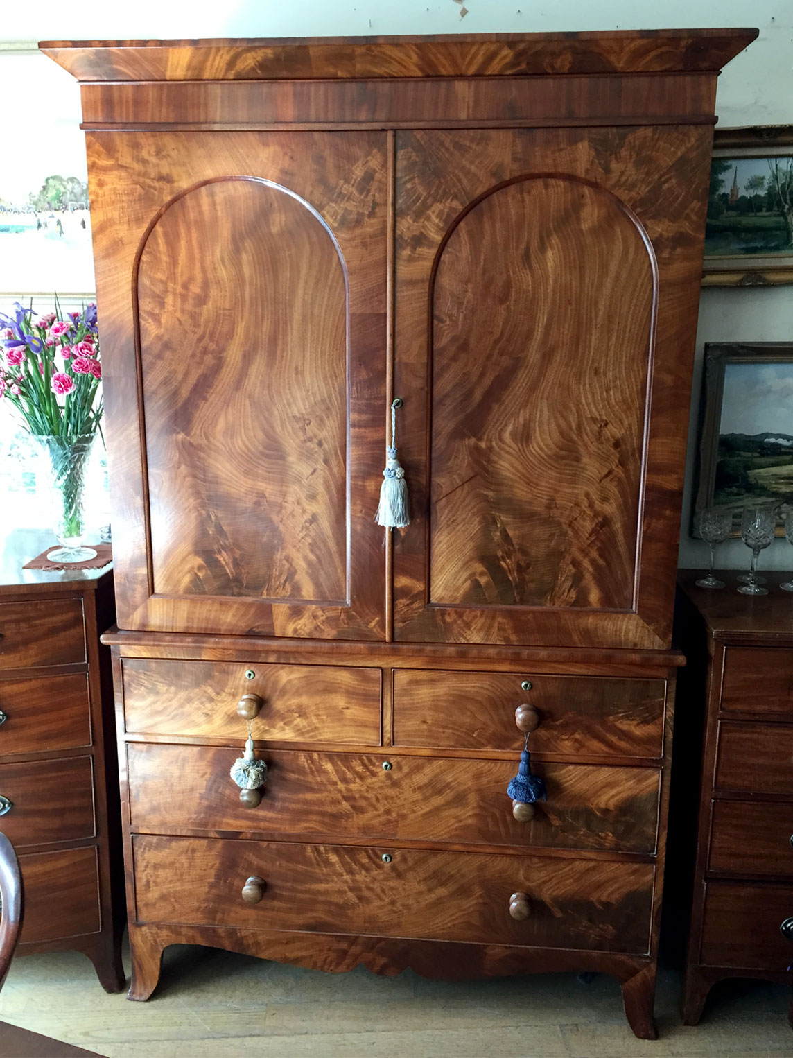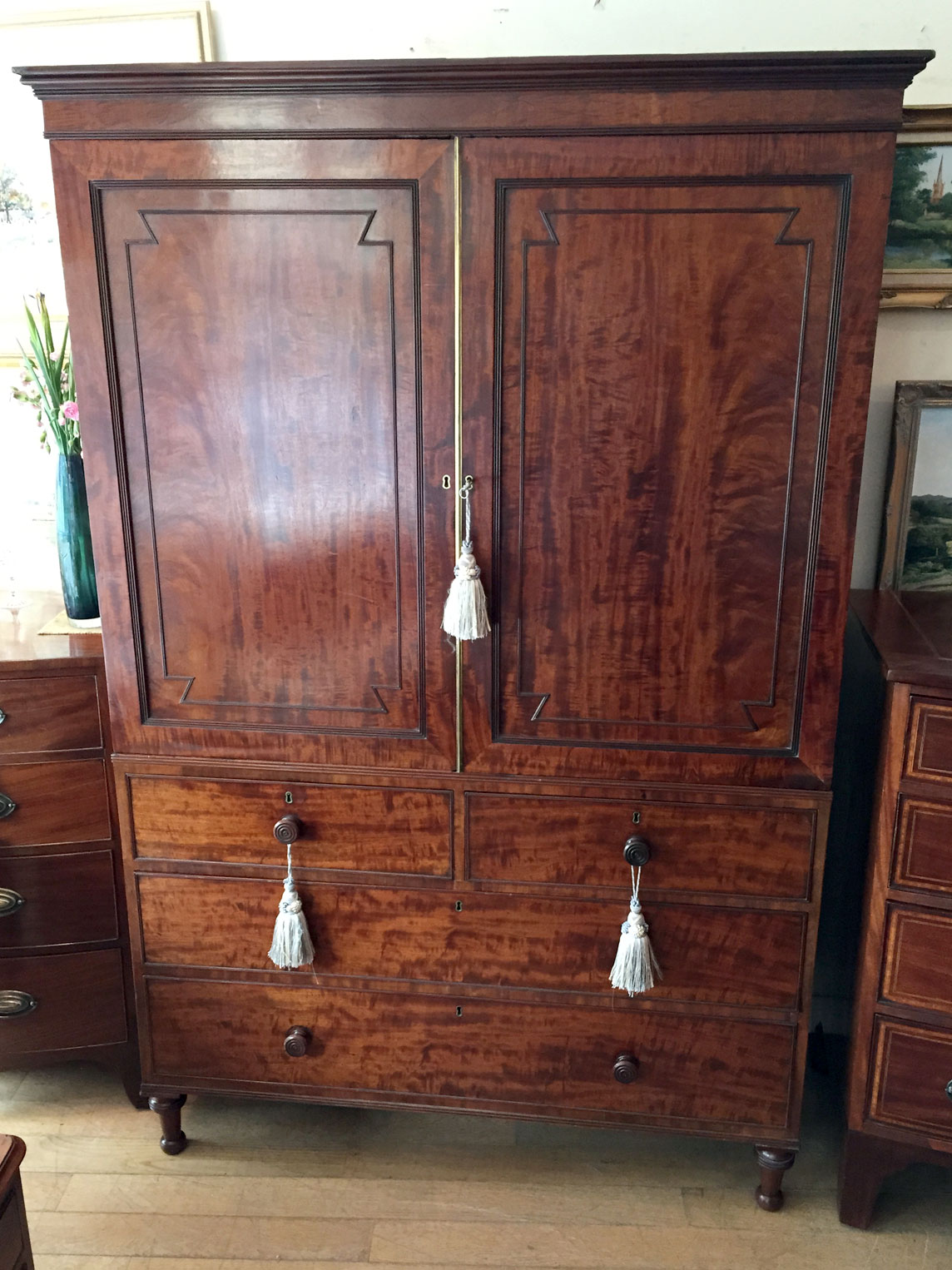 19th Century Victorian Golden Mahogany Linen Press