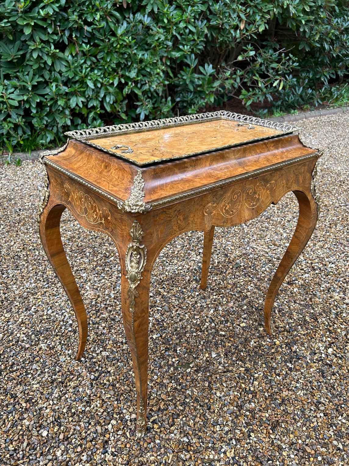 19th Century Satinwood Kidney Shaped Inlaid Tray on stand. The inlay shows ribbons, bows, scrolls, garlands of flowers. Around the edge there is a brass gallery & carrying handles. The tray stands on a removable later stand. Circa: 1890 / 1900 Dimensions: Height:  20 inches – 51 cms Width:  27 inches – 69 cms Depth:  13.5…