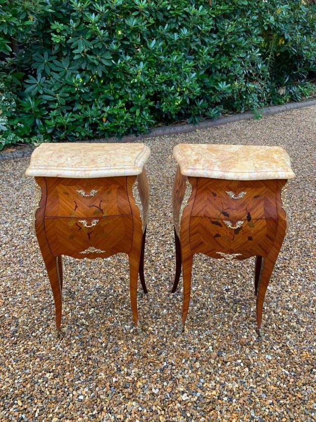 19th Century French Kingwood Bedsides bombé with Marble Tops