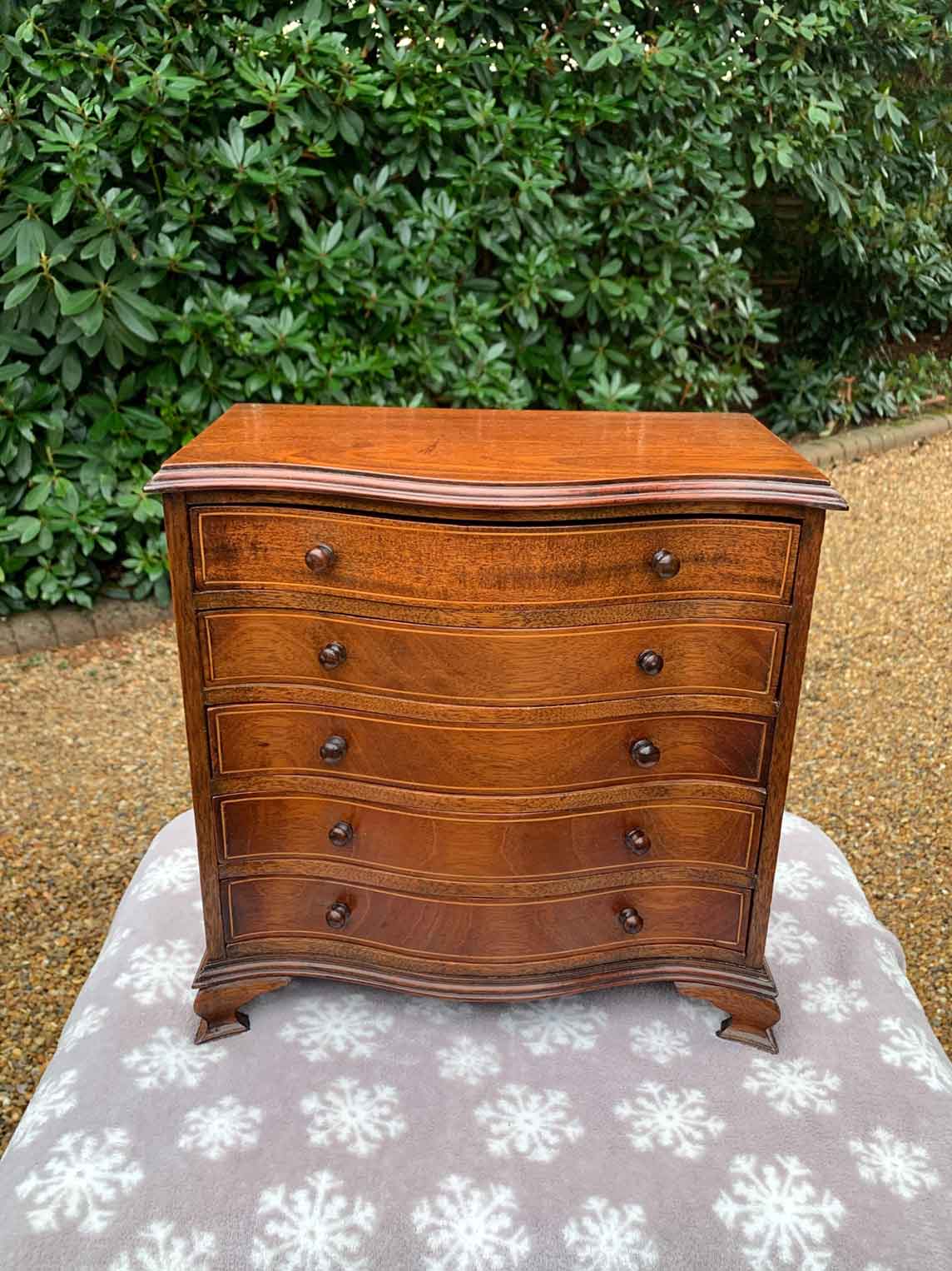 19th Century Mahogany Miniature Serpentine Apprentice Chest