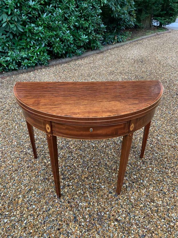 George III Mahogany (Plum Pudding) Demi Lune Card Table