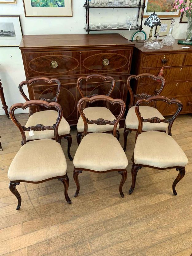 Set of 6 Victorian Rosewood Balloon Back Dining Chairs