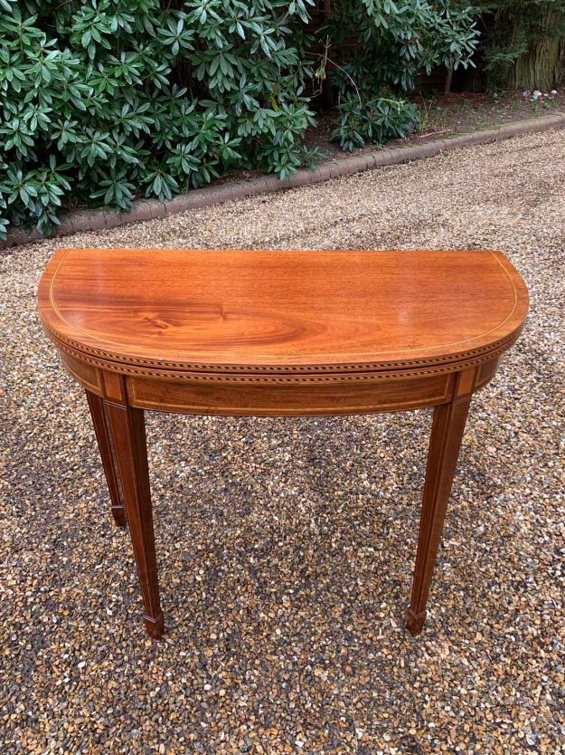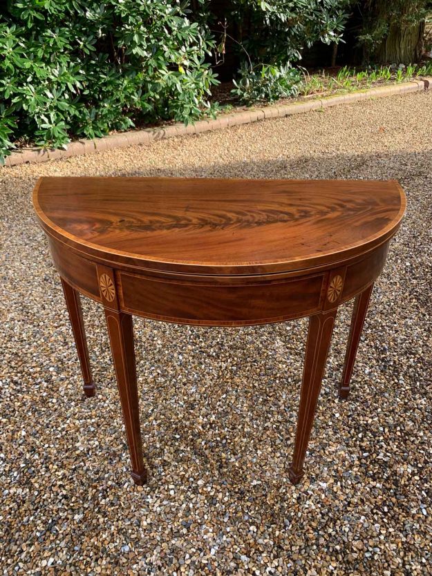 Georgian Mahogany Inlaid D-Shaped Card Table