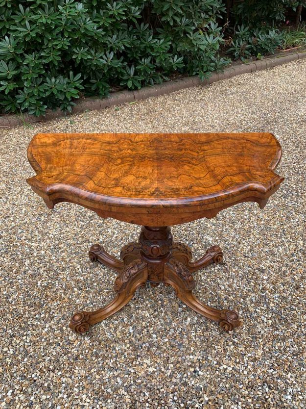 19th Century Victorian Burr Walnut Demi Lune Card Table