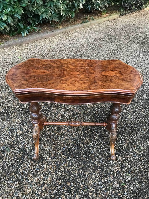 19th Century Victorian Burr Walnut Serpentine Card Table