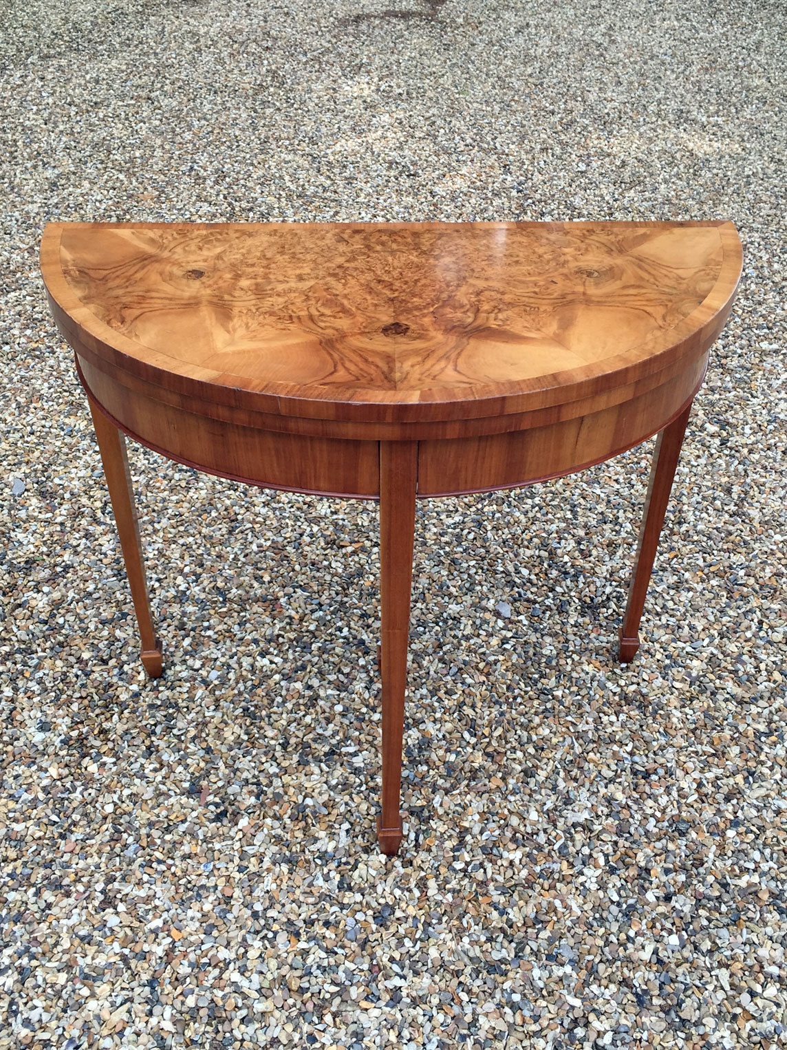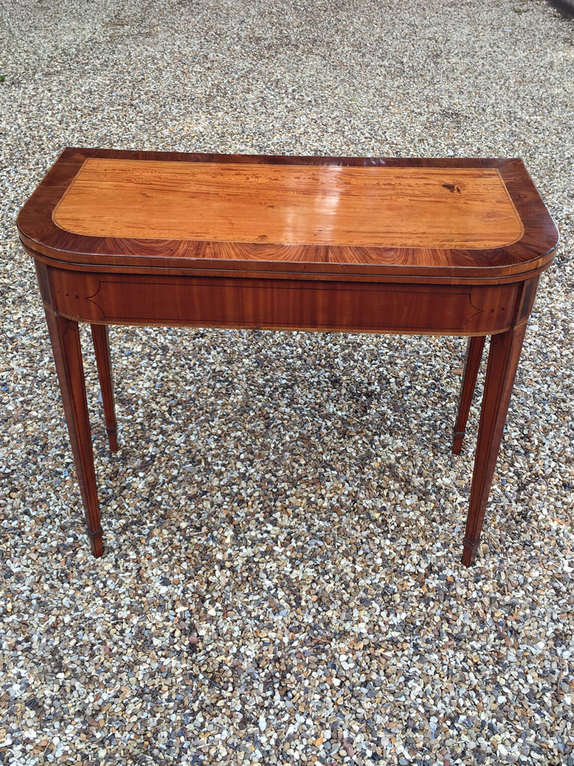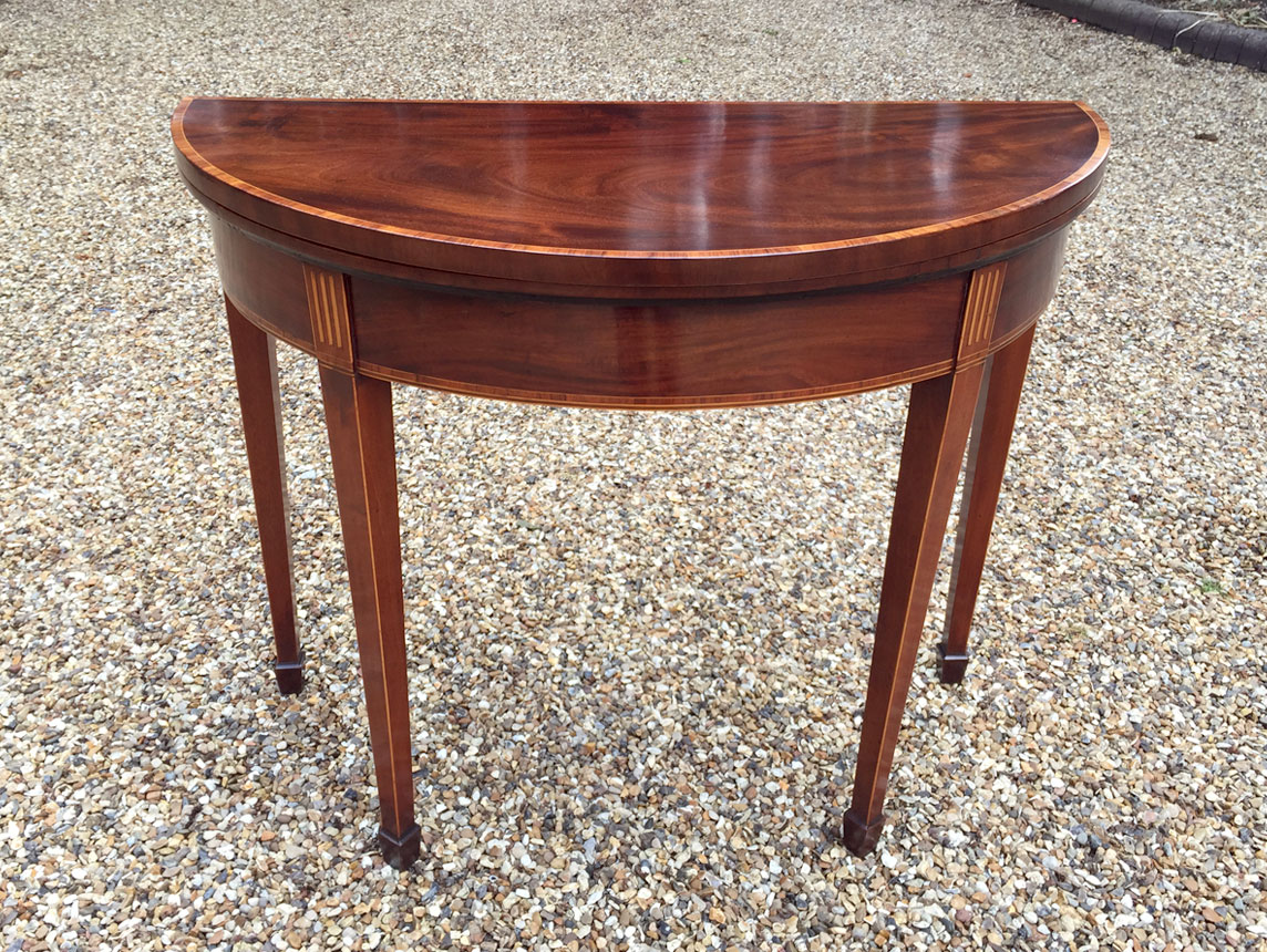 A late Victorian Mahogany Marquetry Envelope Card Table – in the manner of Edwards & Roberts. Extremely well made, decorated throughout with musical trophies and trailing flowers. On spuare tapered legs with undertier. Circa: 1890 – 1900 Dimensions: Reference: CT1504 POA