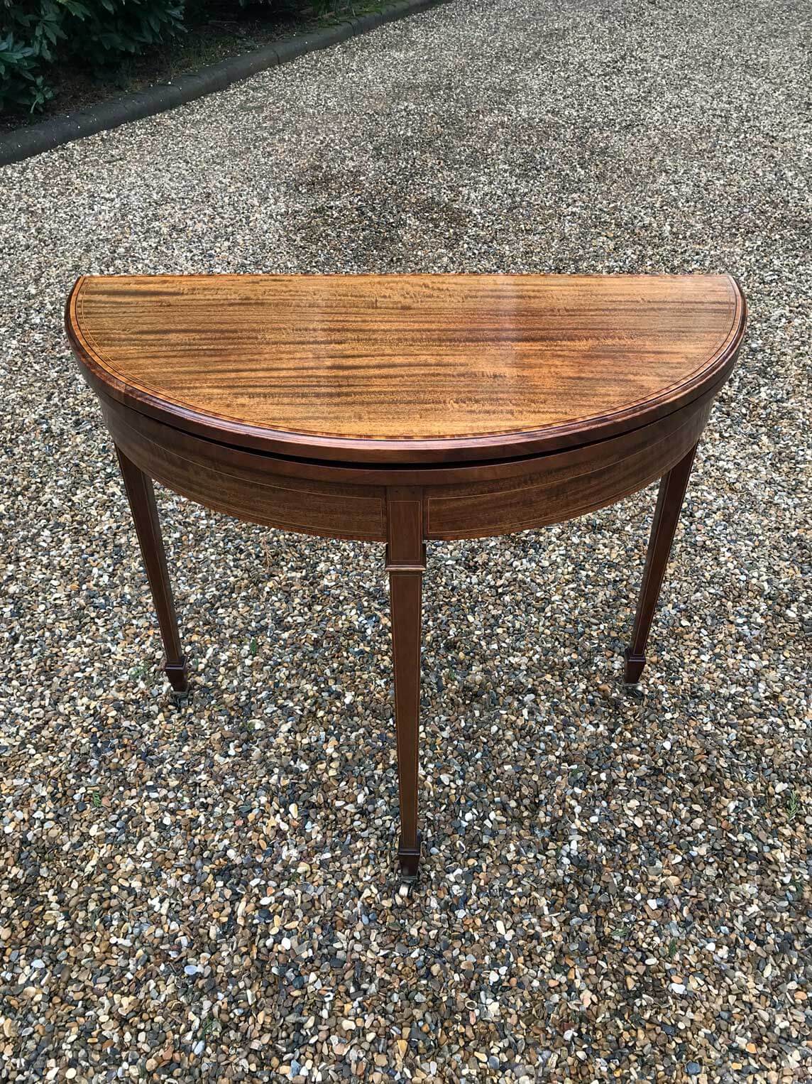 19th Century Rosewood Envelope Card Table with marquetry inlay and red baize. With a fitted mahogany lined drawer and original round brass handles on square inlaid tapering legs and castors. Circa: 1880 Dimensions: Width: 22 inches – 57 cms Height: 29 inches – 73 cms Depth: 22 inches – 57 cms Reference: CT2002 POA