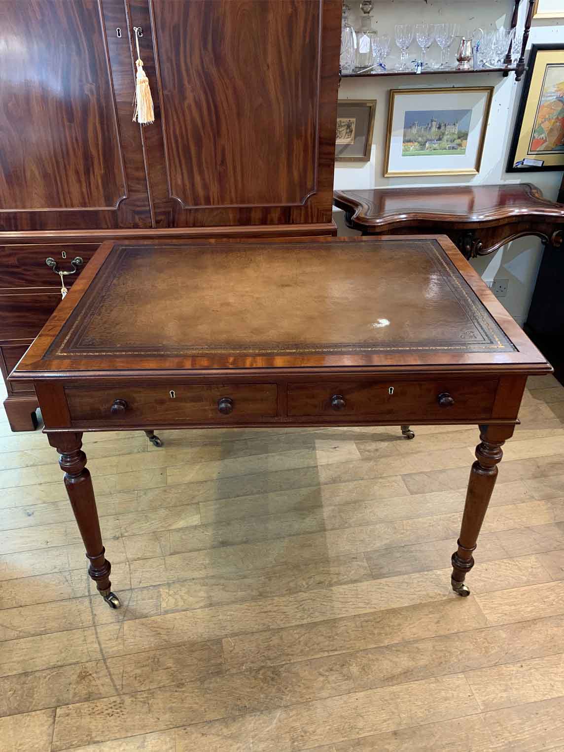 A very high quality 19th Century Burr Walnut Inlaid Credenza with gilt metal inlaid walnut columns, quality burr walnut inlaid panel doors with marquetry inlay decoration throughout, enclosing original fitted shelves, on plinth base. With 3 working keys. Circa: 1860 Dimensions: Height: 41.5 inches – 105 cms Width: 56 inches – 143 cms Depth: 16.5 inches –…