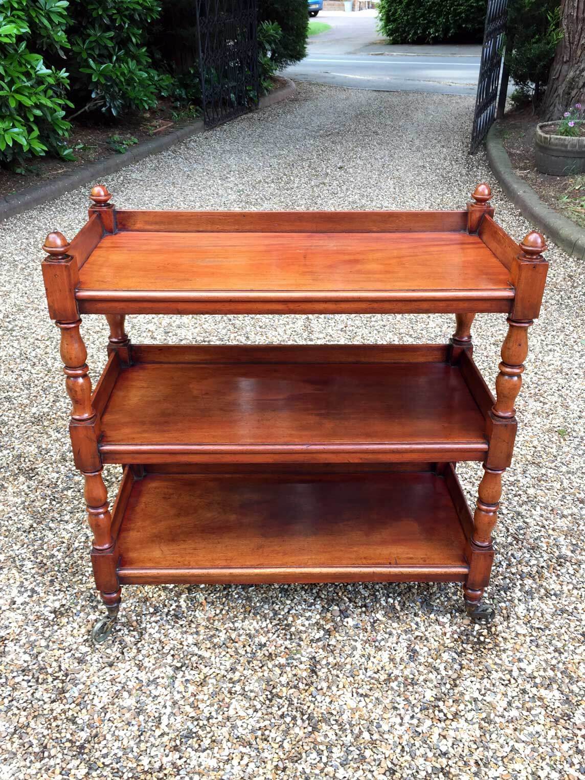A very good quality original 19th Century Victorian Mahogany Buffet Table with a three-tier gallery upstand being united by finely-turned column supports. All four of the superb quality solid brass castors are original. Circa: 1860 Dimensions: Heigh: 39 inches – 99 cms Width: 40 inches – 102 cms Depth: 18 inches – 47 cms Reference: CP1701