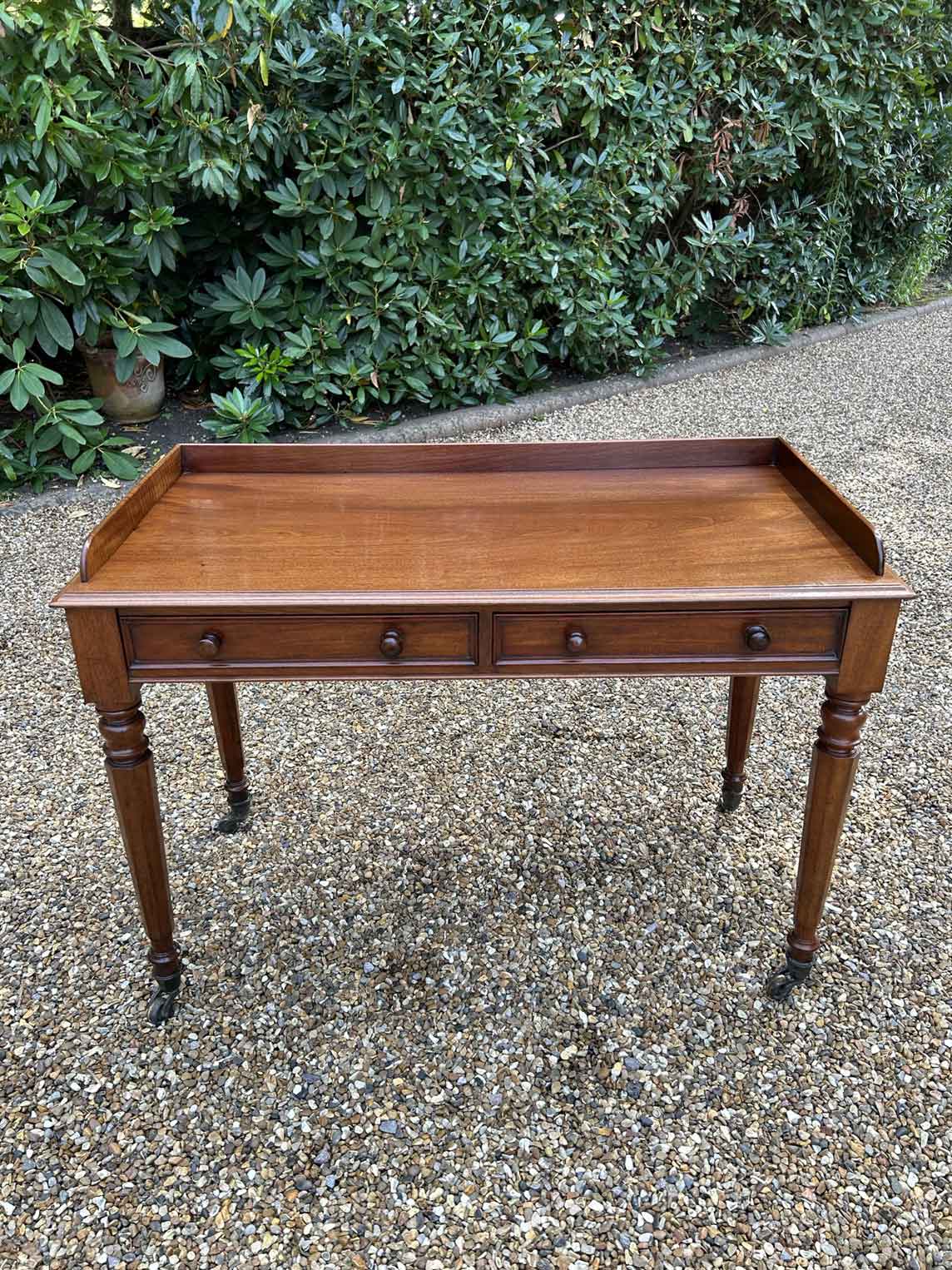 A very high quality 19th Century Victorian Mahogany Side Table with two mahogany lined drawers, turned supports and small turned knob handles. Circa: 1860 Video: If you require video. Please just let us know by filling out the enquiry form. Dimensions: Height: 29.75 inches – 76 cms Width: 42 inches – 107 cms Depth: 23…