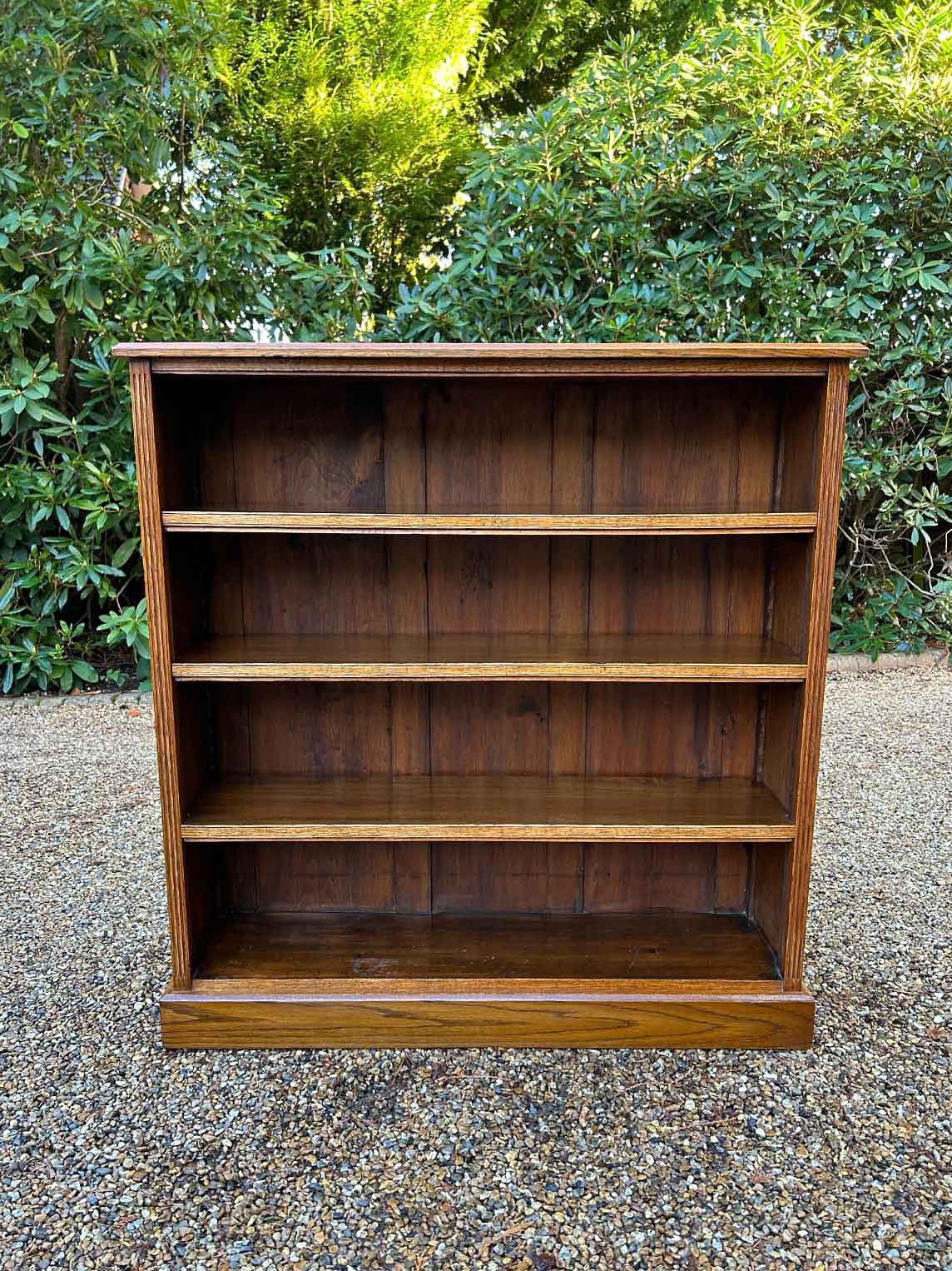 19th Century Late Victorian Oak Open Bookcase, with three adjustable shelves on a plinth base.