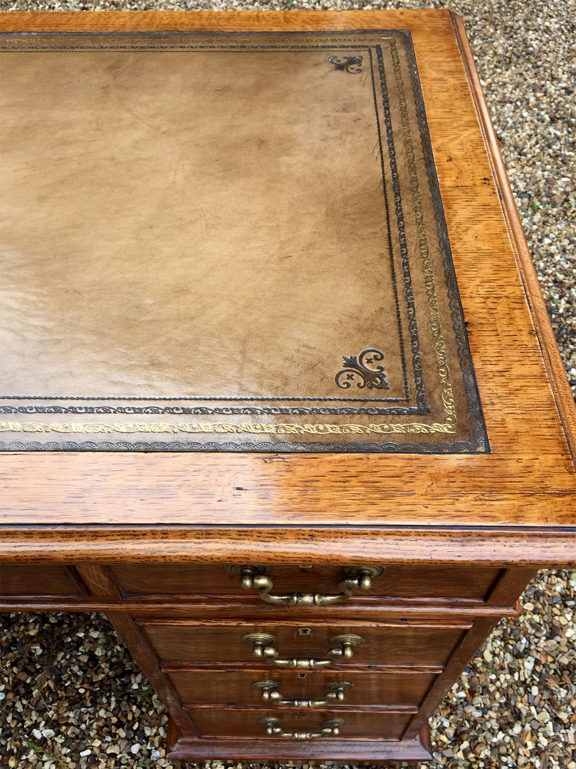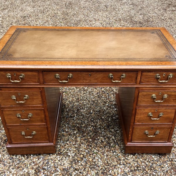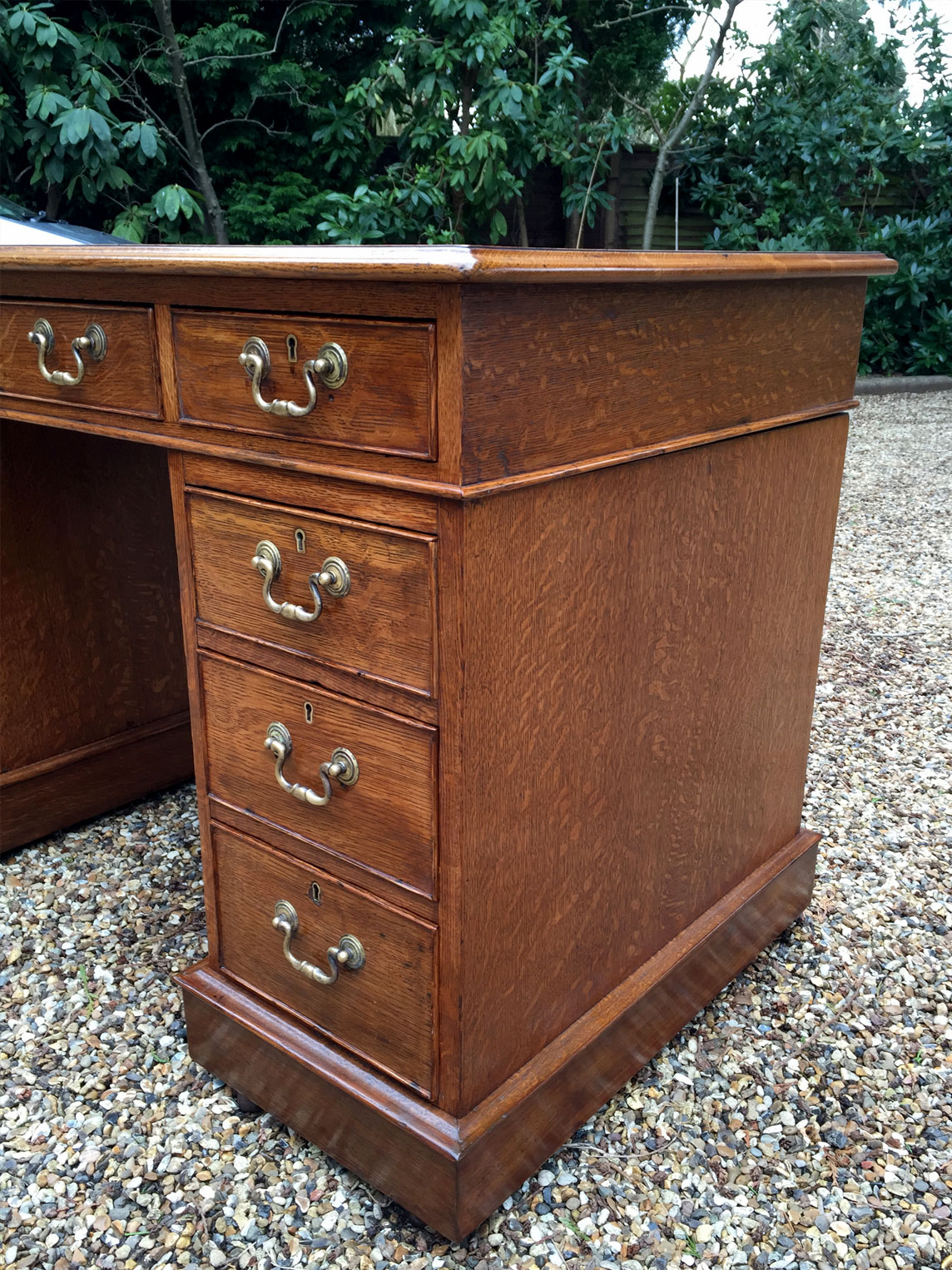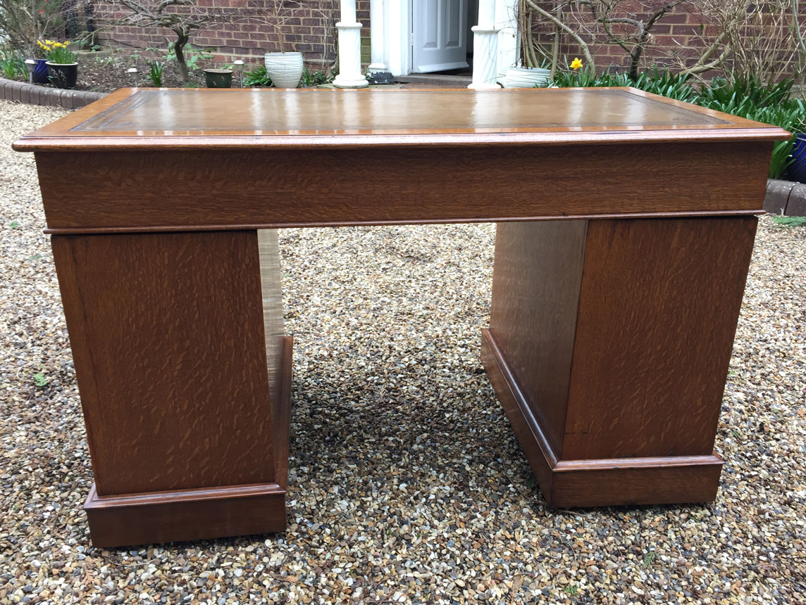 19th Century Victorian Oak & Walnut Pedestal Desk