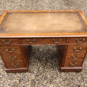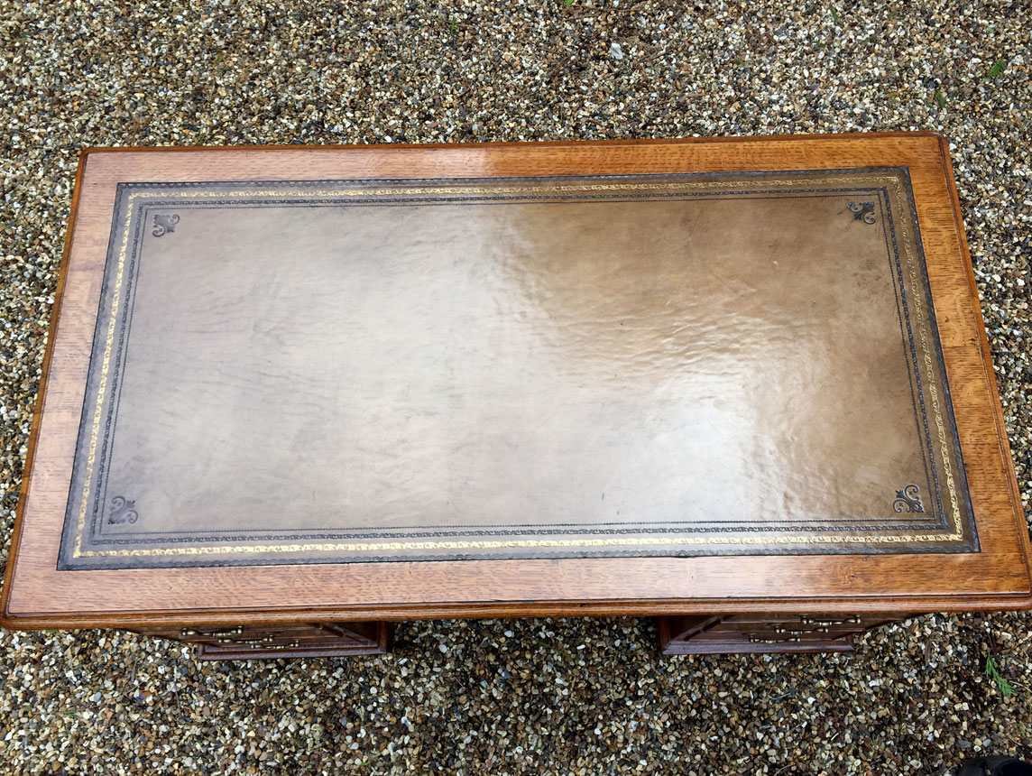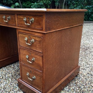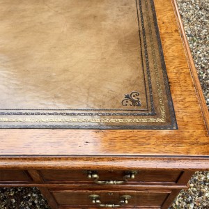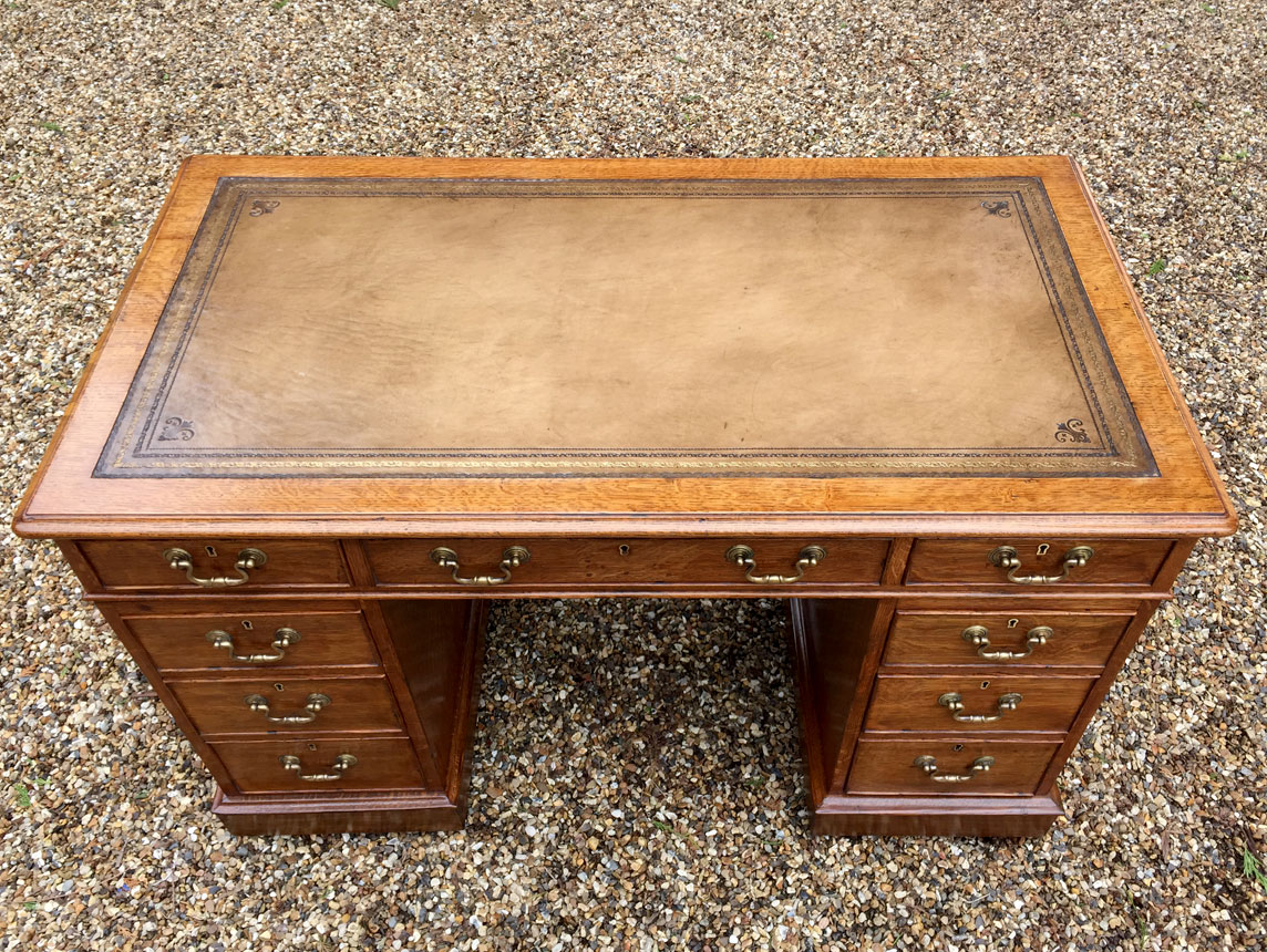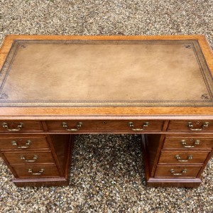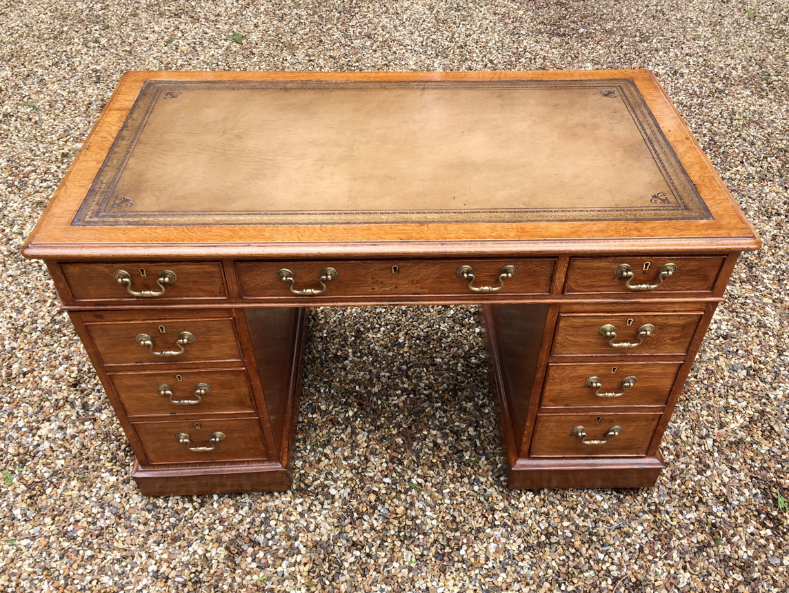 19th Century Victorian Oak & Walnut Pedestal Desk