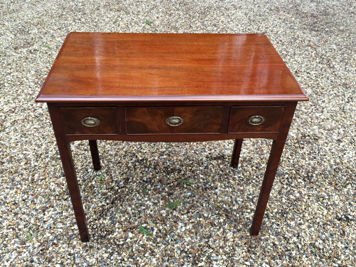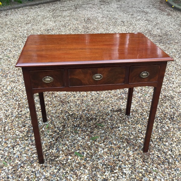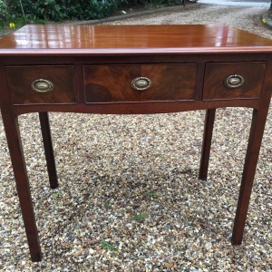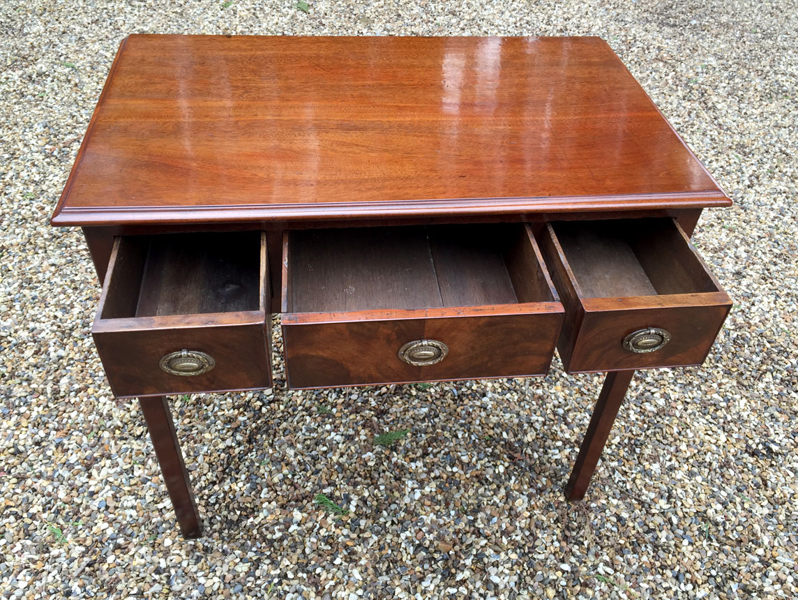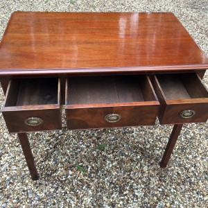 Georgian Mahogany Side Table with three solid oak drawers and original chamferred legs.