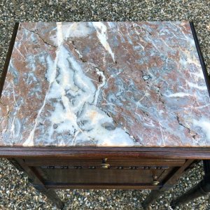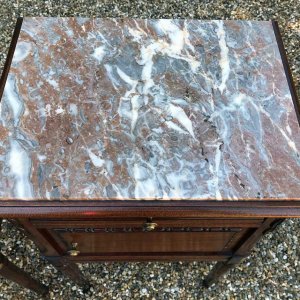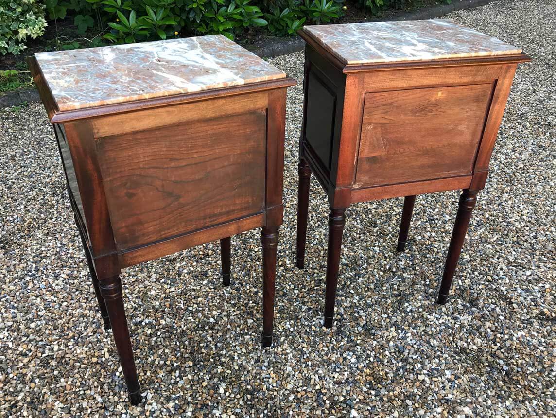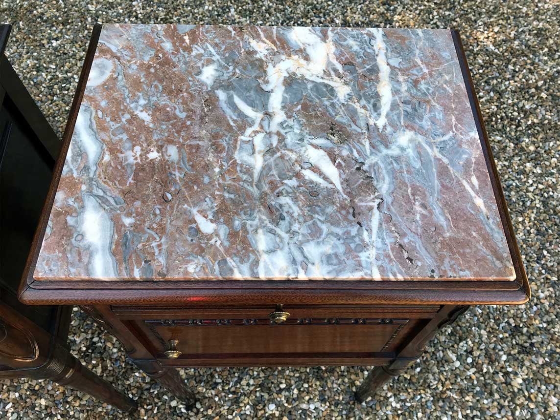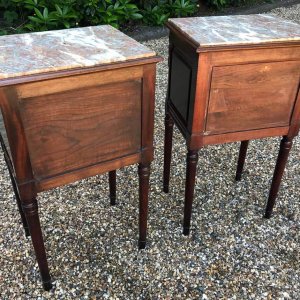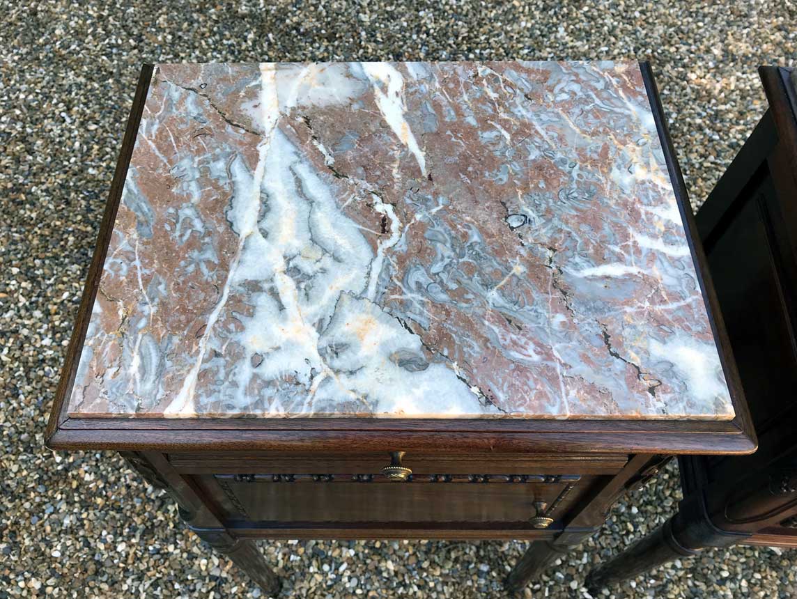 Pair of Vintage French Walnut & Kingwood Bedsides with Marble Tops