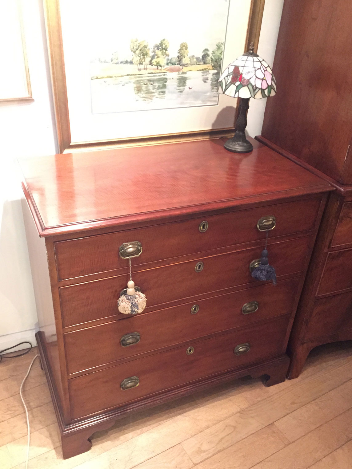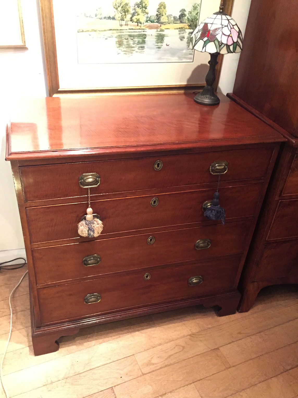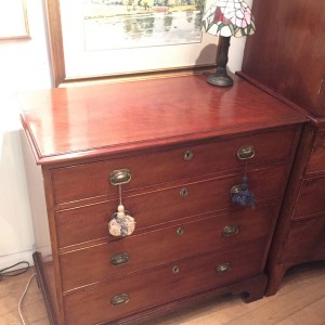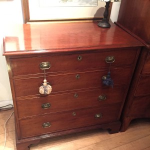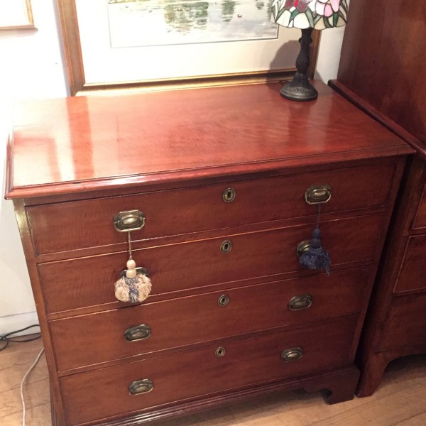 George III – Chest of drawers with four long drawers. Brass handles and Bracket feet.