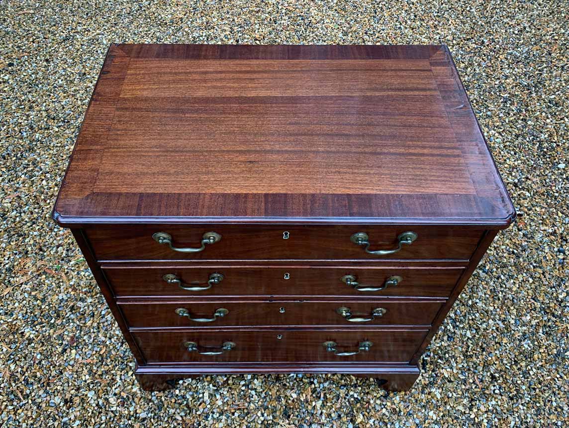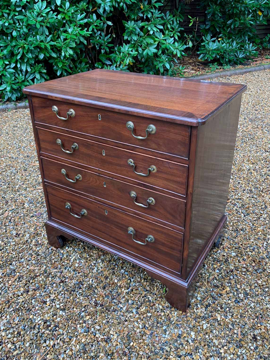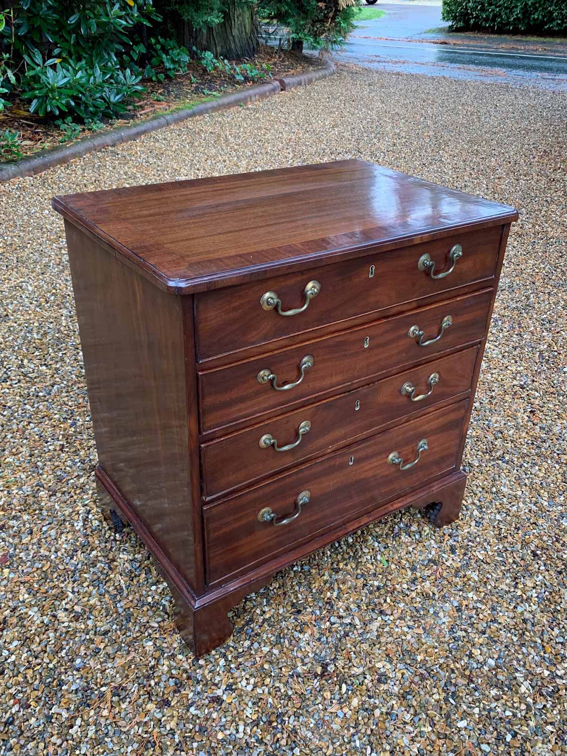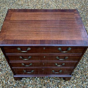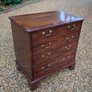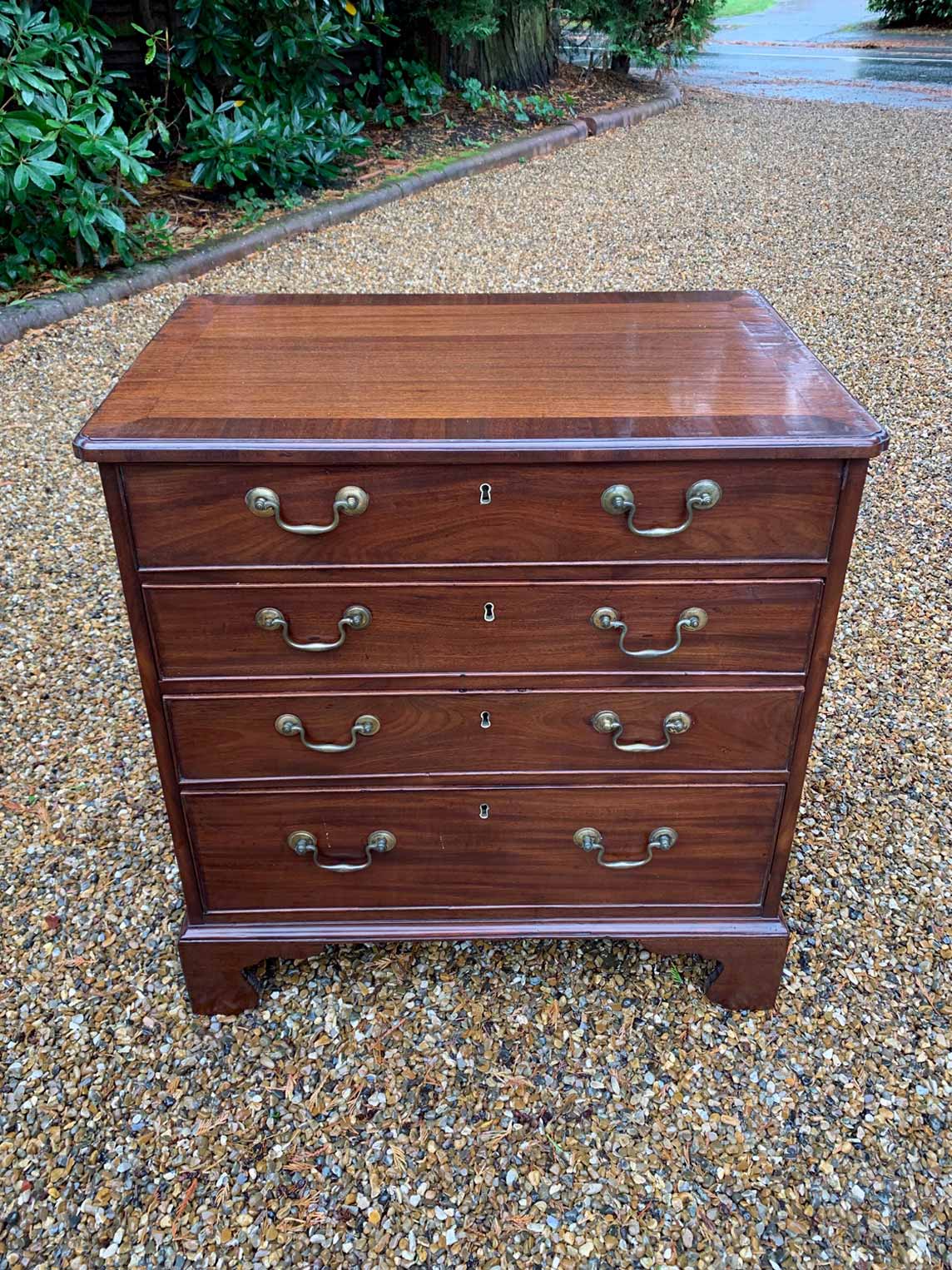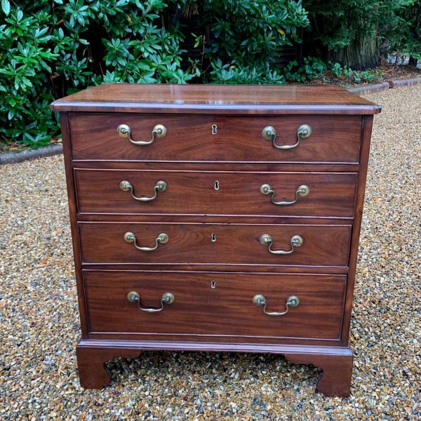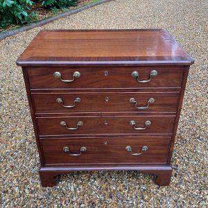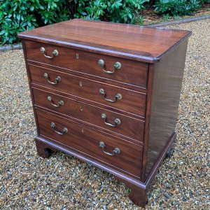 19th Century Mahogany Chest Of Drawers with oak lined drawers and brass swan neck handles.