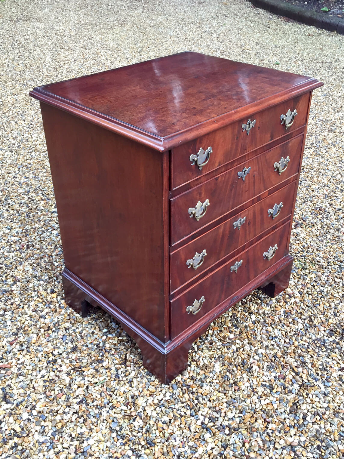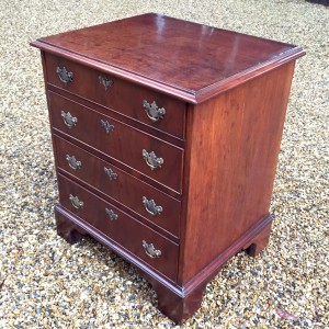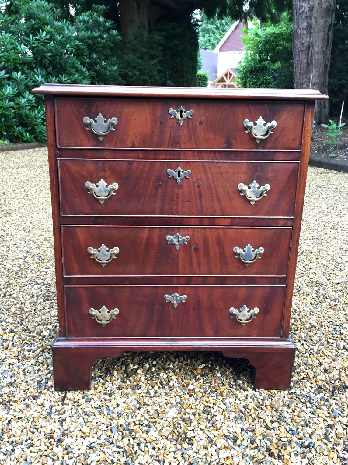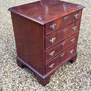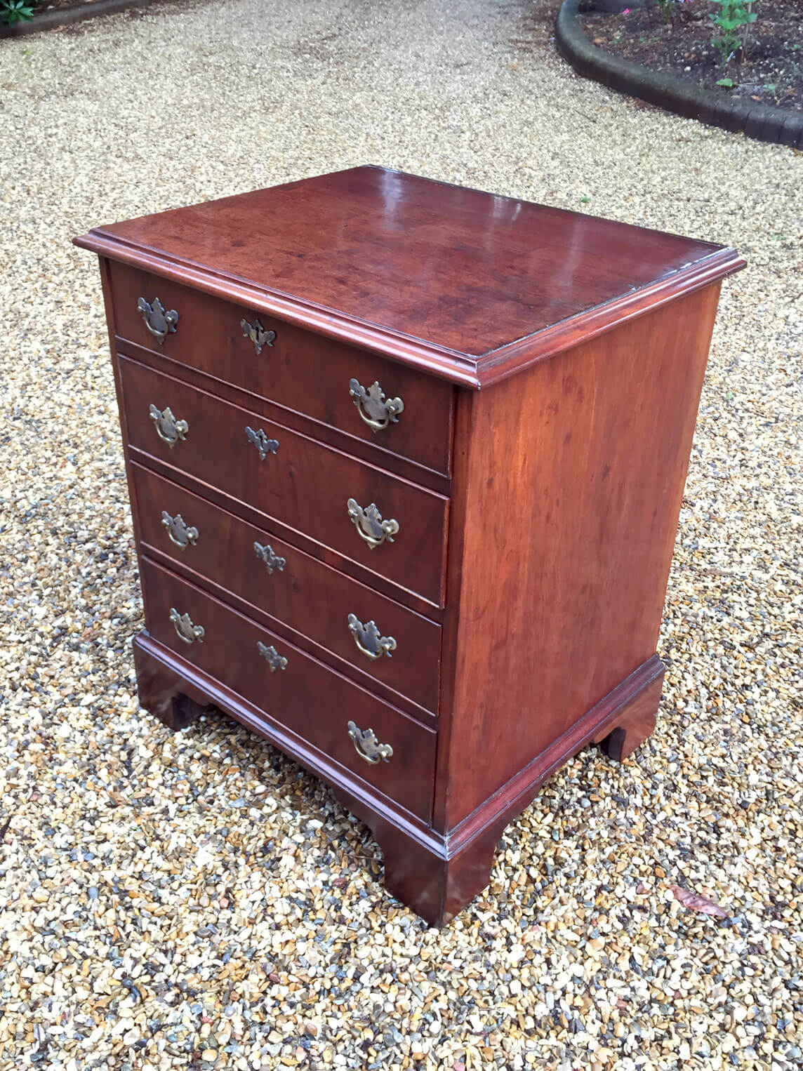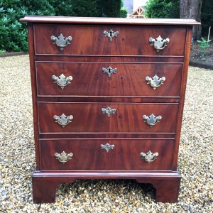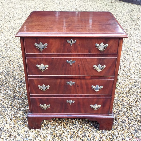 Small Georgian Mahogany Chest of Drawers with brass handles and four long drawers.