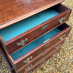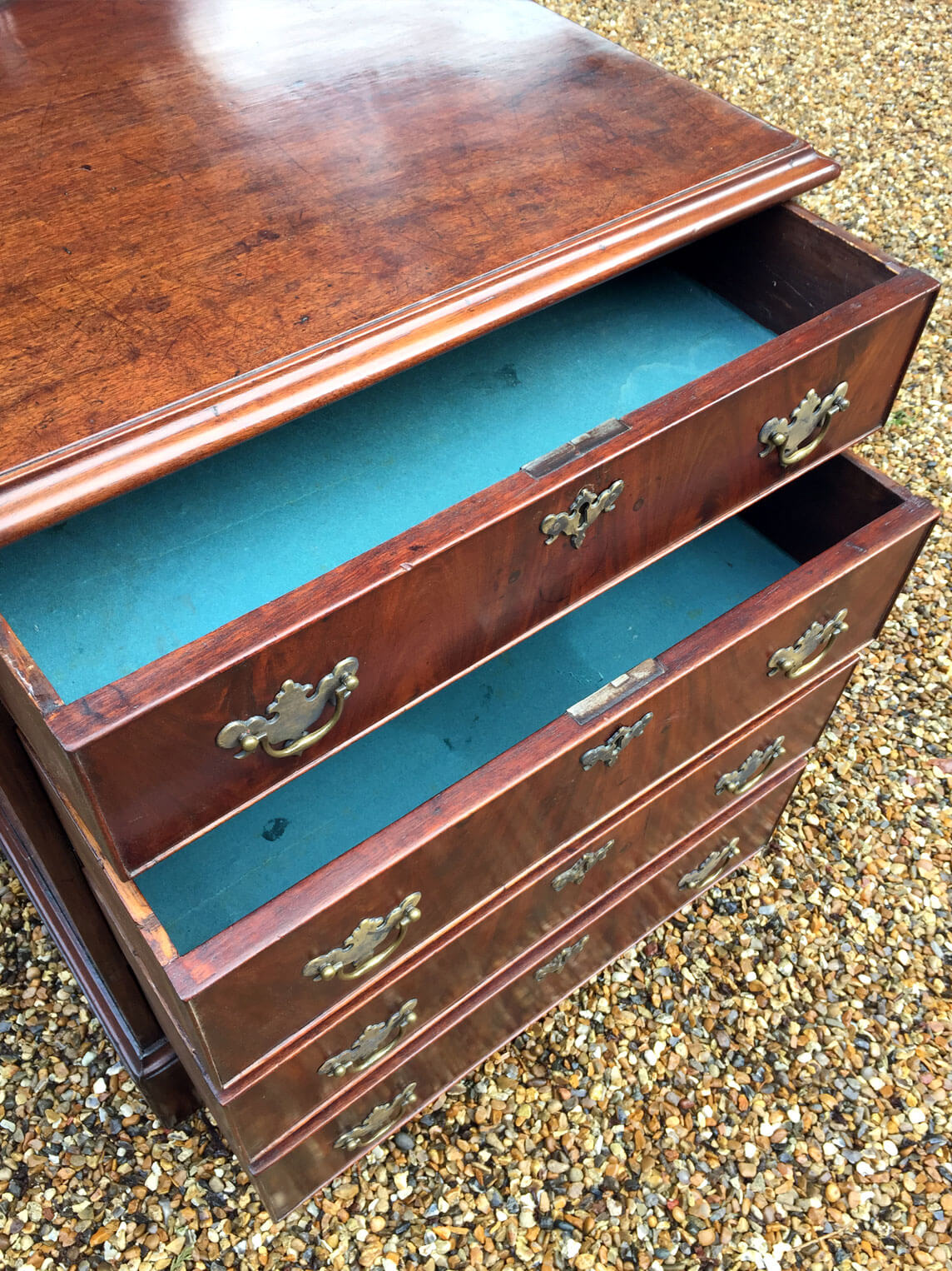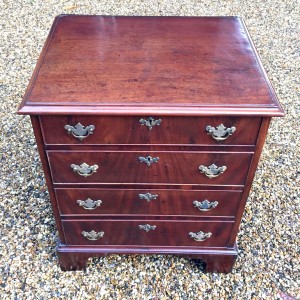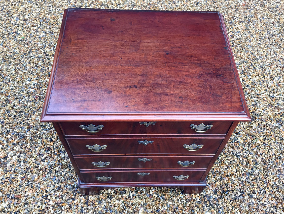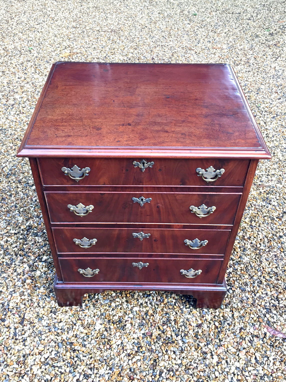 Small Georgian Mahogany Chest of Drawers with brass handles and four long drawers.