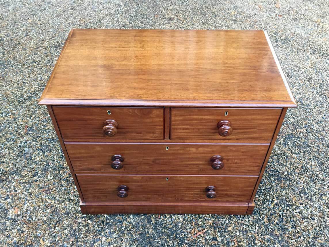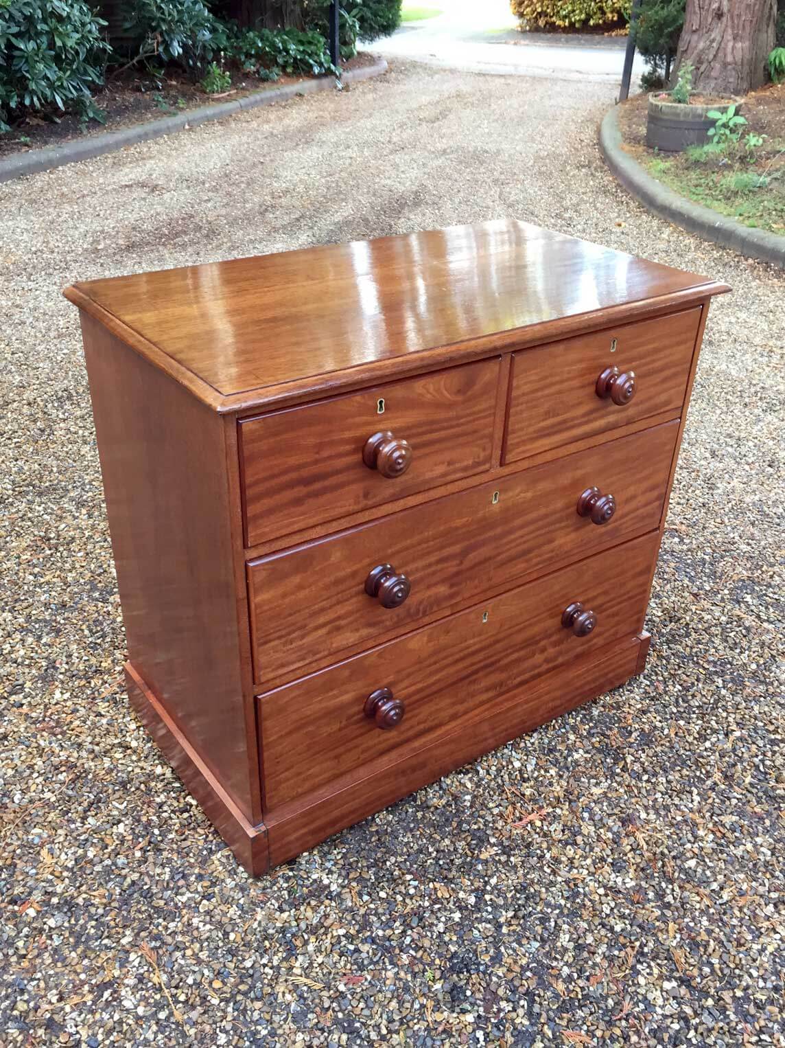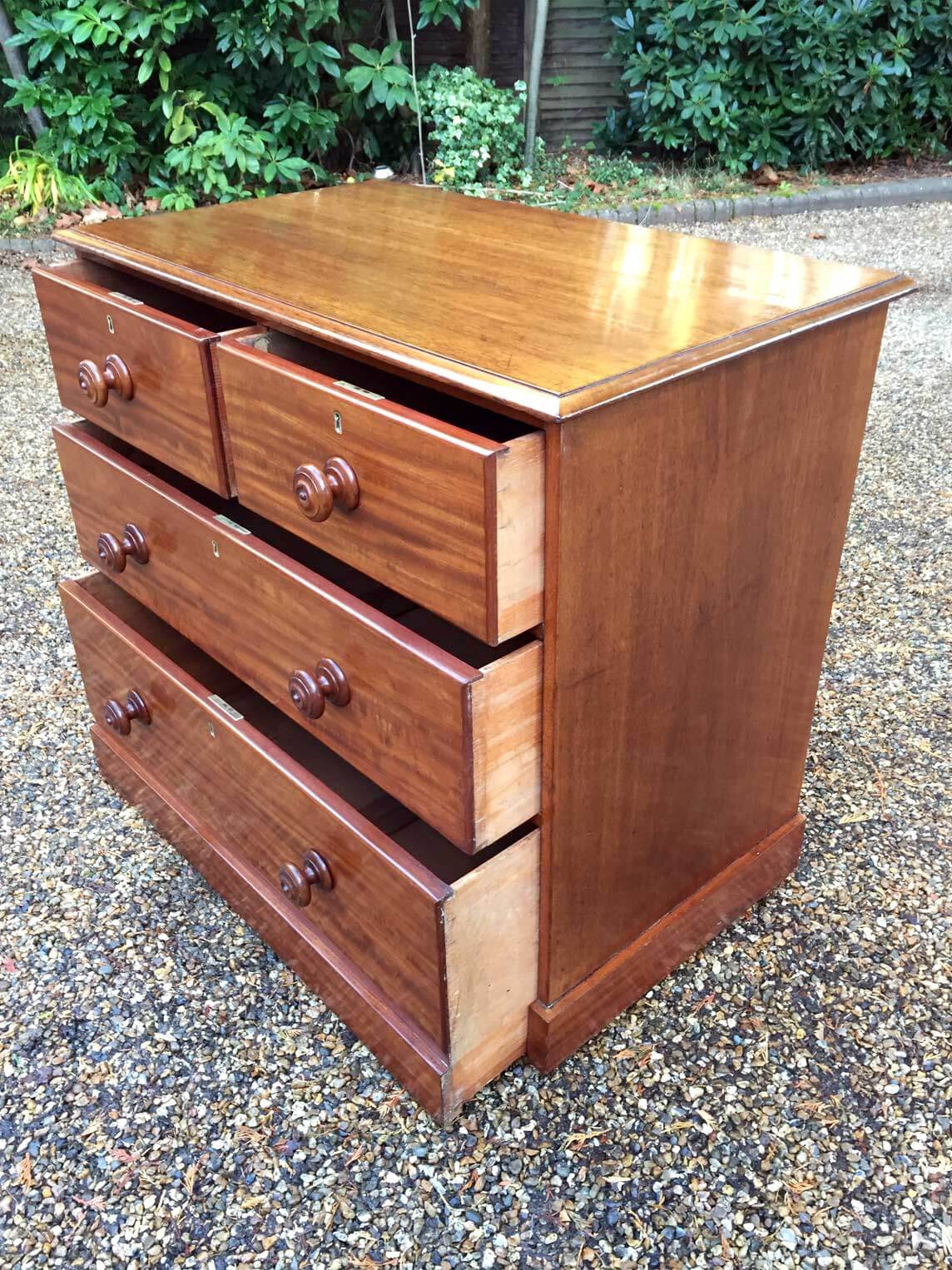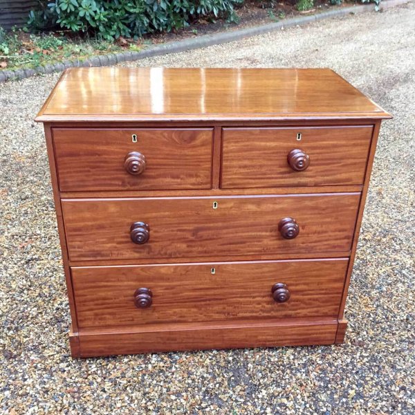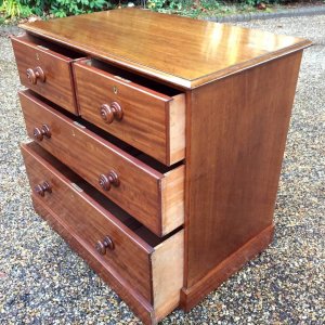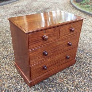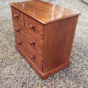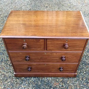 Victorian Mahogany Chest Of Drawers with two short, two long drawers with original bun handles.