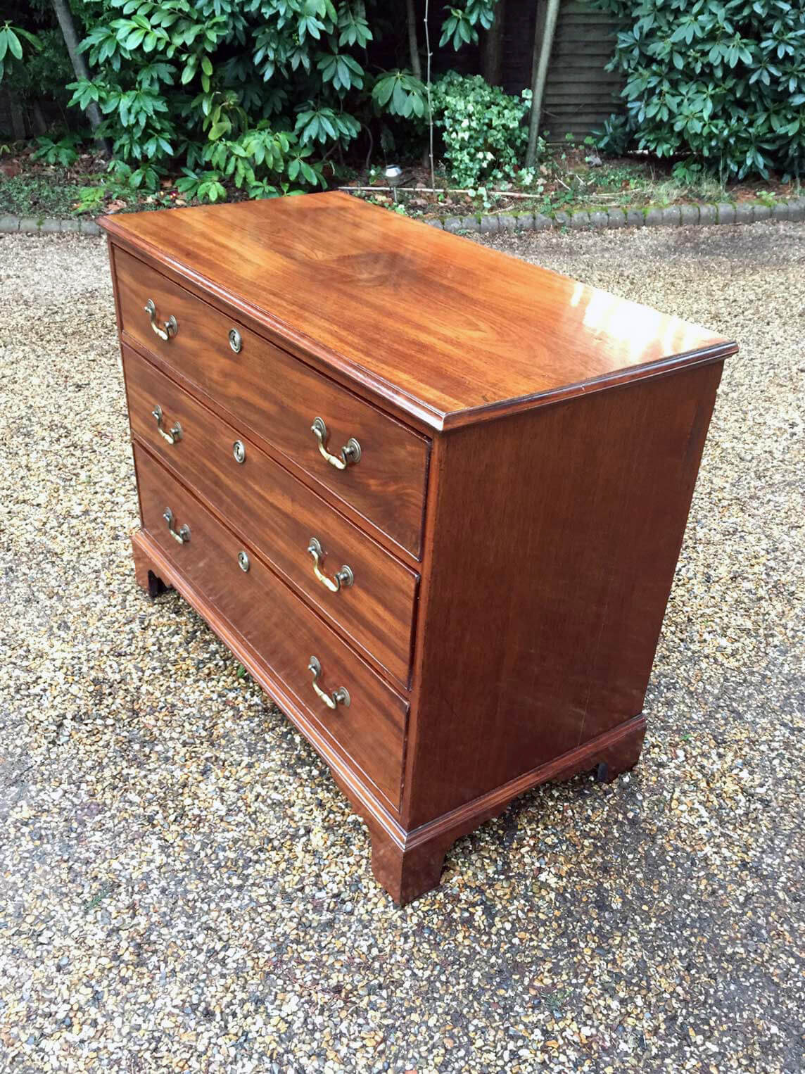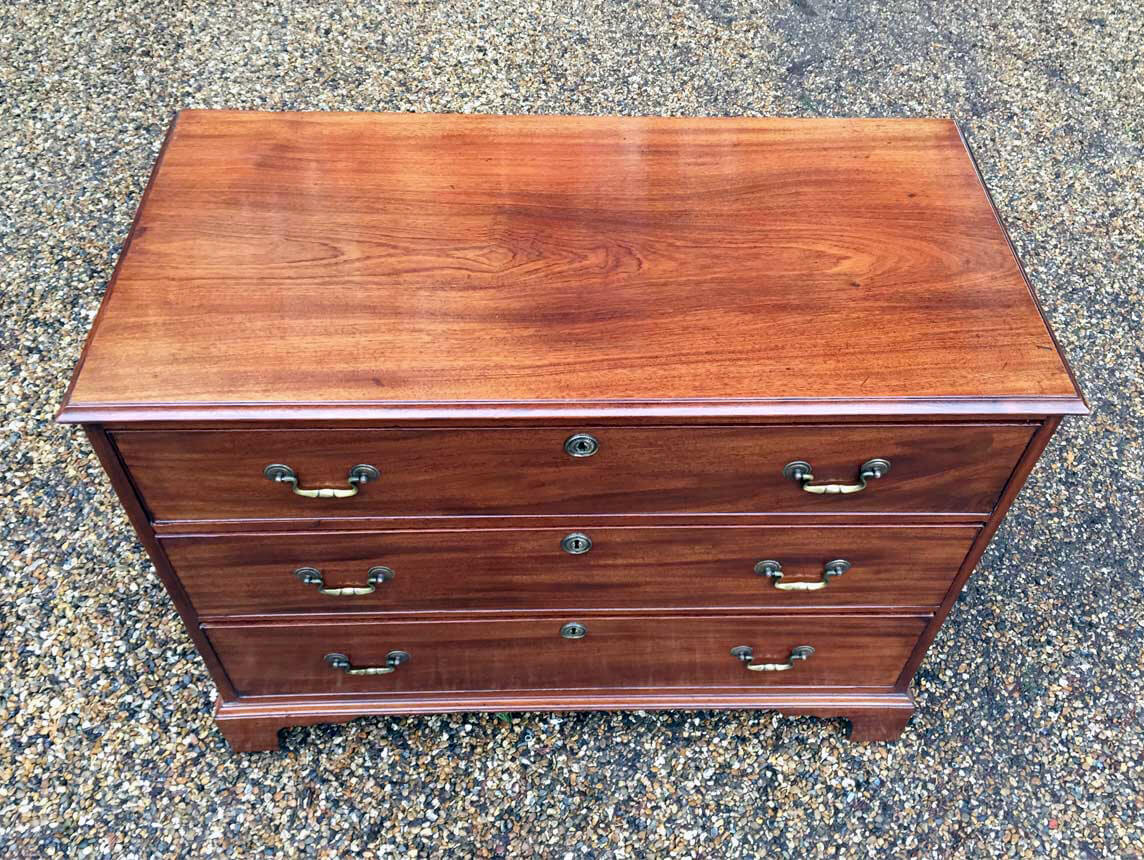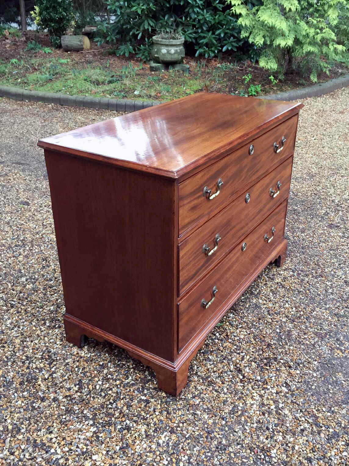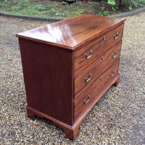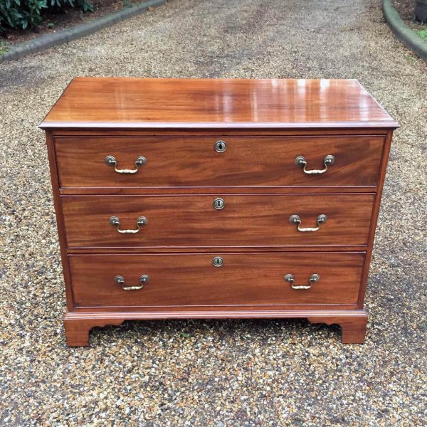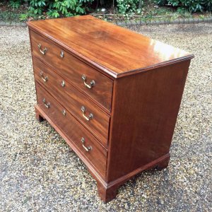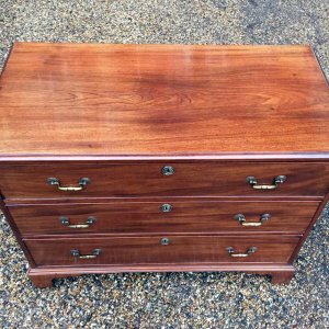 18th Century / Georgian Mahogany Chest of Drawers with three long drawers and solid brass fittings on bracket feet.
