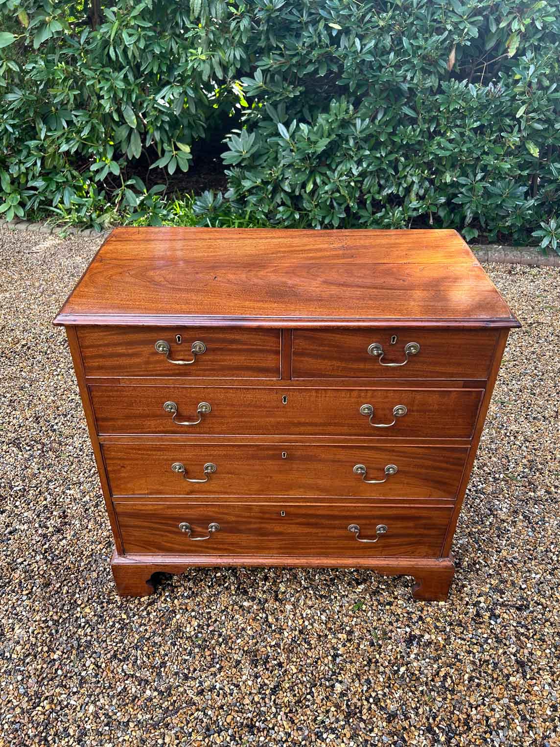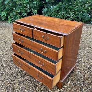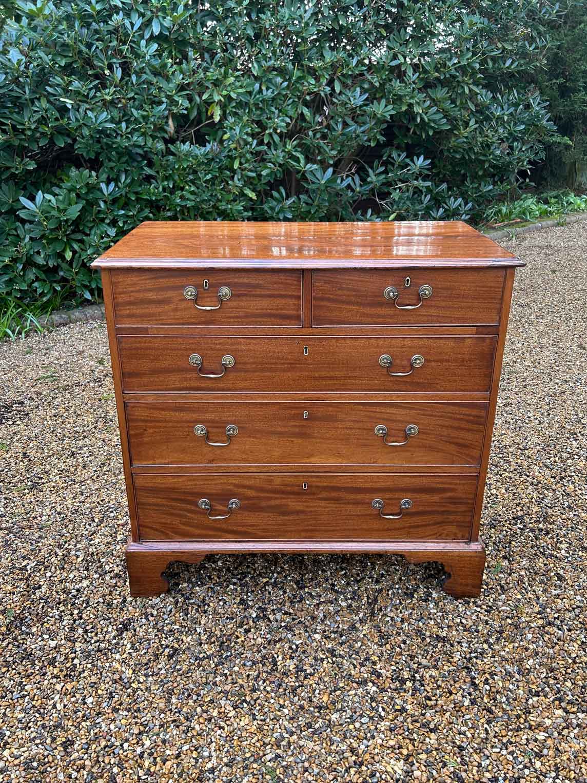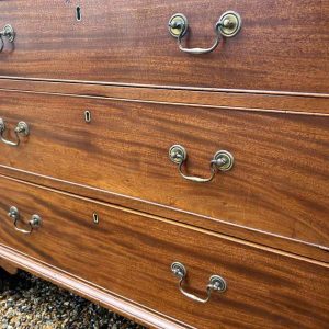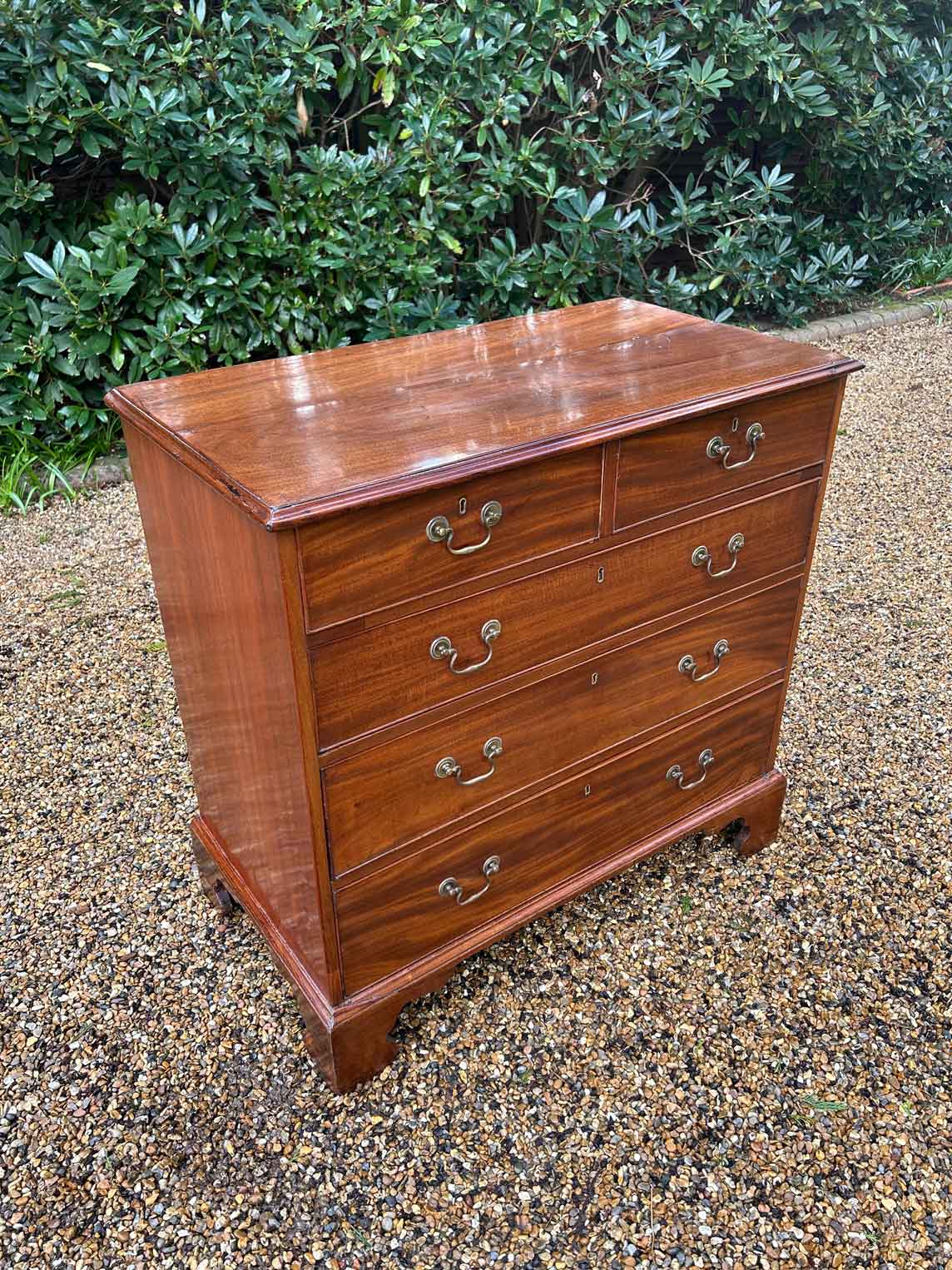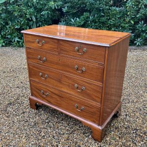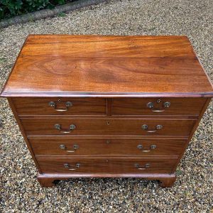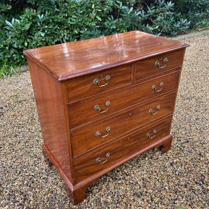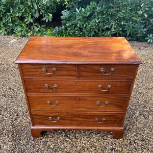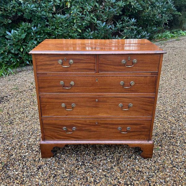 19th Century George III Mahogany Chest Of Drawers with two short and three long graduated drawers, original brass swan neck handles, on bracket feet.