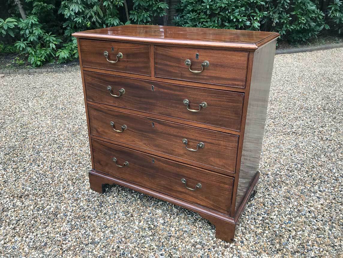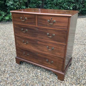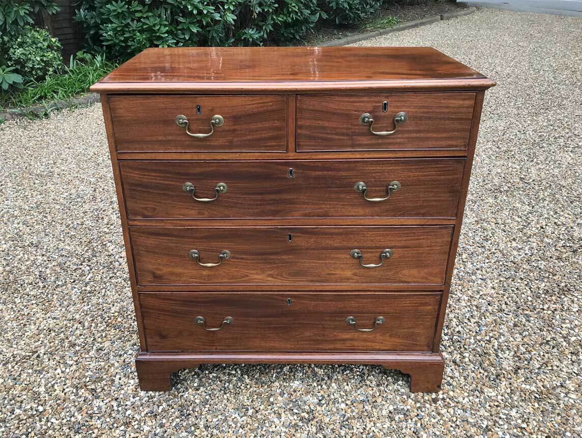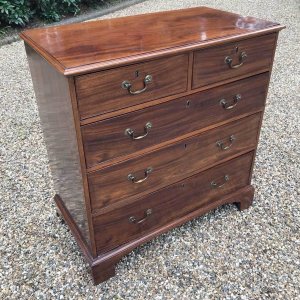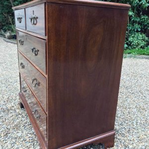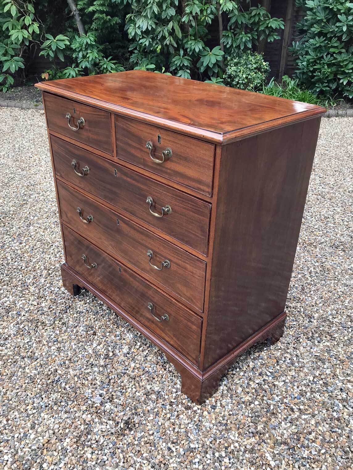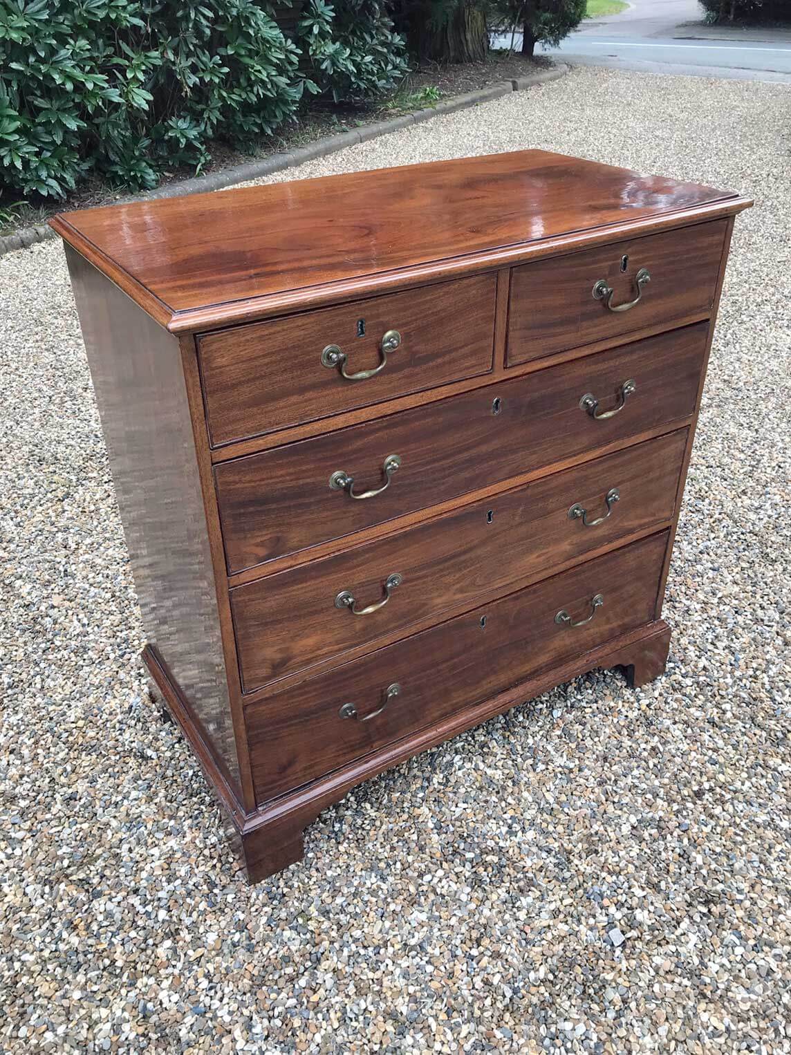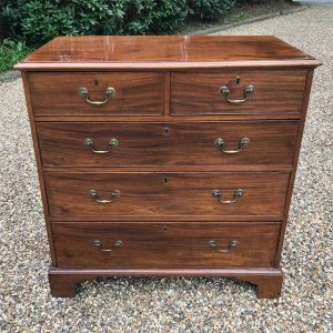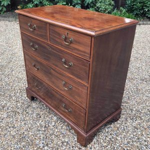 An 18th Century, George III Mahogany Chest Of Drawers with two short and three graduated long drawers with brass swan neck handles, on bracket feet.
