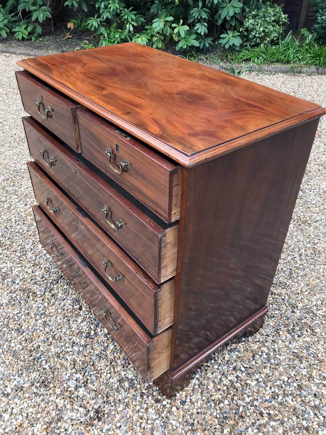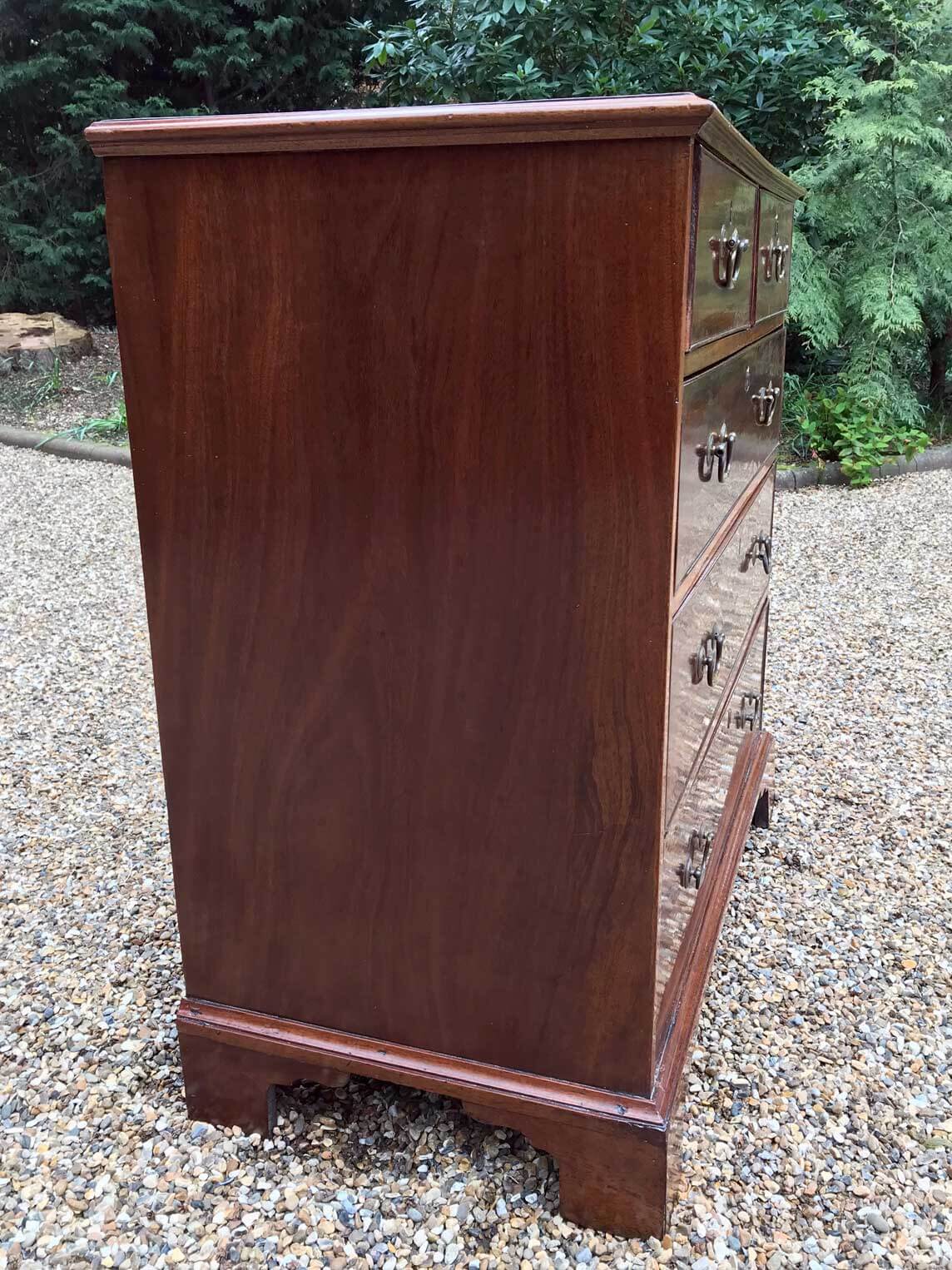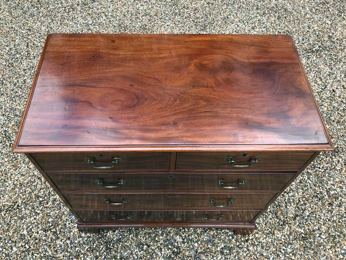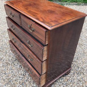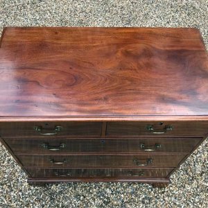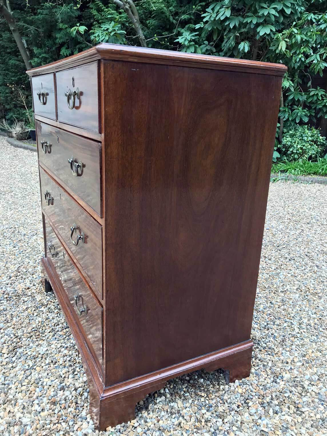 An 18th Century, George III Mahogany Chest Of Drawers with two short and three graduated long drawers with brass swan neck handles, on bracket feet.