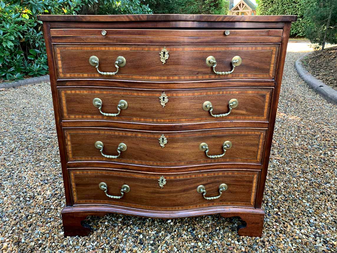 Georgian Mahogany Inlaid Serpentine Chest Of Drawers