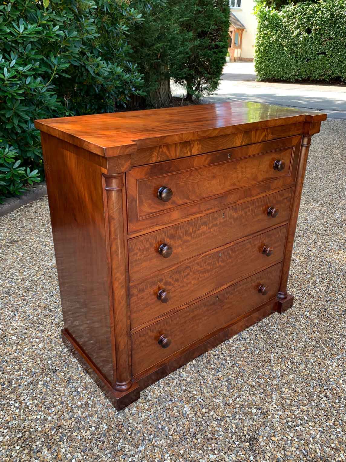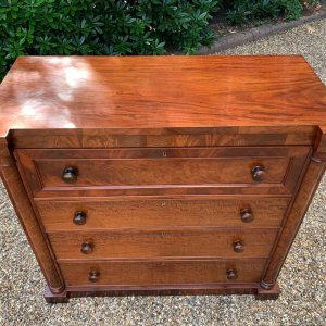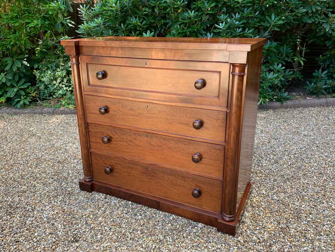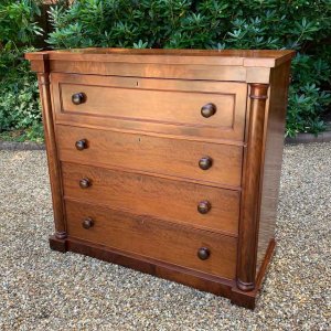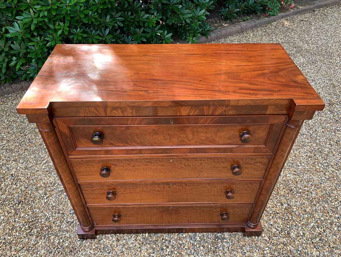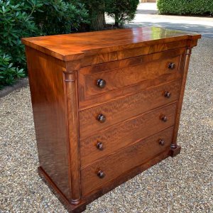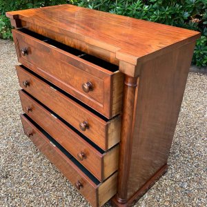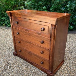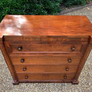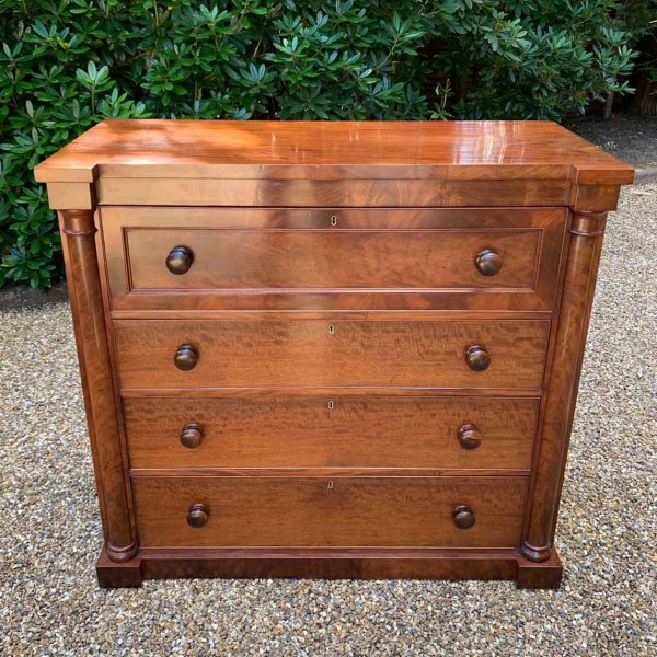 19th Century Mahogany Chest of Drawers with four long graduated drawers and turned Rosewood handles, flanked by spilt turned columns on a plinth base.