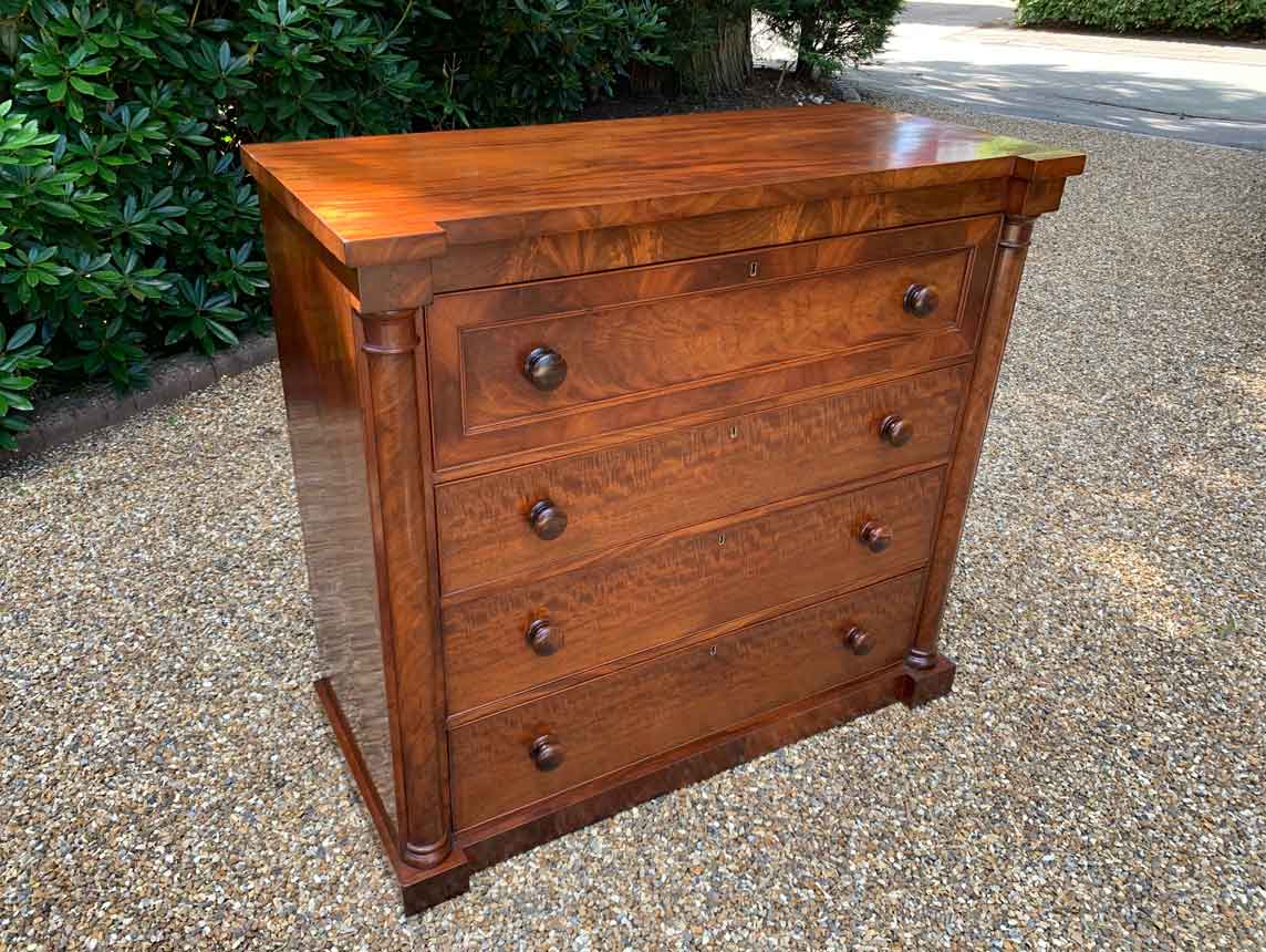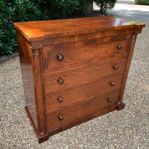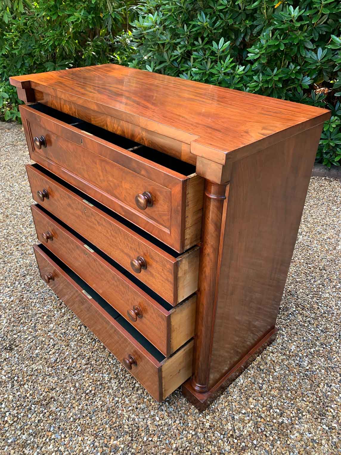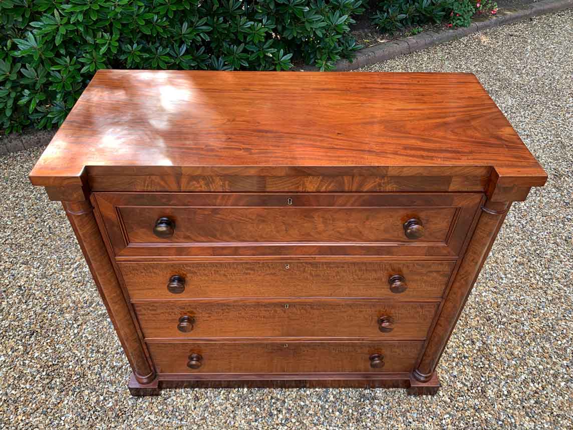 19th Century Mahogany Chest of Drawers with four long graduated drawers and turned Rosewood handles, flanked by spilt turned columns on a plinth base.