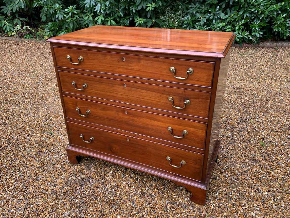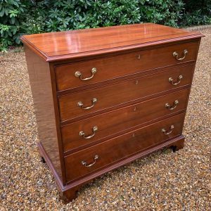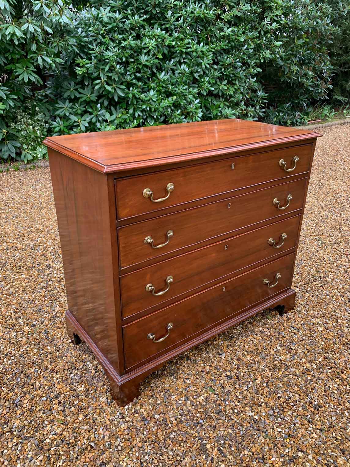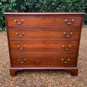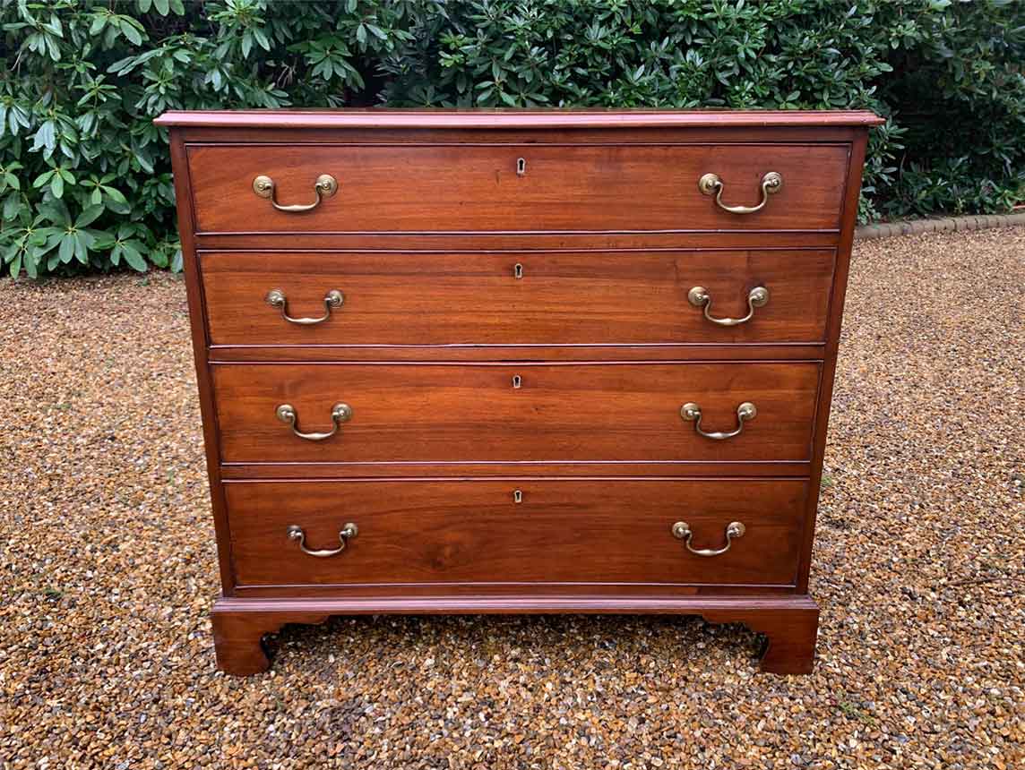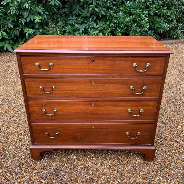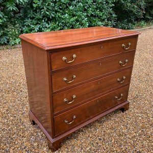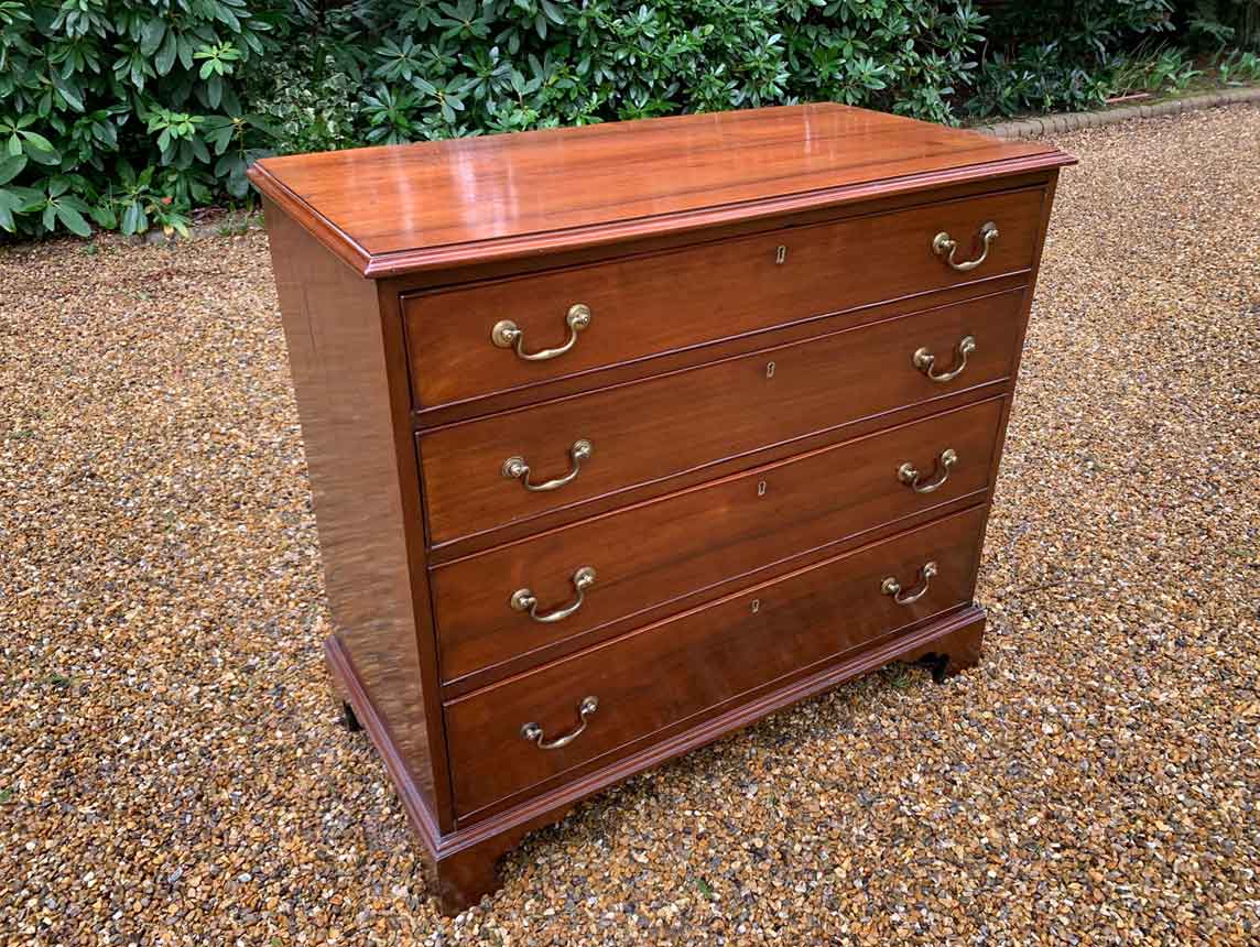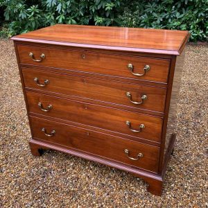 19th Century Georgian Mahogany Chest Of Drawers with four long graduated drawers and brass swan neck handles, on bracket feet.