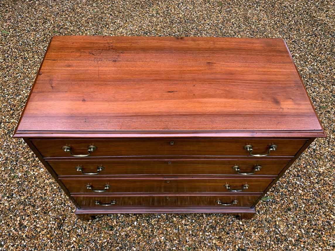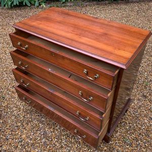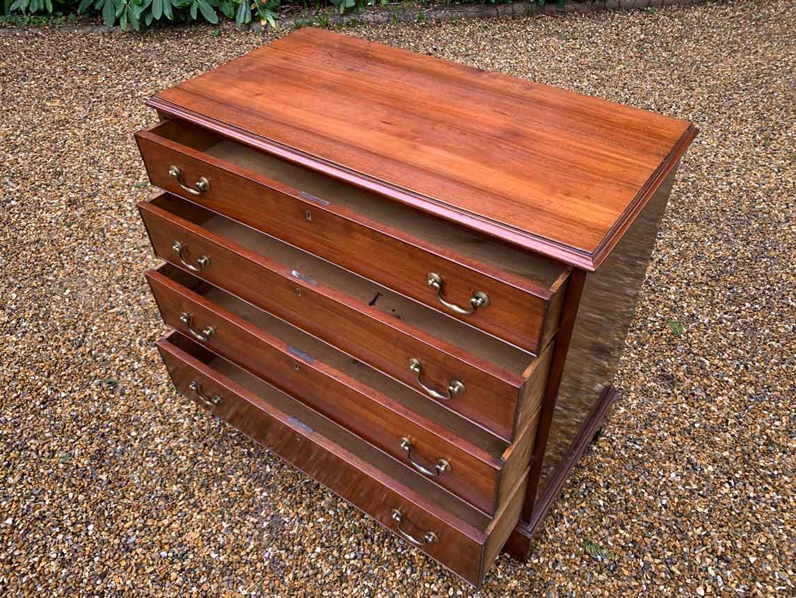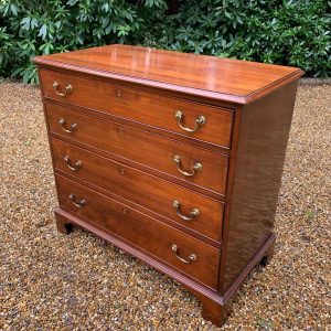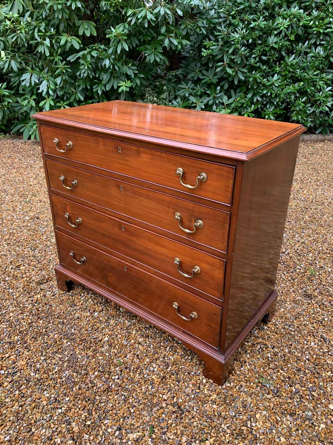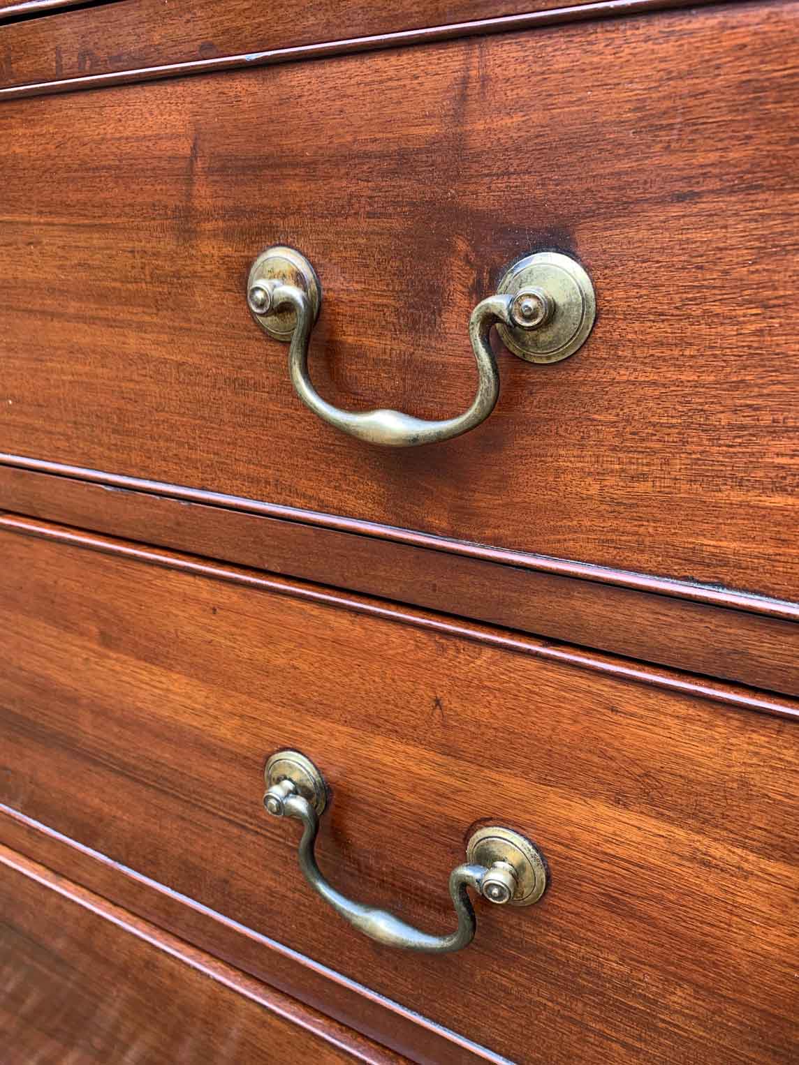 19th Century Georgian Mahogany Chest Of Drawers with four long graduated drawers and brass swan neck handles, on bracket feet.