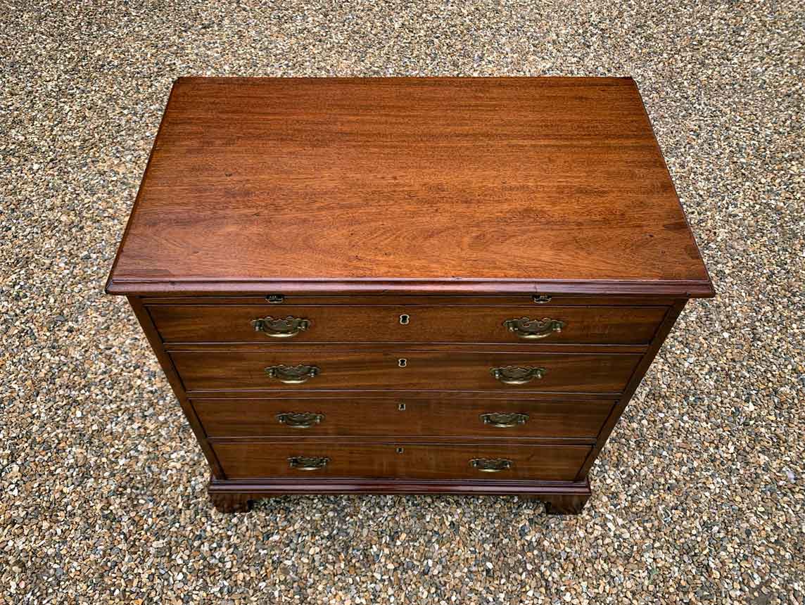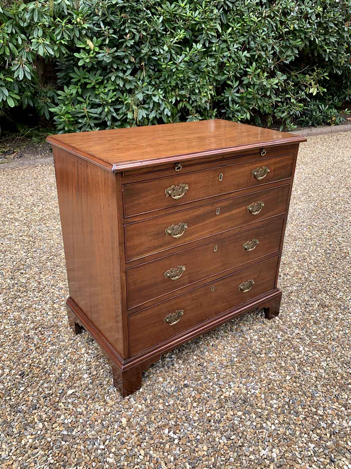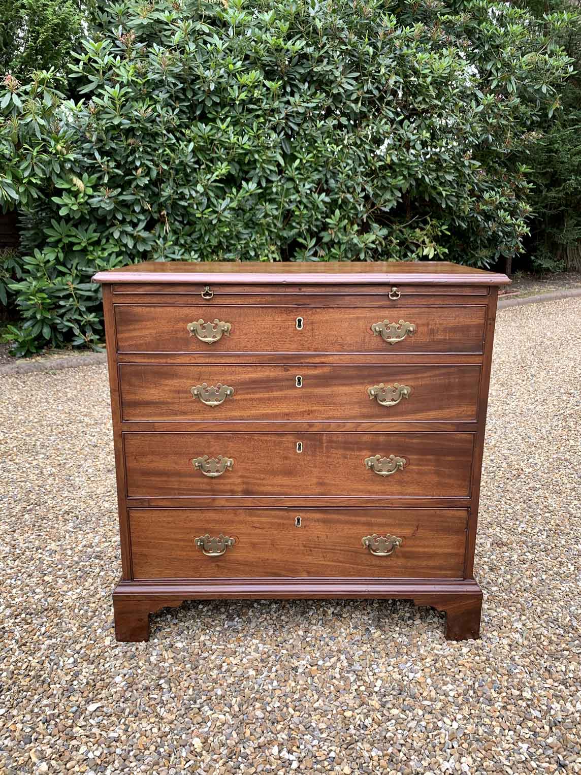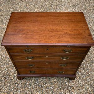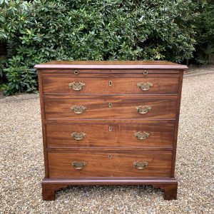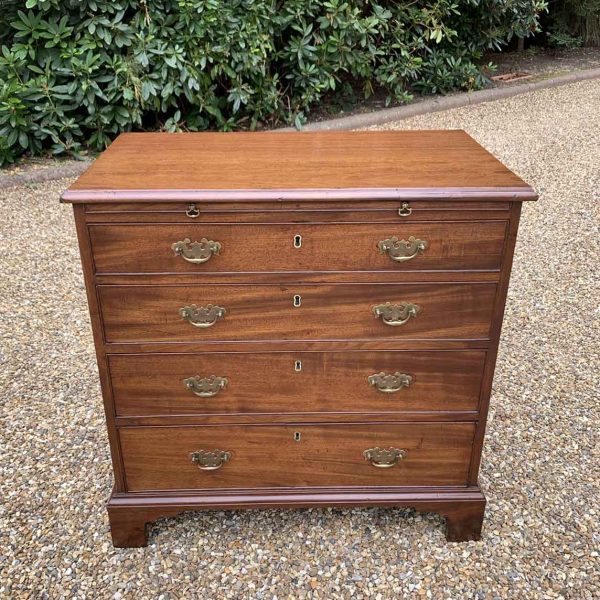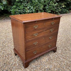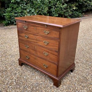 18th Century Georgian Mahogany Chest Of Drawers with Brushing Slide, four long graduated oak lined drawers with brass plate handles, on bracket feet.
