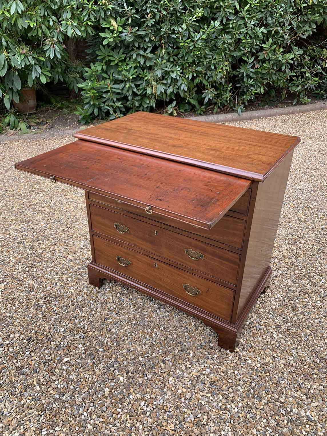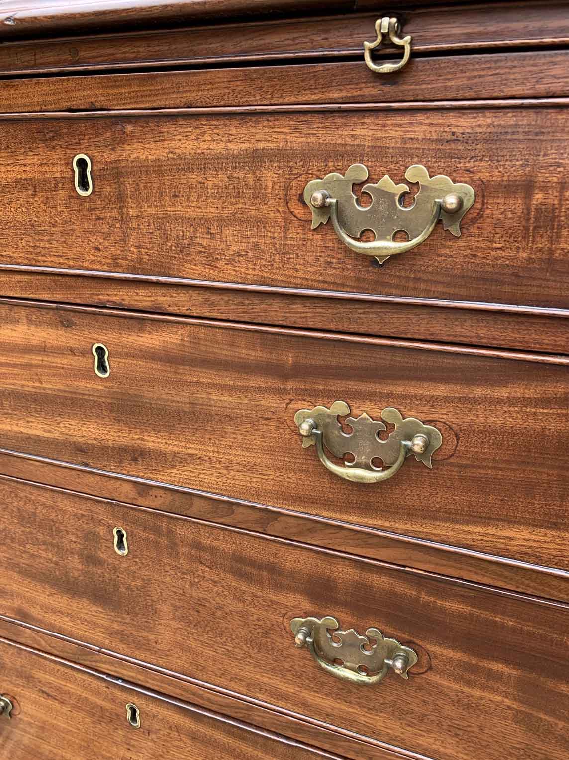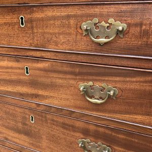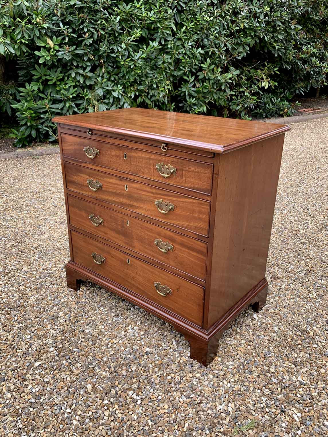 18th Century Georgian Mahogany Chest Of Drawers with Brushing Slide, four long graduated oak lined drawers with brass plate handles, on bracket feet.