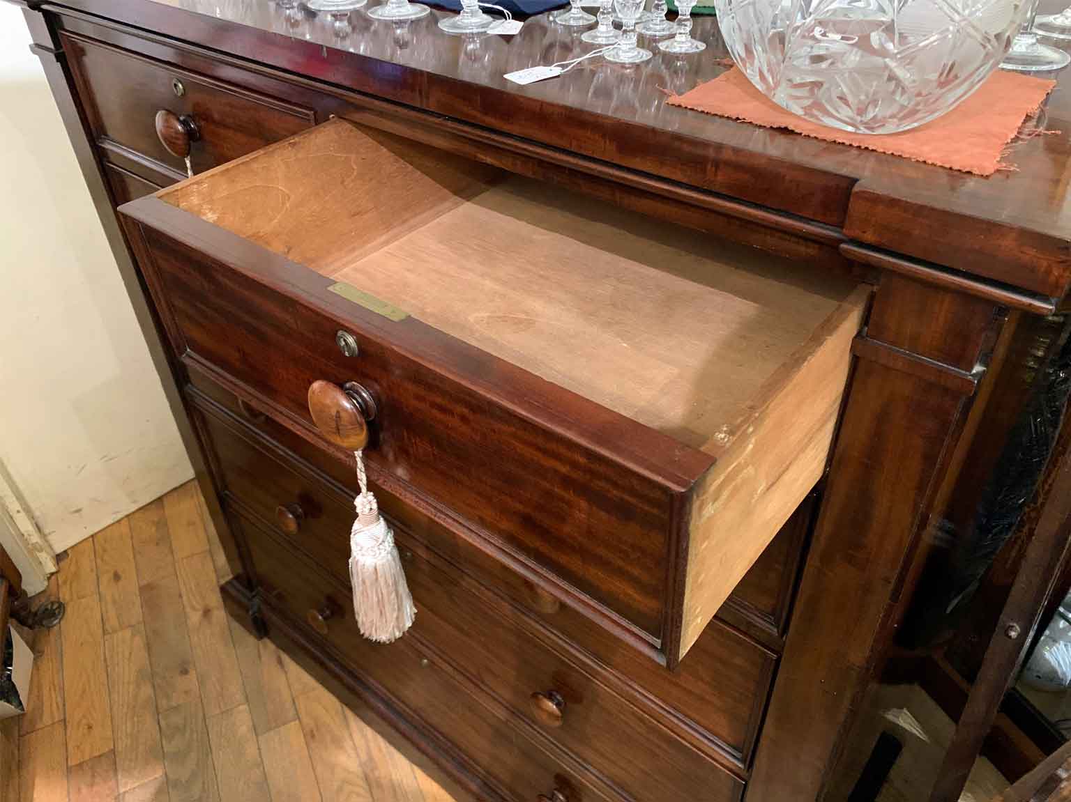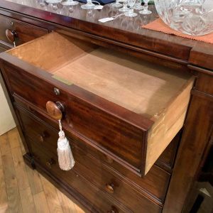 19th Century Mahogany Inverted Breakfront Chest Of Drawers with two short over four long drawers, fitted with turned bun handles on plinth base.