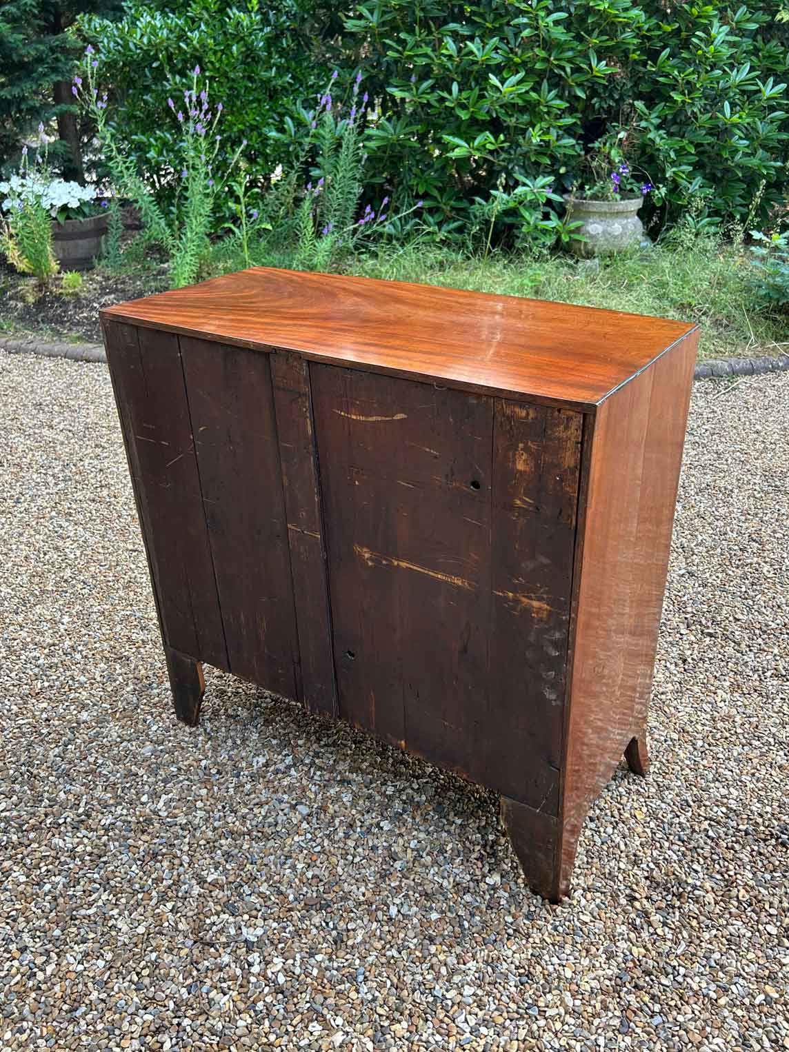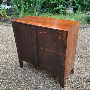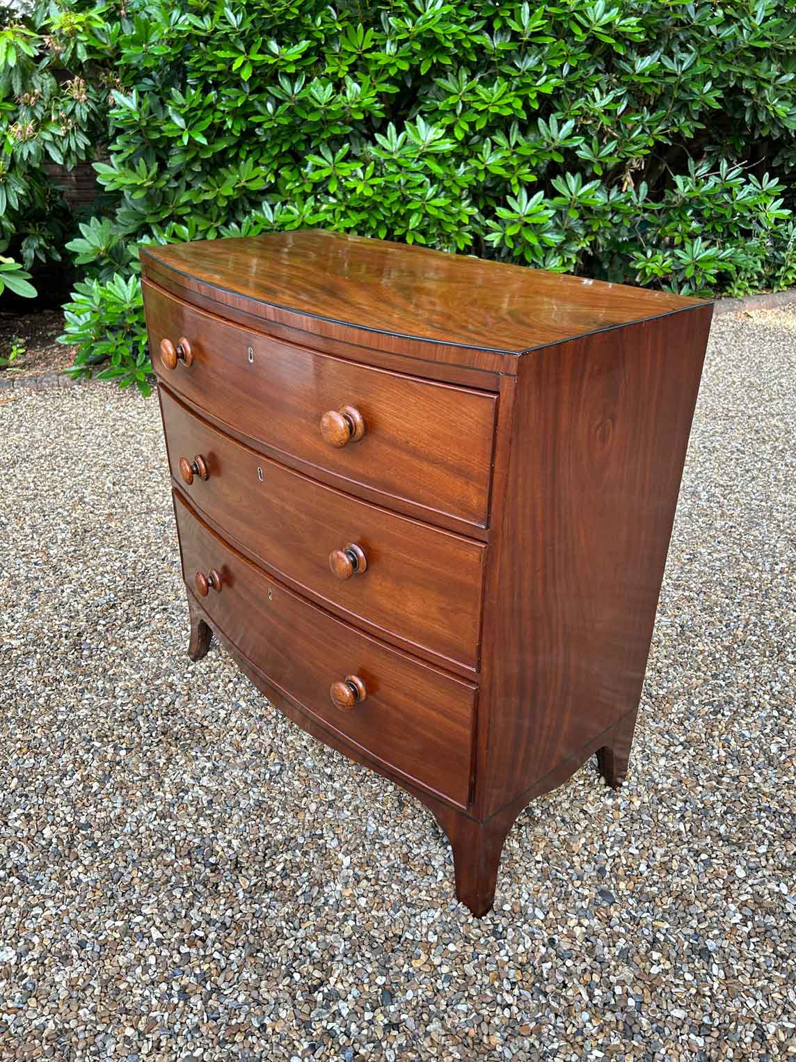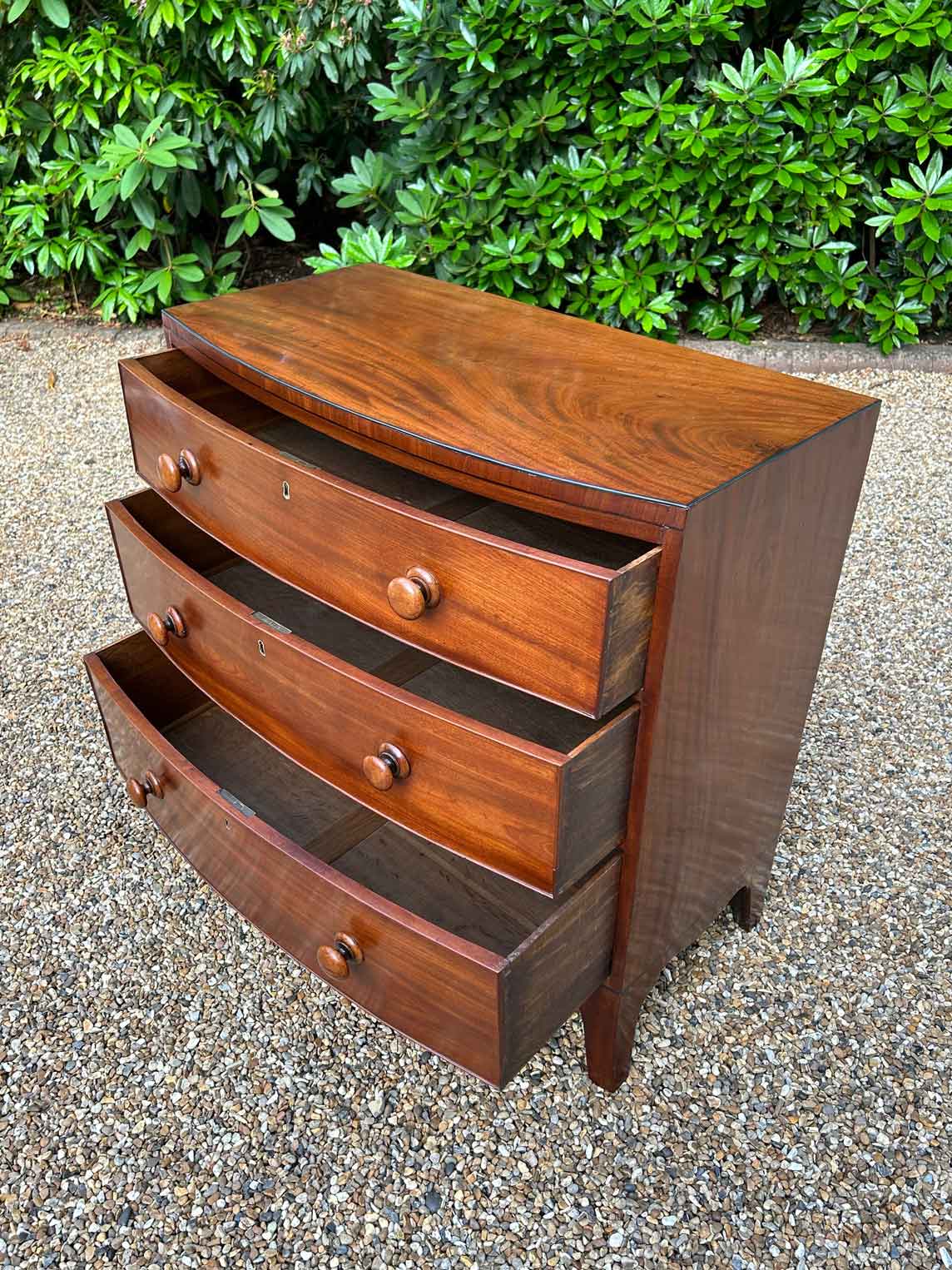 19th Century Georgian / Regency Mahogany Bowfront Chest Of Drawers, with three long graduated oak lined drawers with round turned bun handles, on splayed feet.