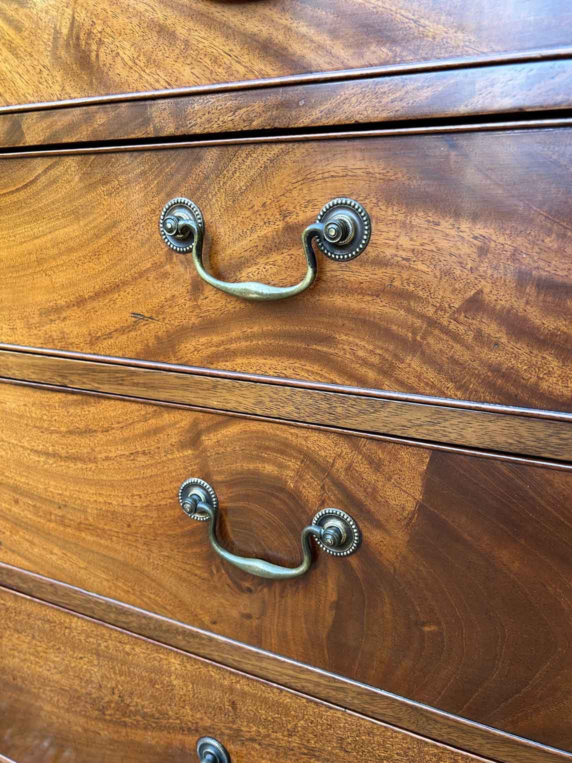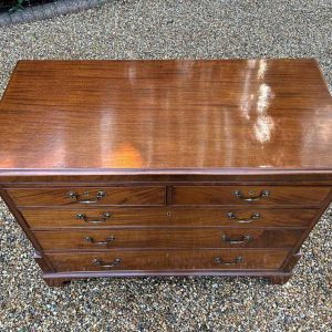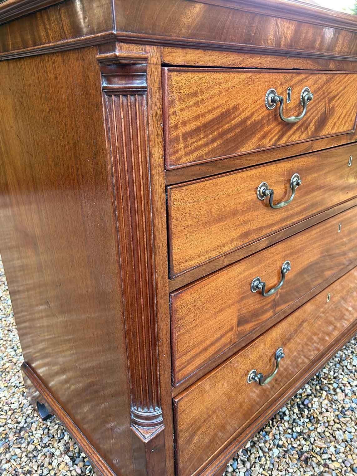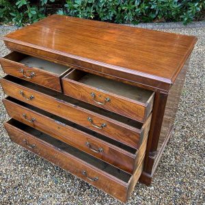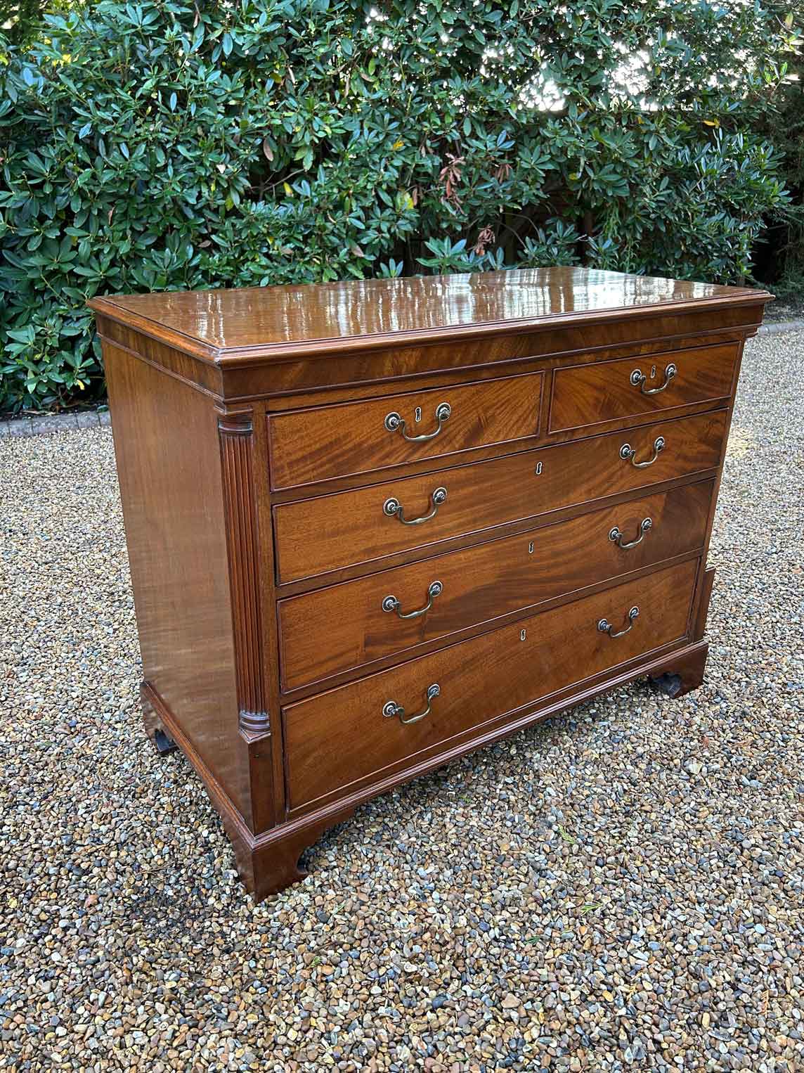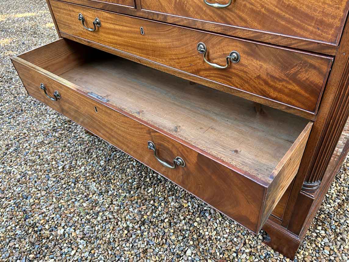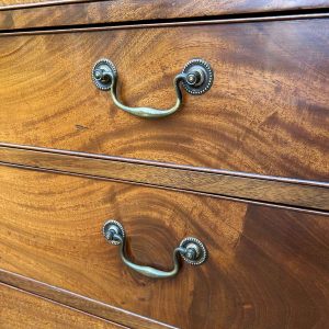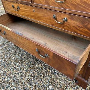 18th Century / Georgian Mahogany Chest of Drawers with two short and three long oak lined drawers, flanked by column pilasters with solid brass fitting on bracket feet.