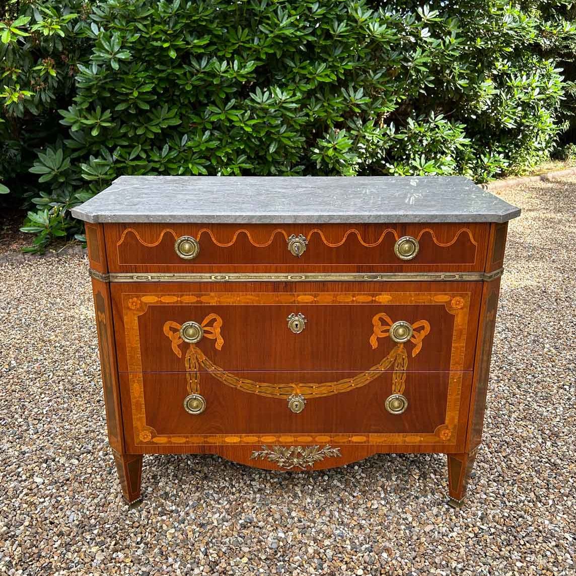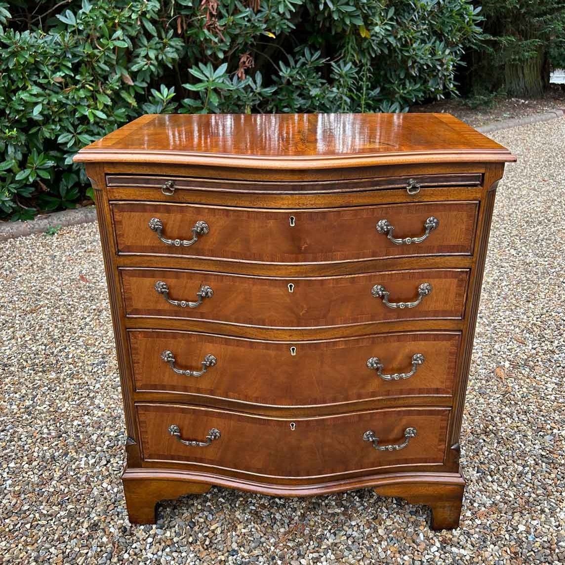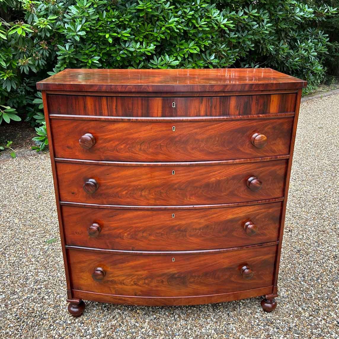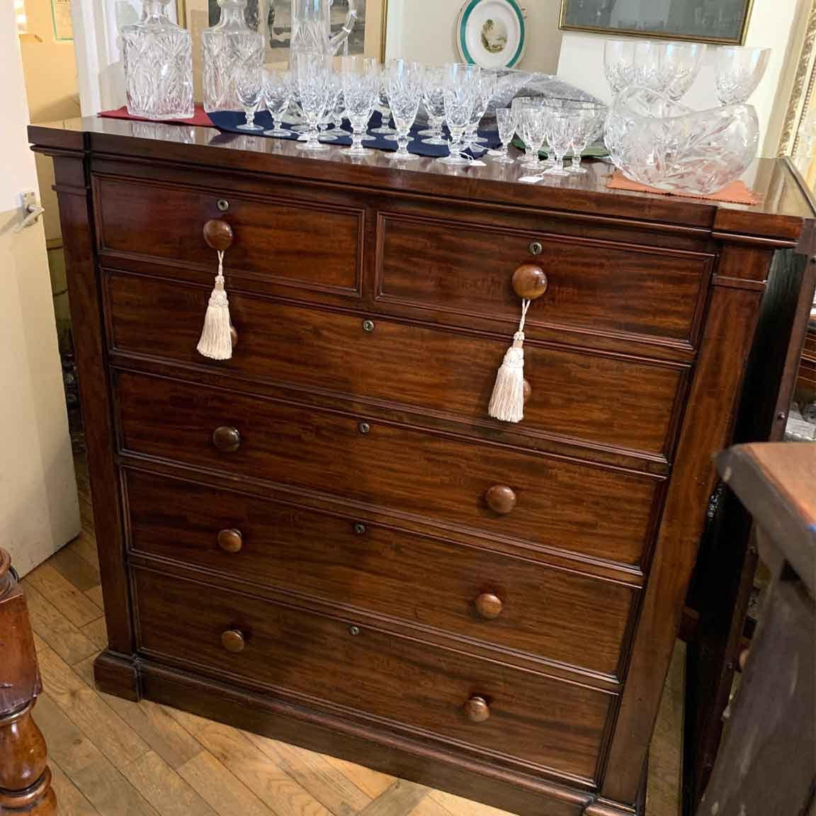 18th Century / Georgian Mahogany Chest of Drawers with two short and three long oak lined drawers, flanked by column pilasters with solid brass fitting on bracket feet.