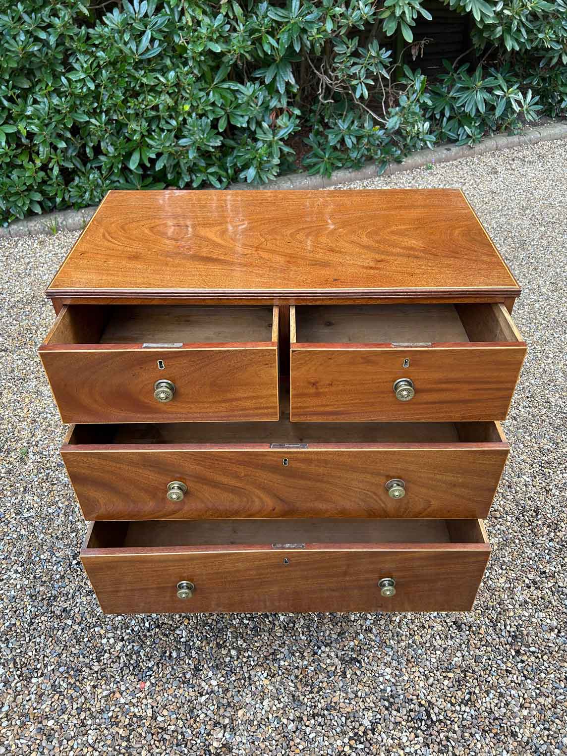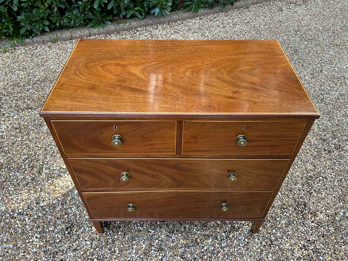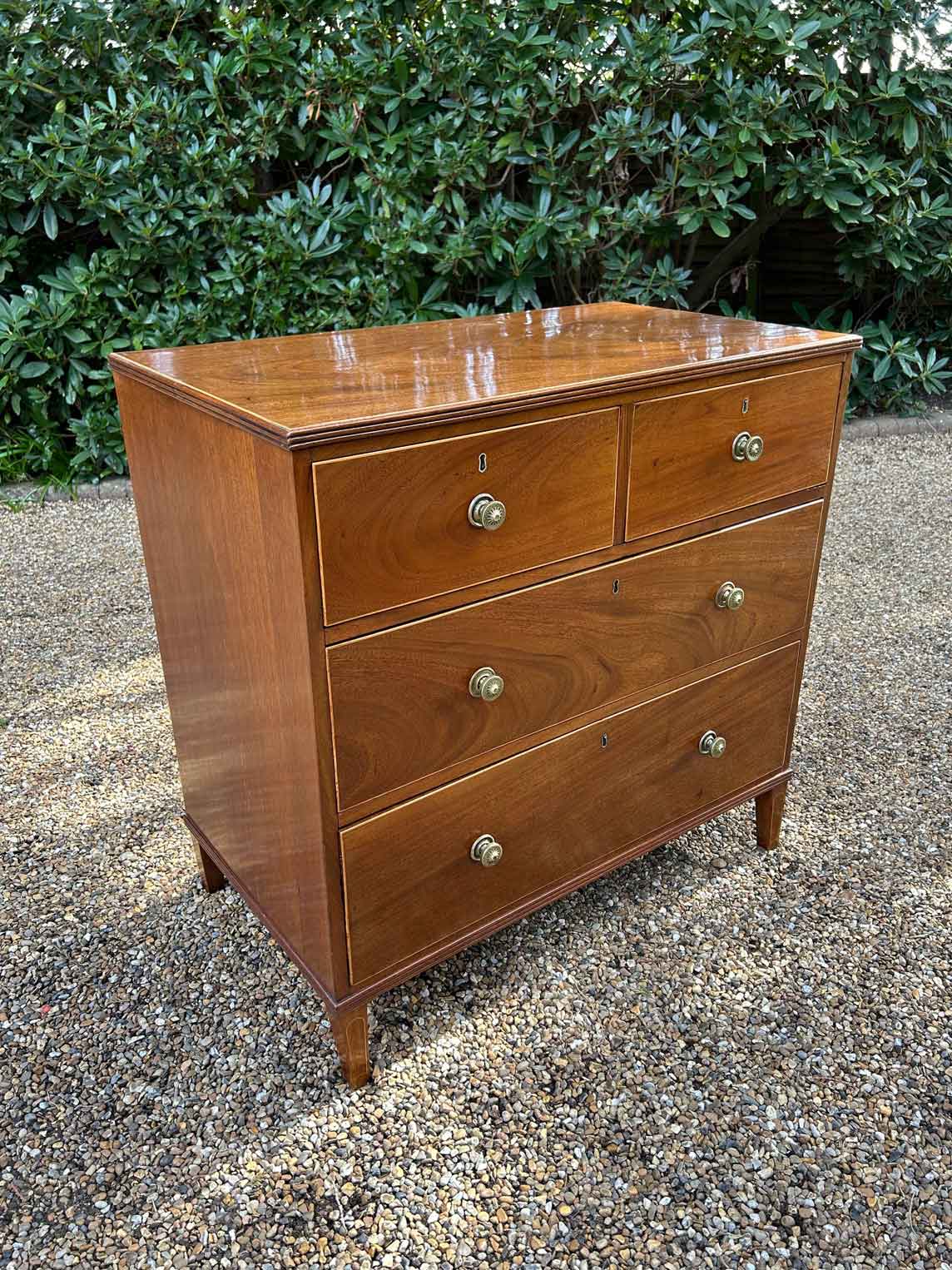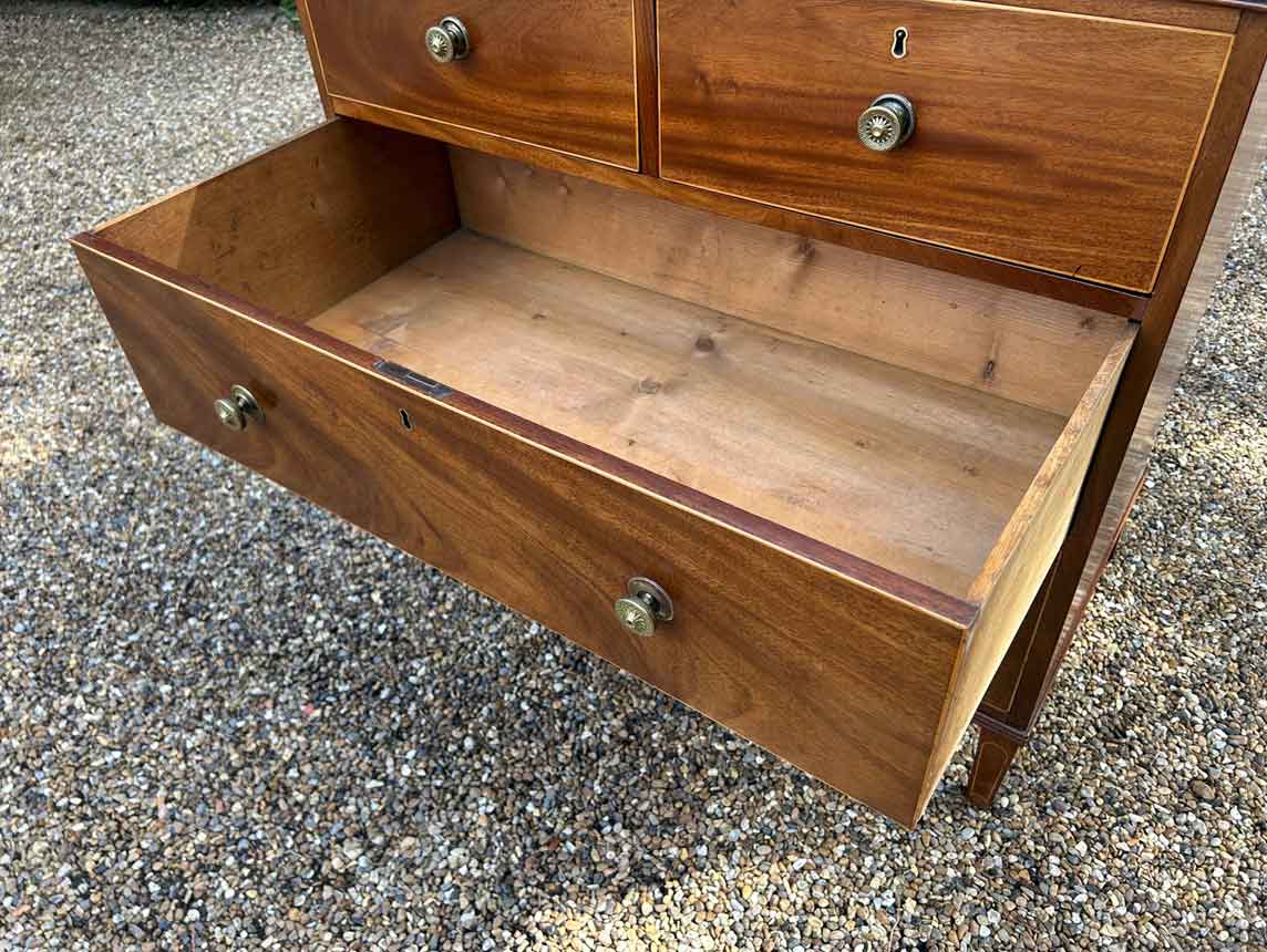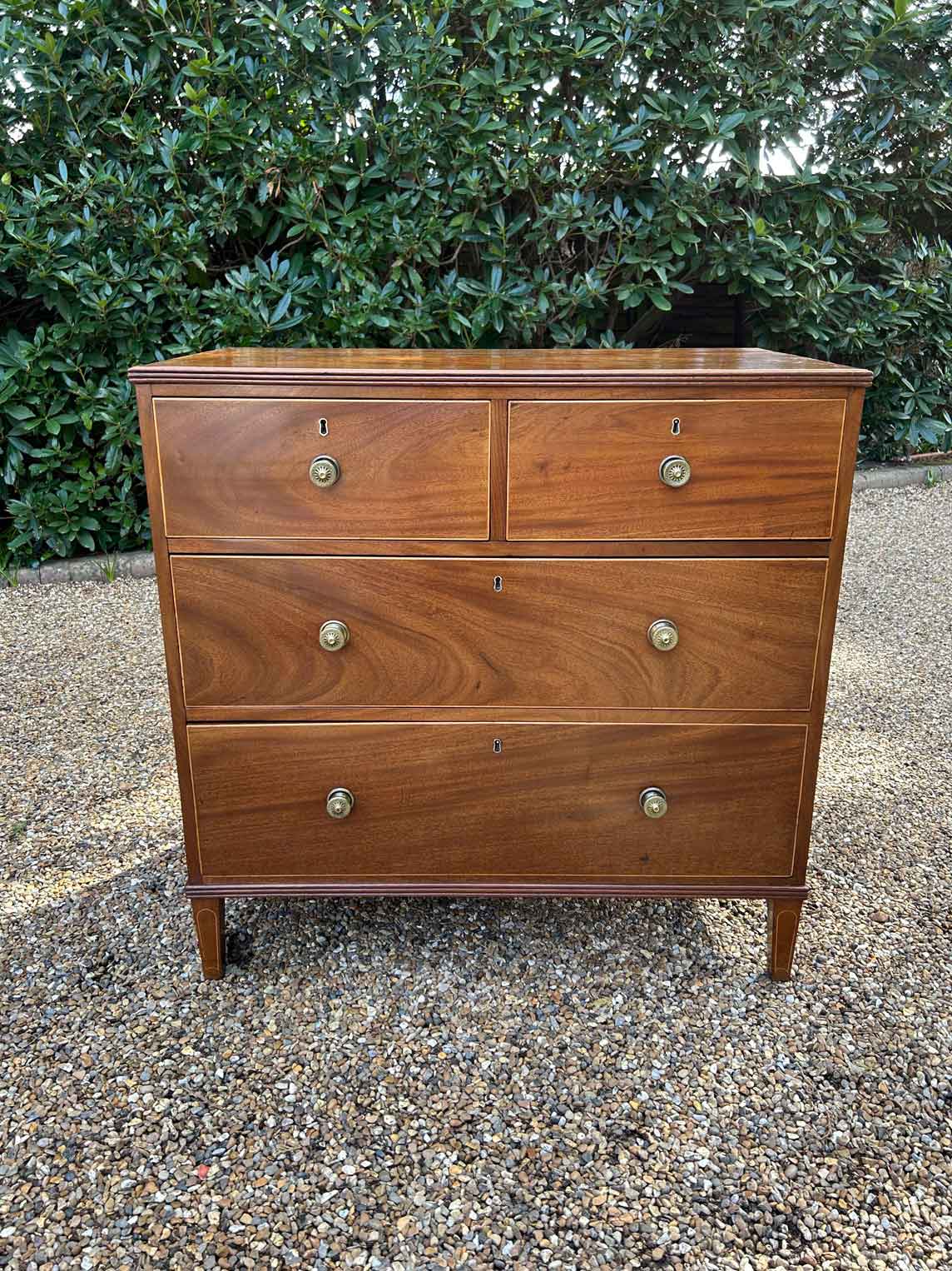 A very high quality 19th Century Georgian Mahogany Chest Of Drawers, with two short and two long drawers, original brass round handles, on original pin feet.