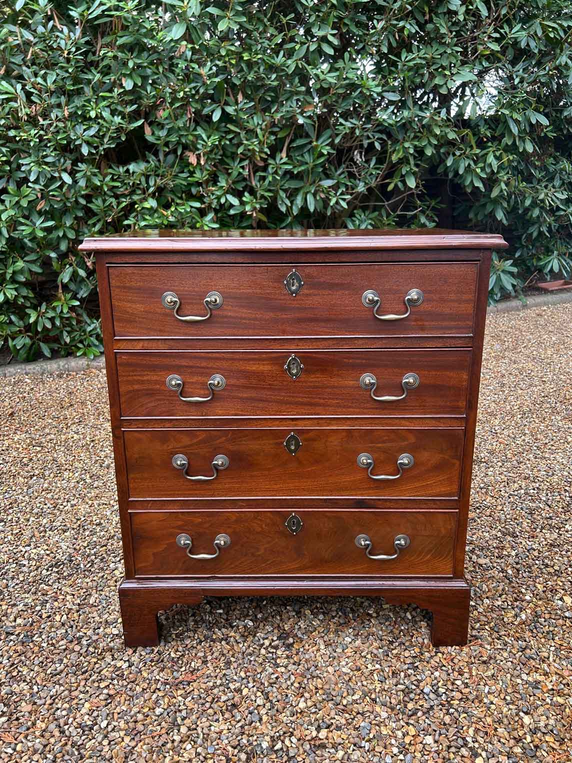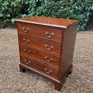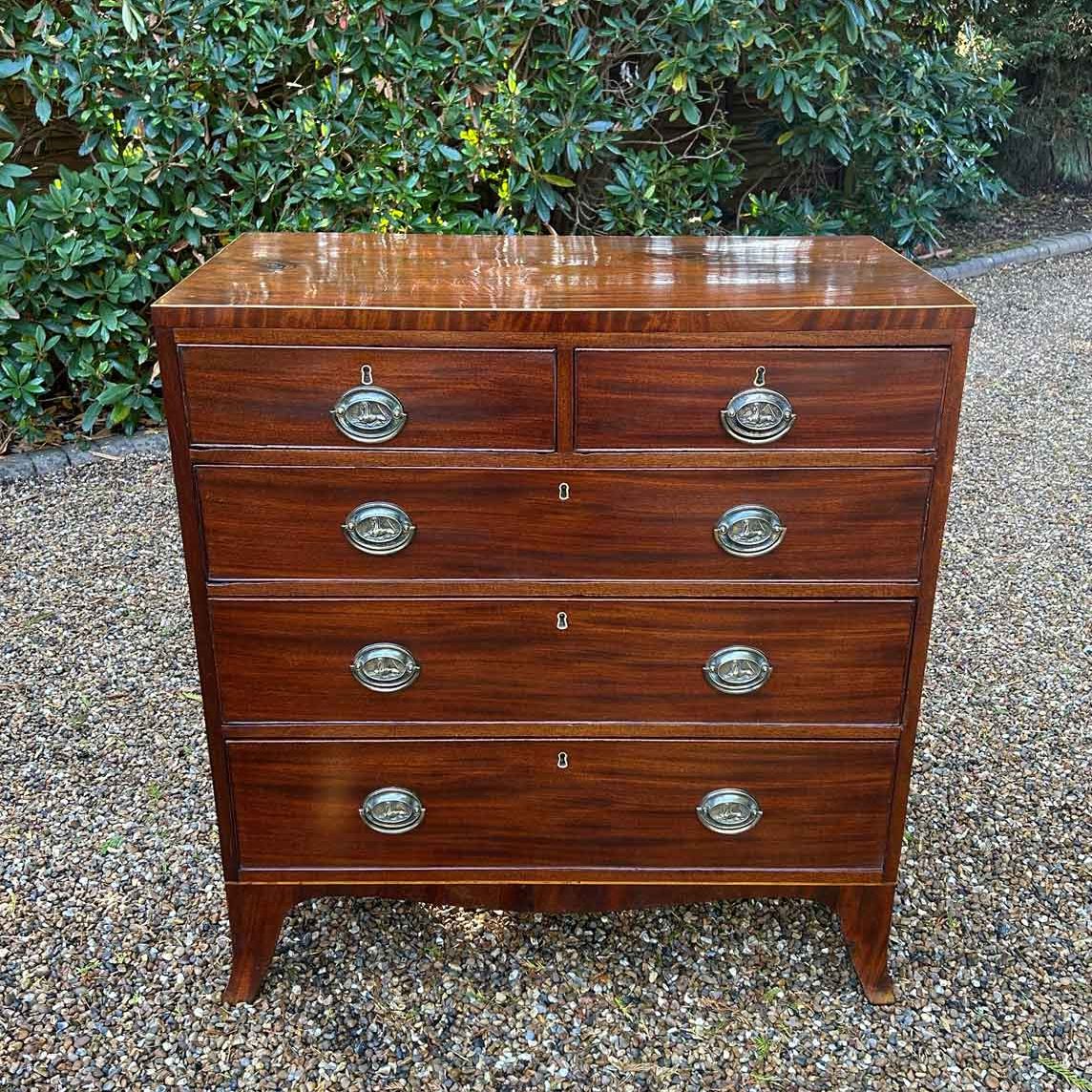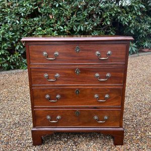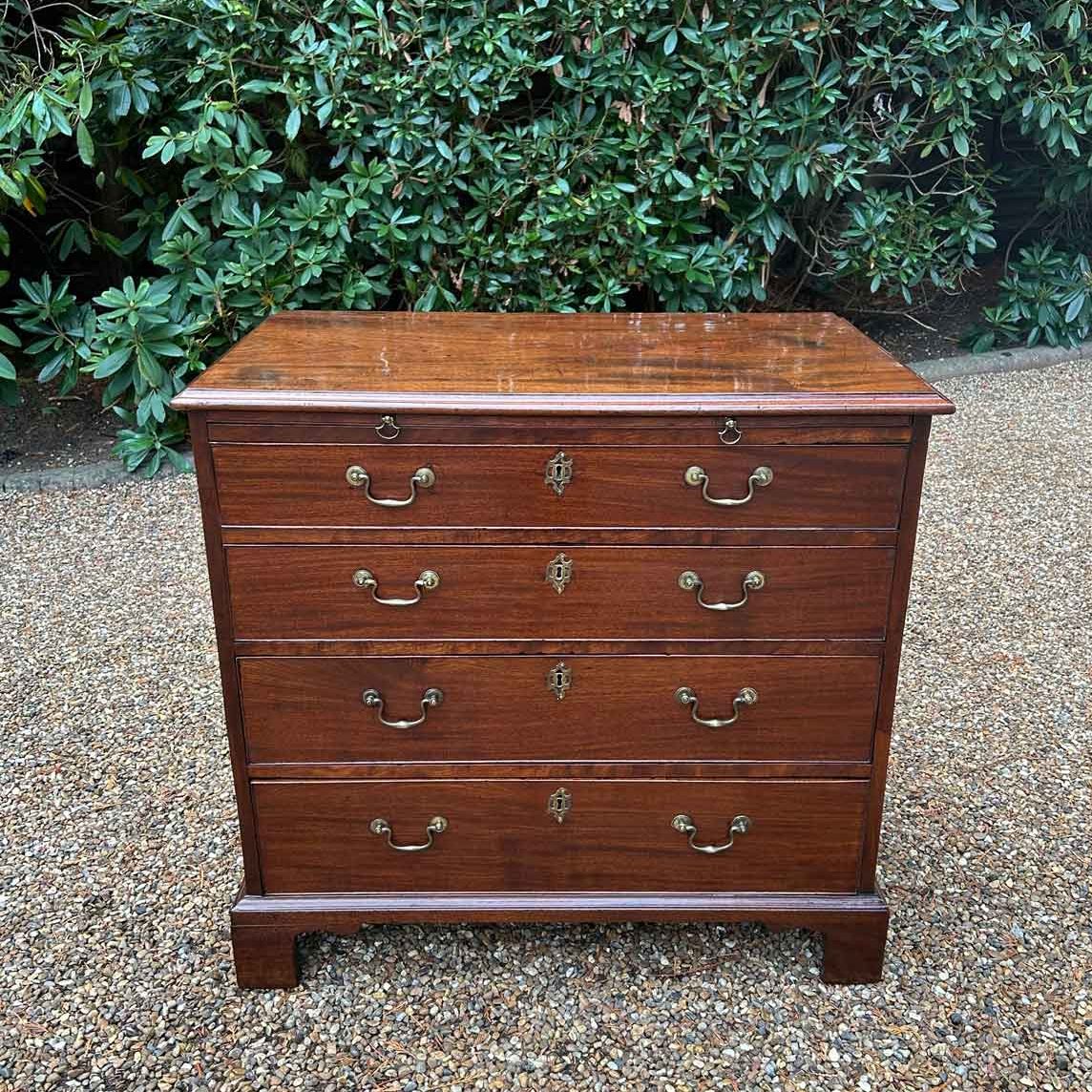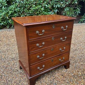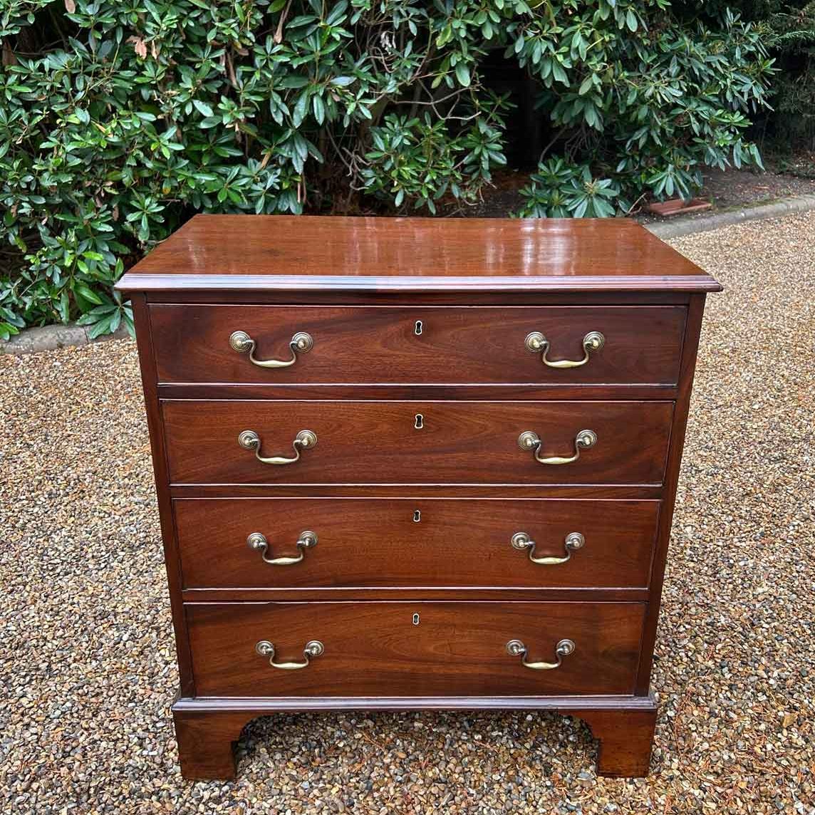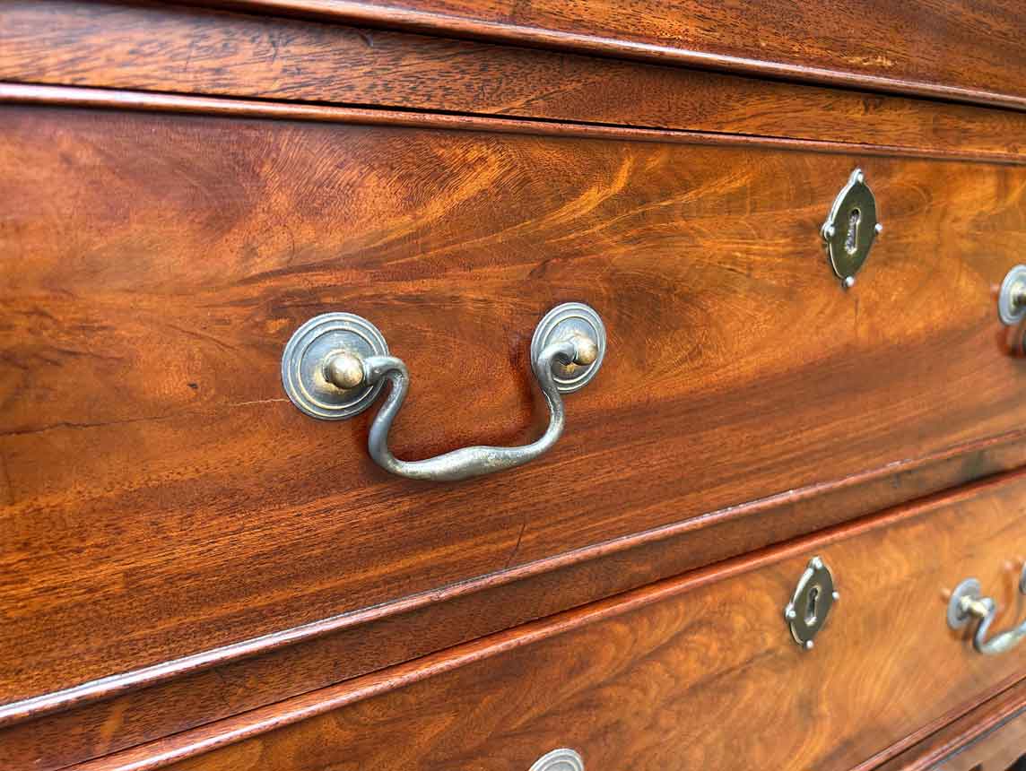 19th Century George III Mahogany Chest Of Drawers with four long graduated drawers, original brass swan neck handles, on bracket feet.