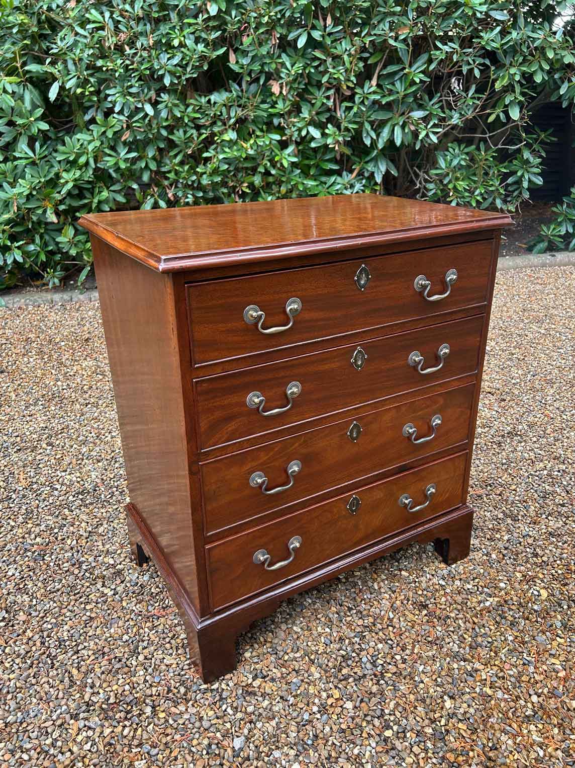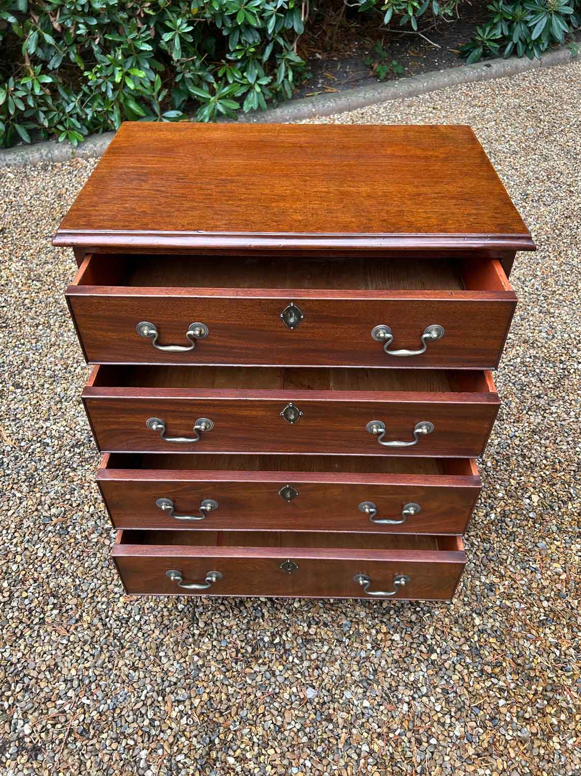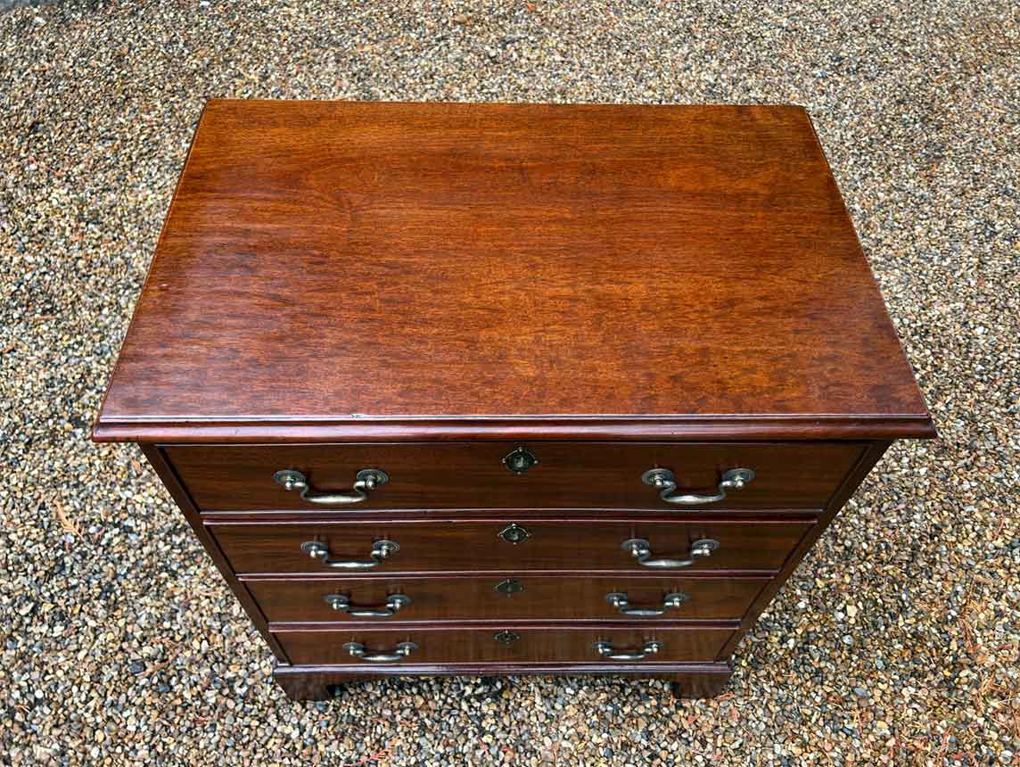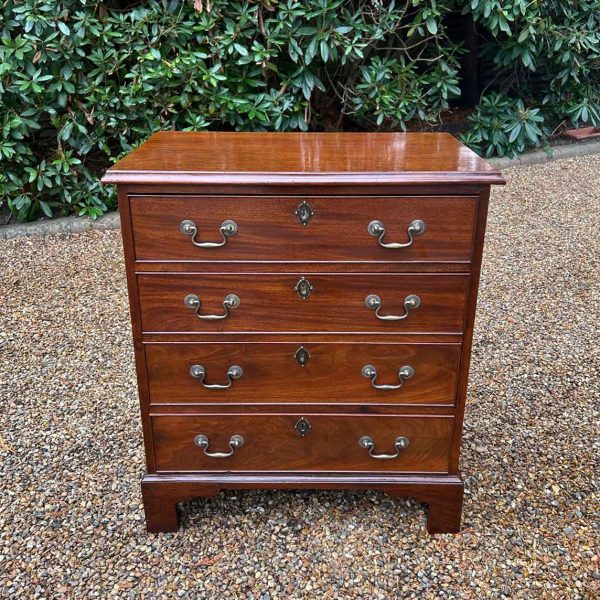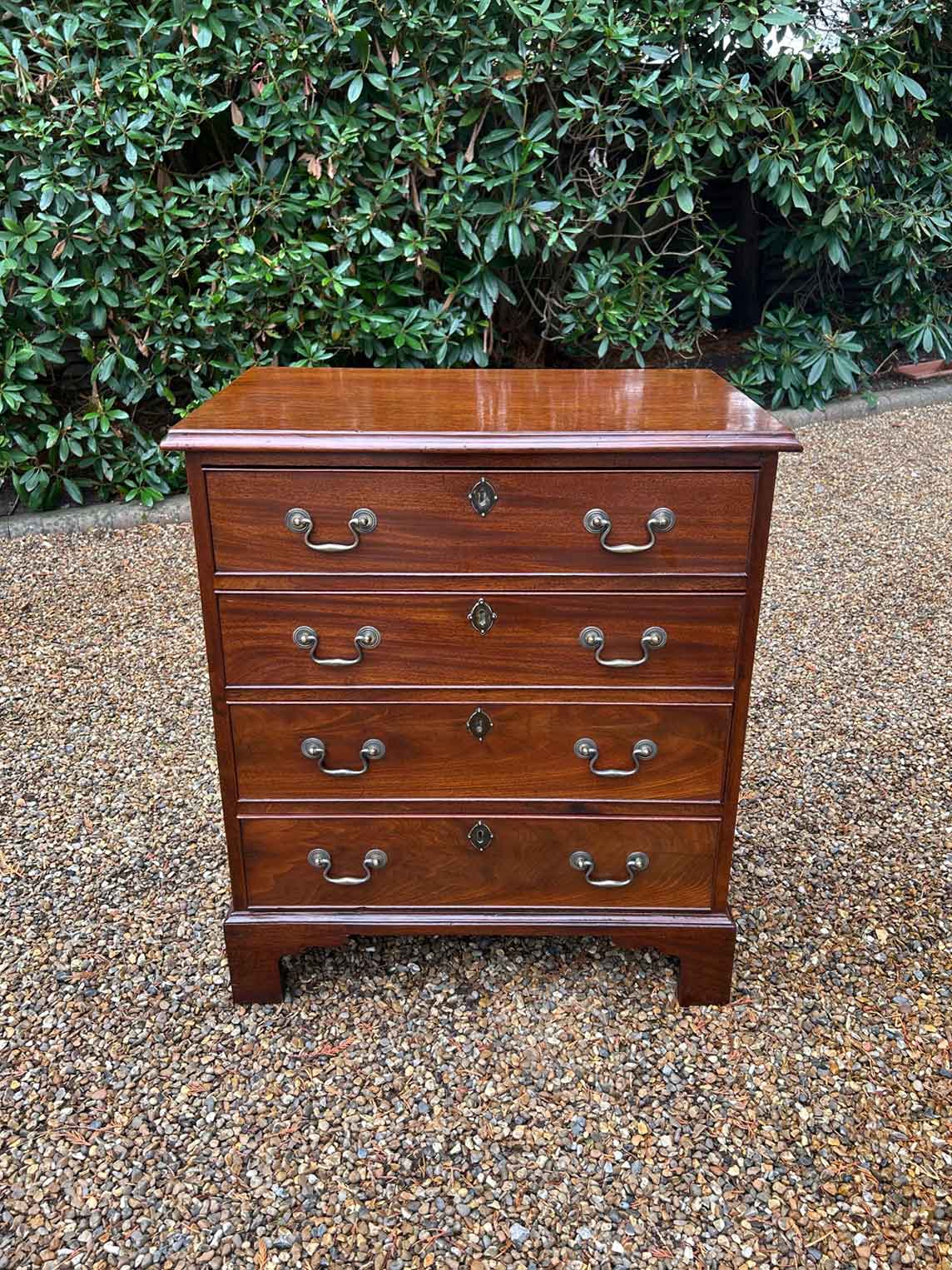 19th Century George III Mahogany Chest Of Drawers with four long graduated drawers, original brass swan neck handles, on bracket feet.