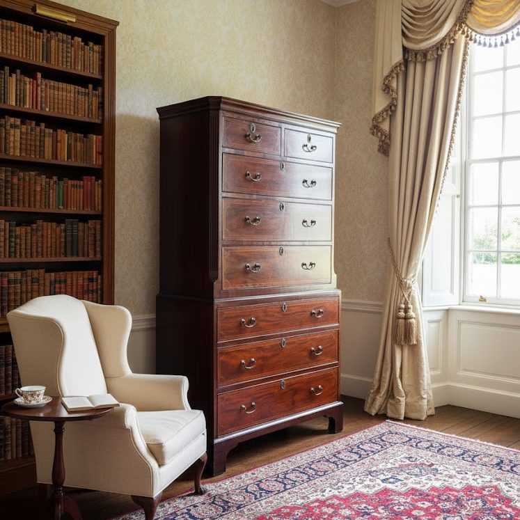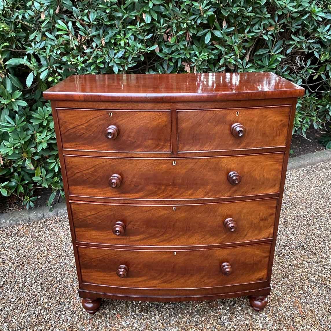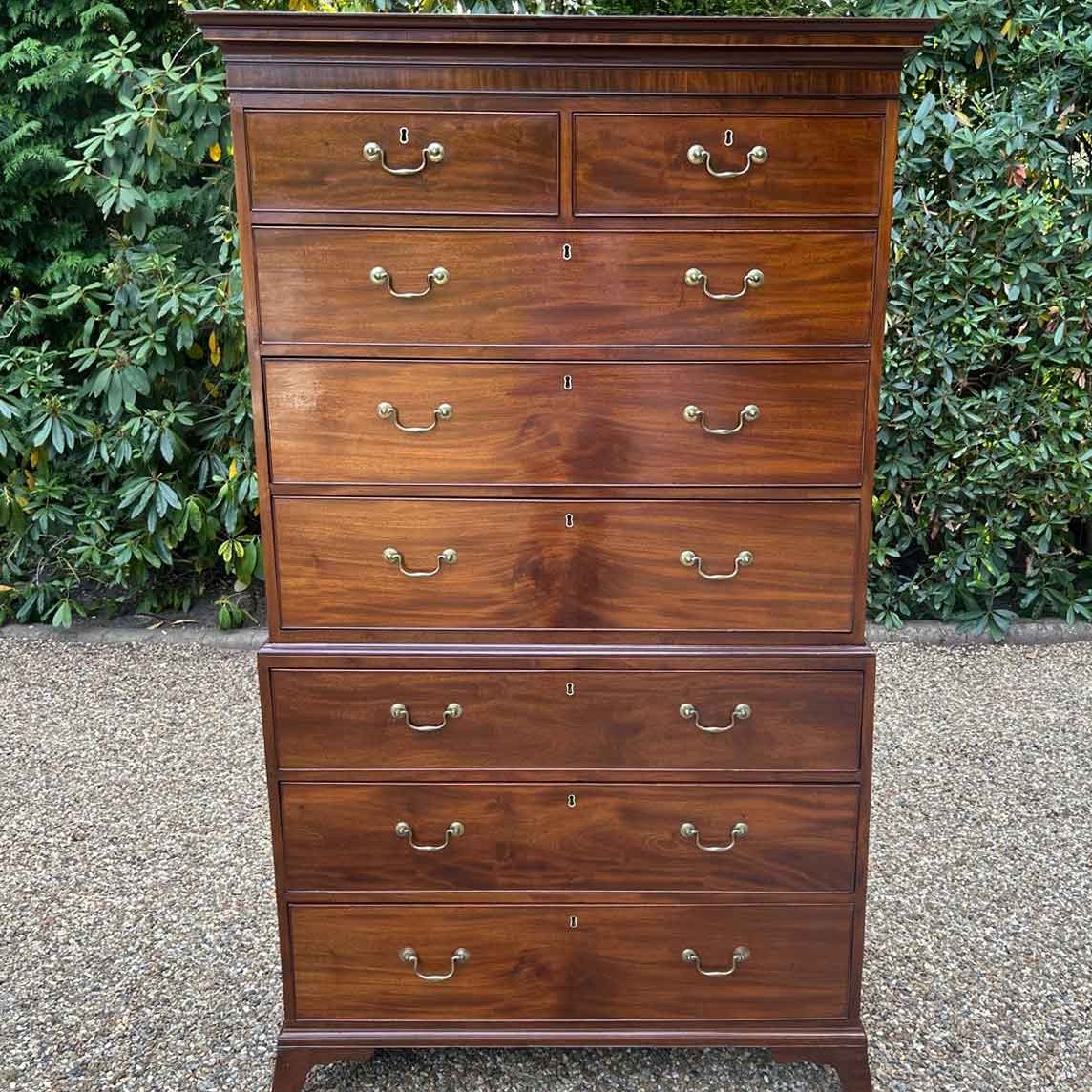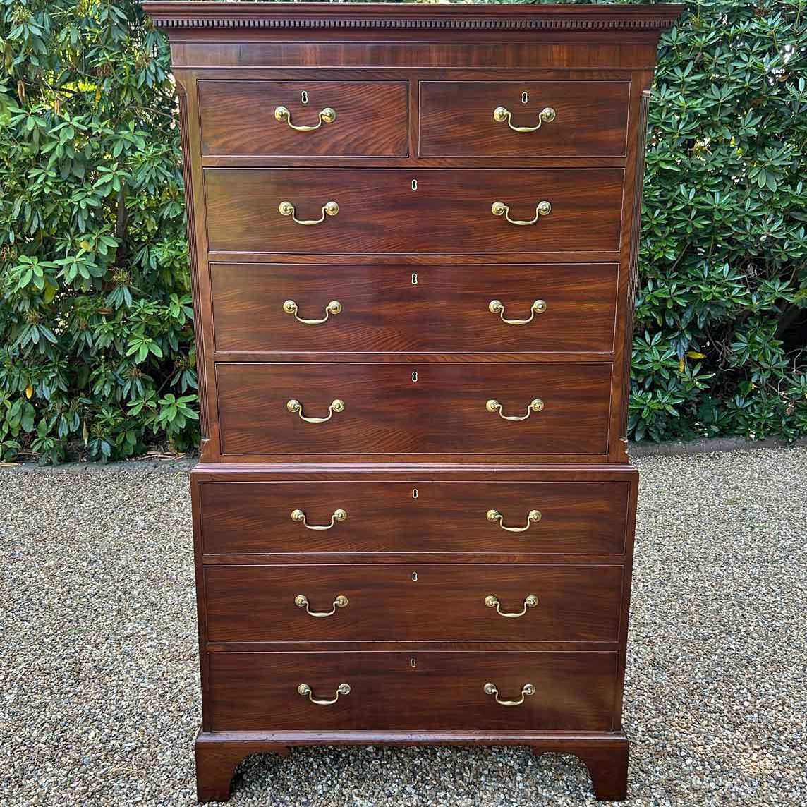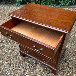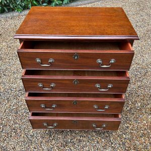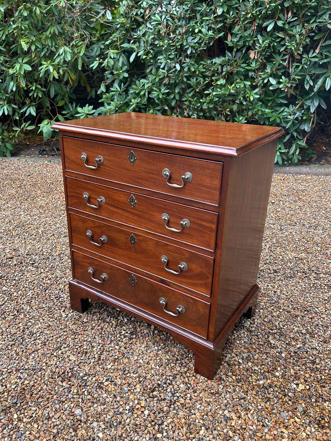 19th Century George III Mahogany Chest Of Drawers with four long graduated drawers, original brass swan neck handles, on bracket feet.