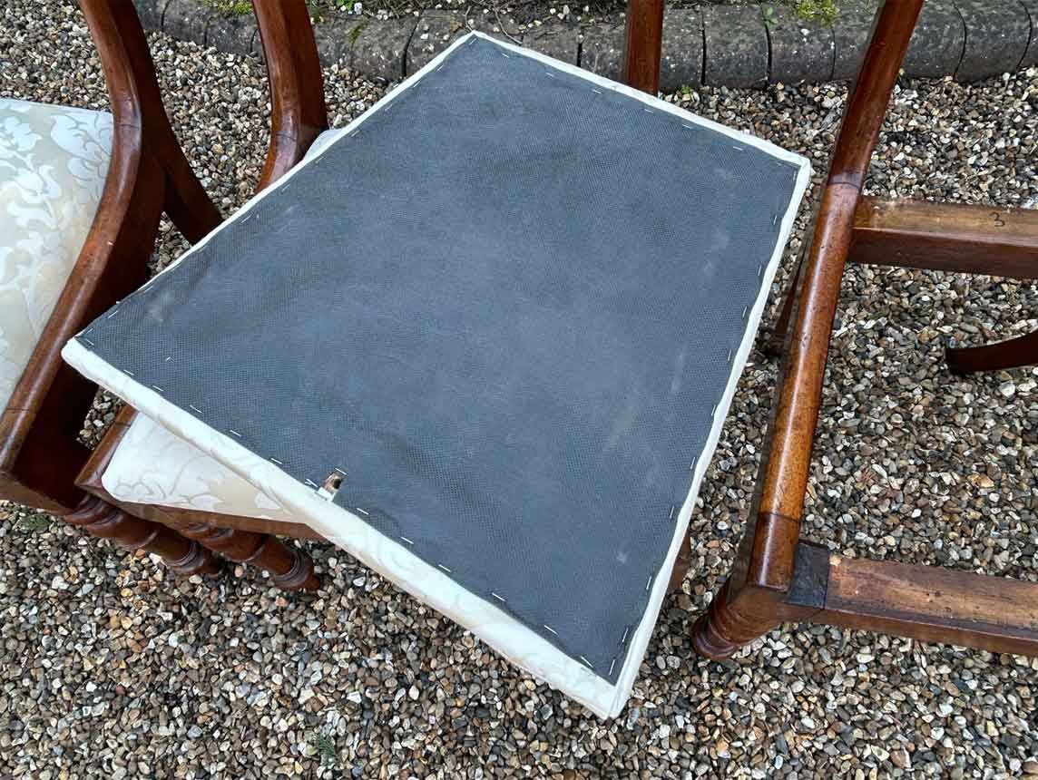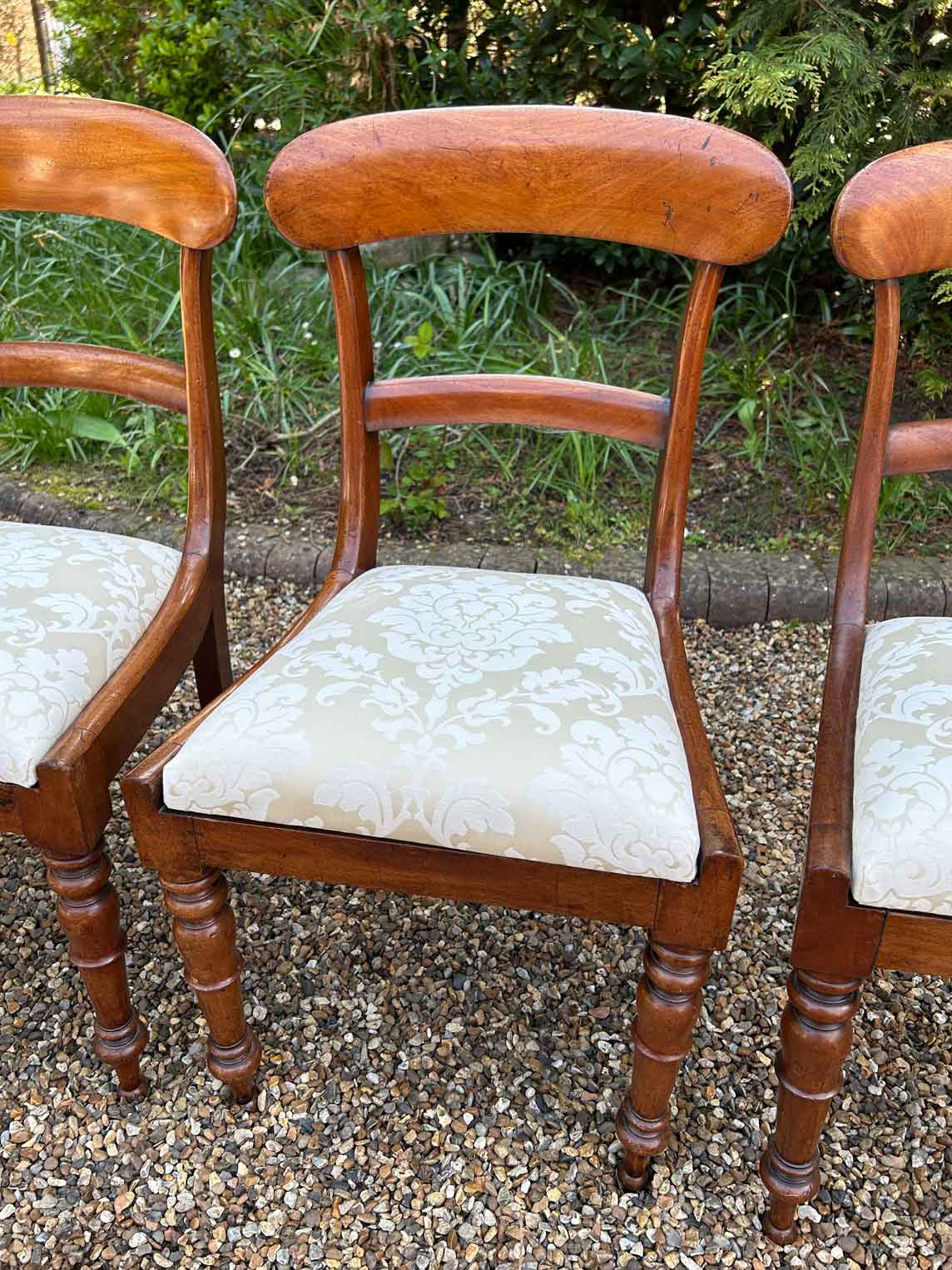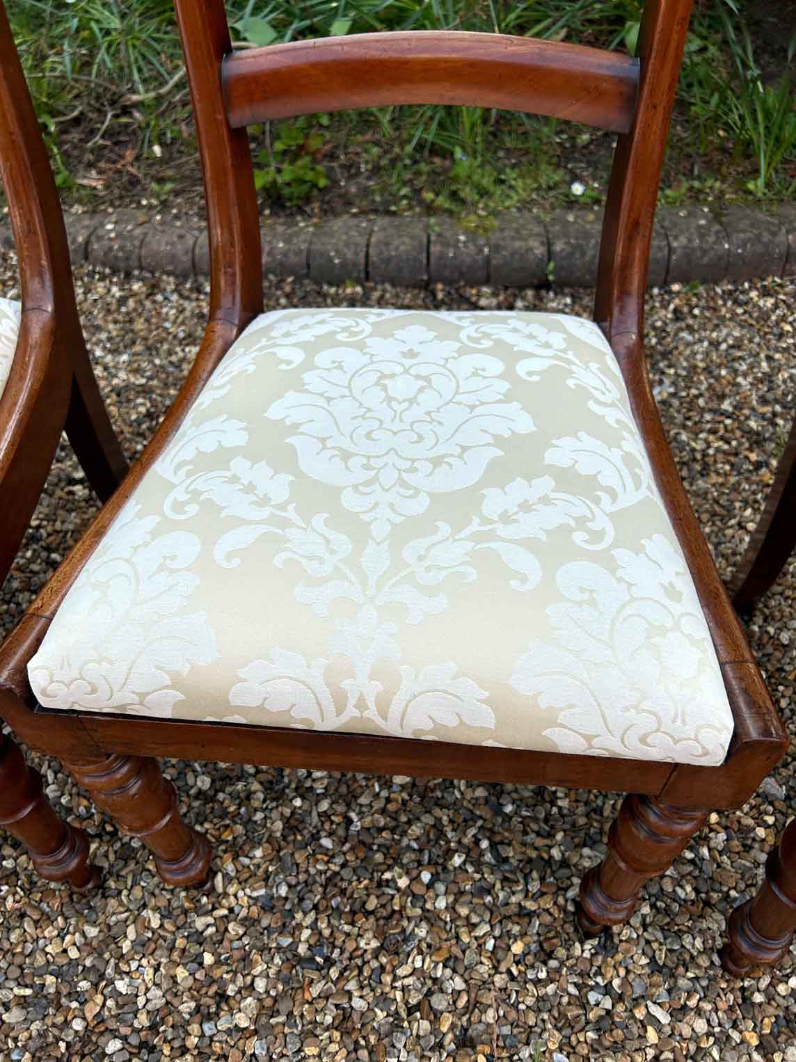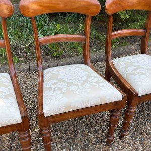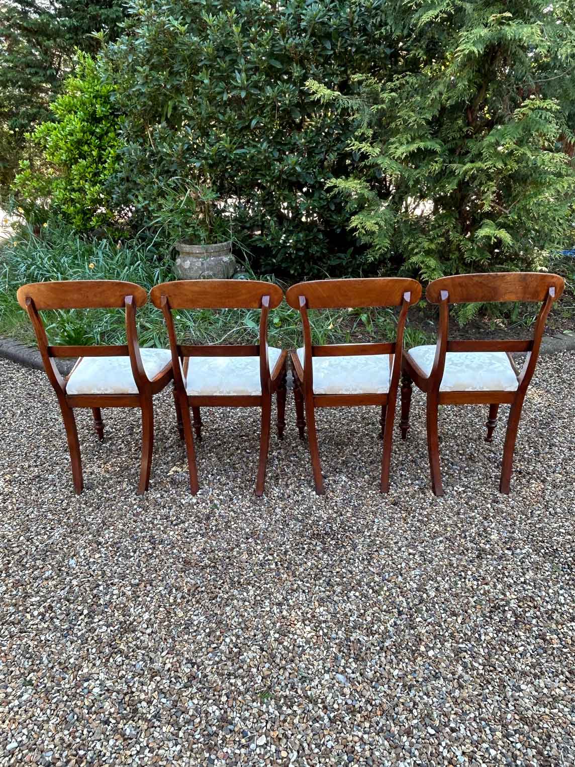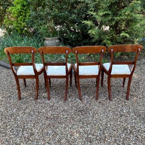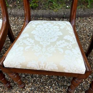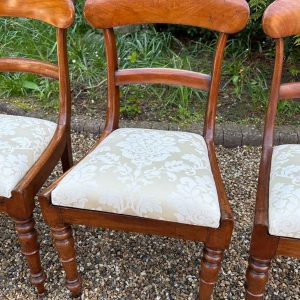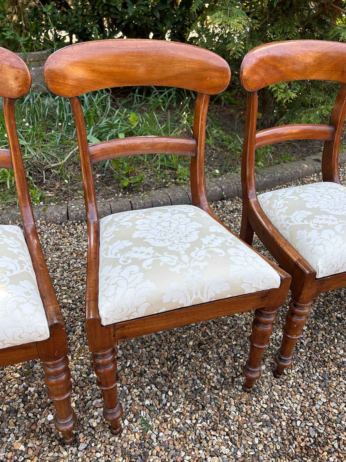 A good quality Set of Four, 19th Century Mahogany Bar Back Dining Chairs with newly upholstered drop in seats and turned shaped legs.